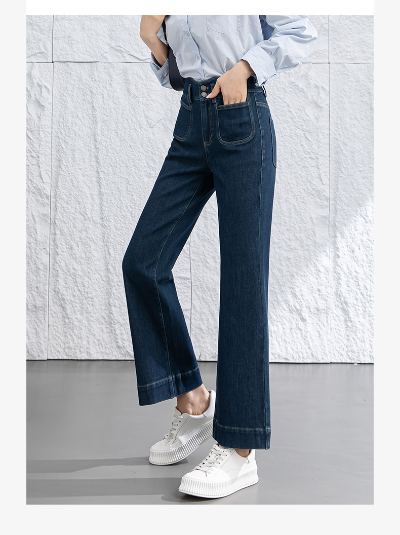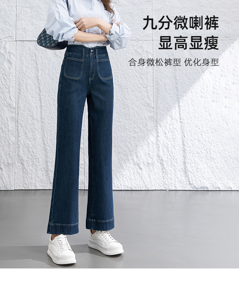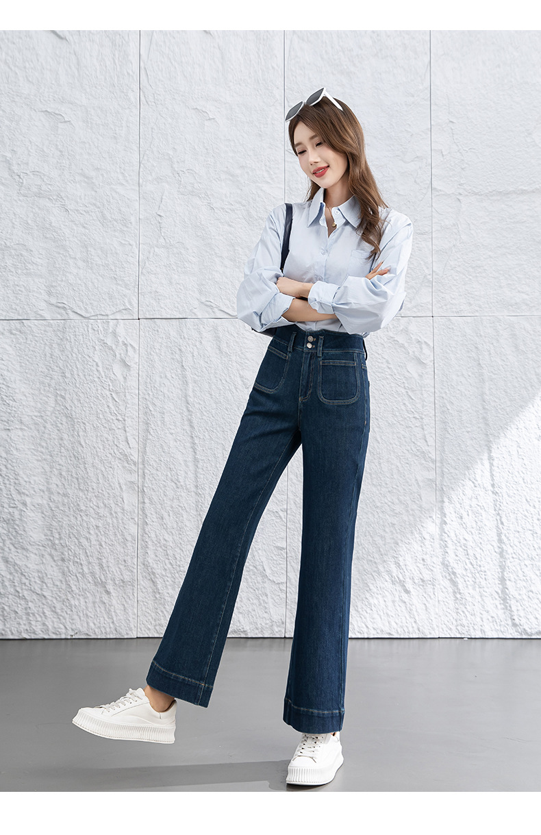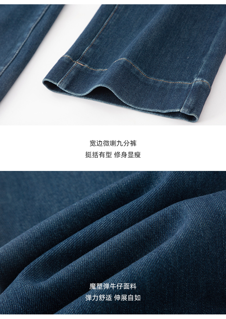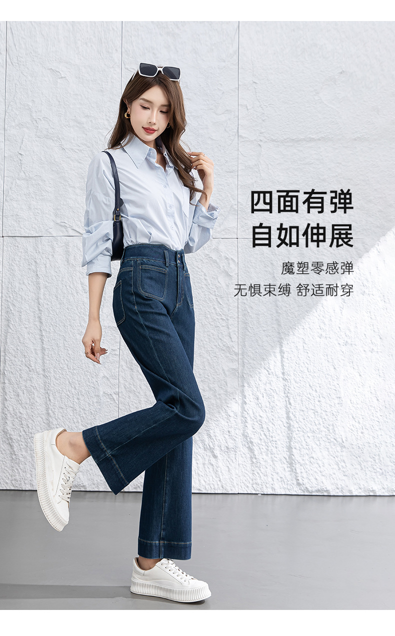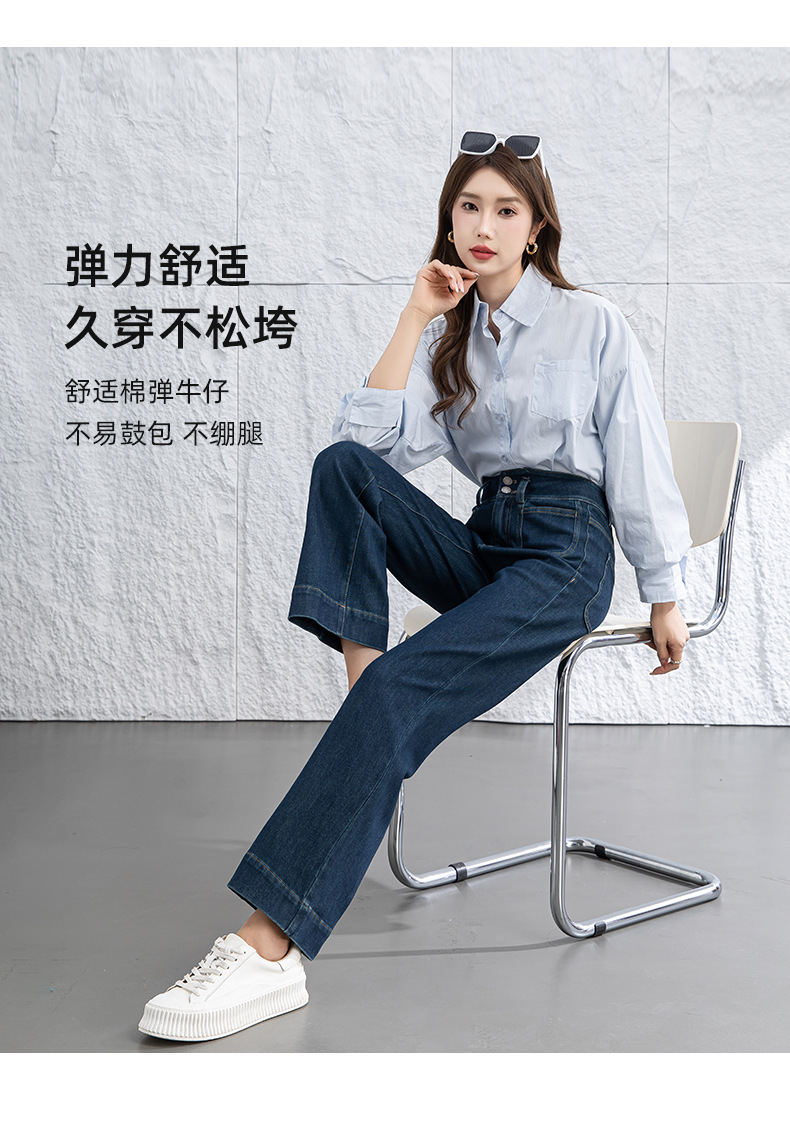 微喇叭牛仔裤子女春季新款高腰蓝色四面弹小个子直筒裤