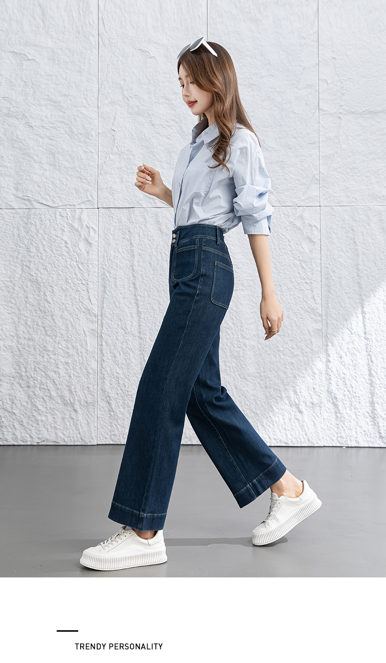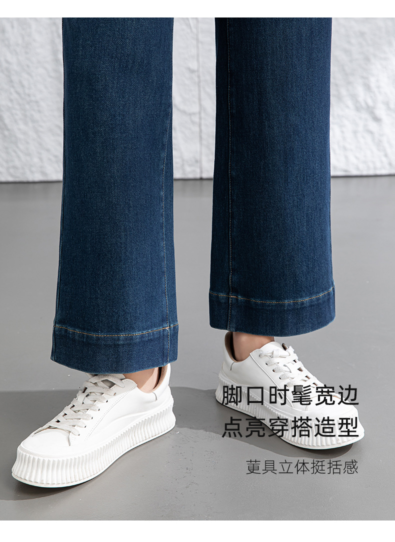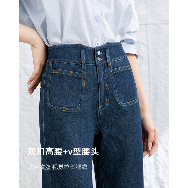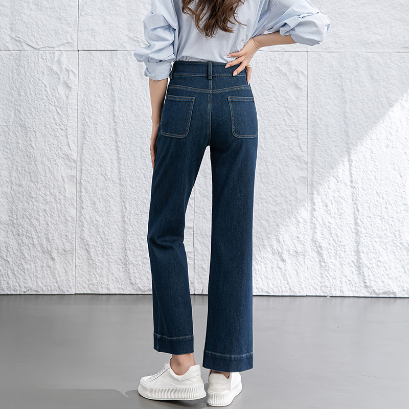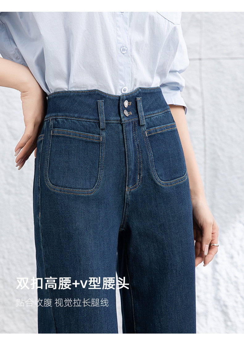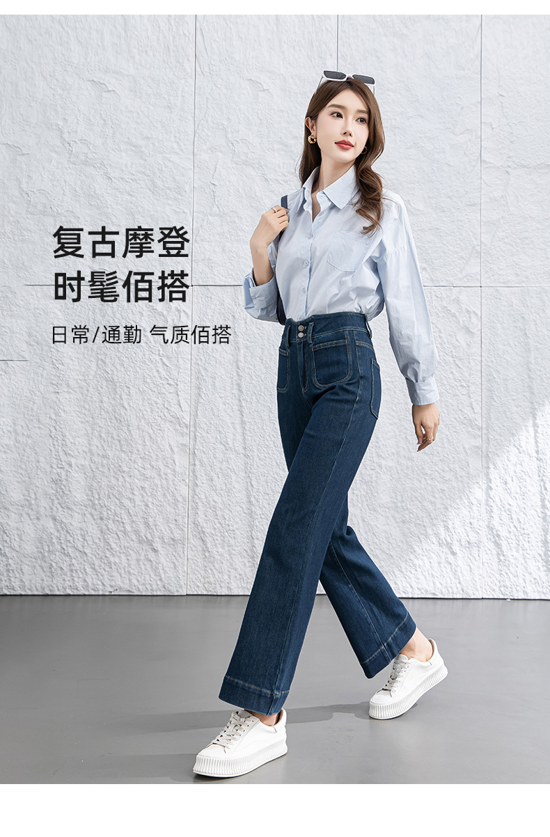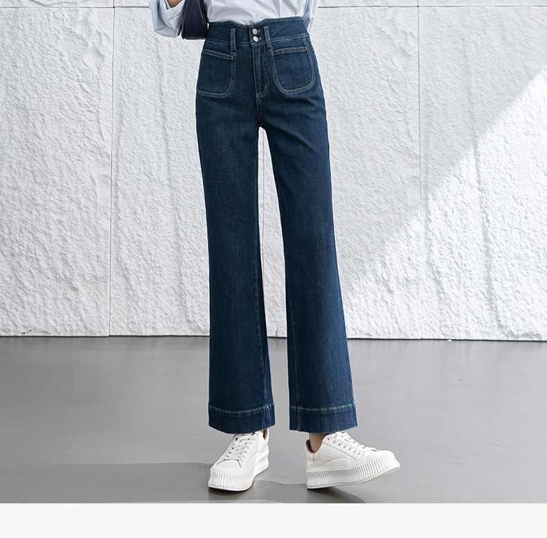 微喇叭牛仔裤子女春季新款高腰蓝色四面弹小个子直筒裤