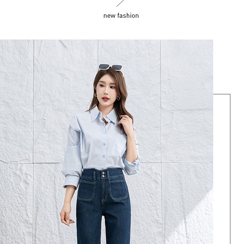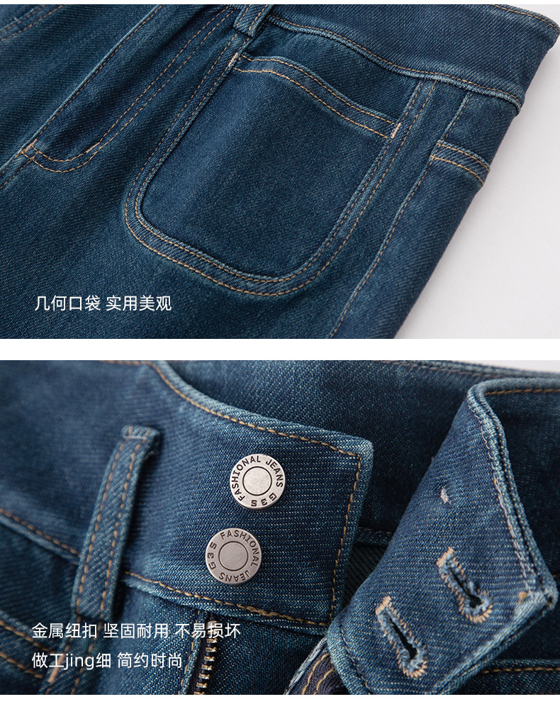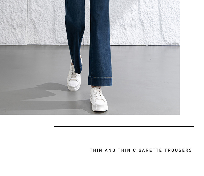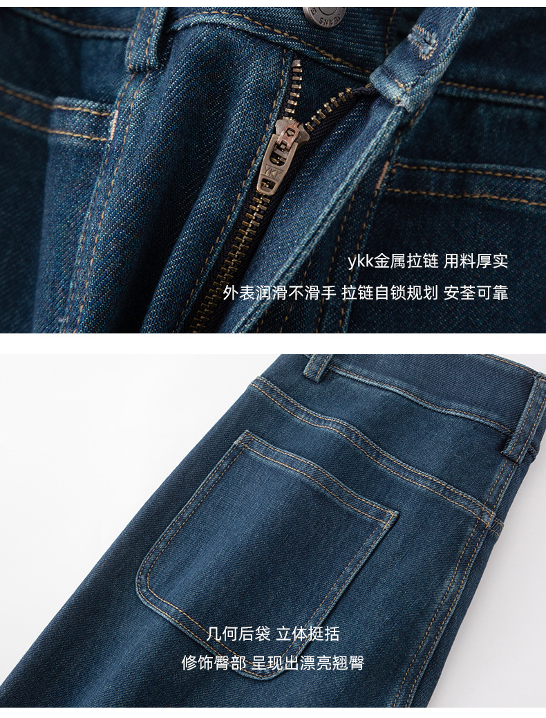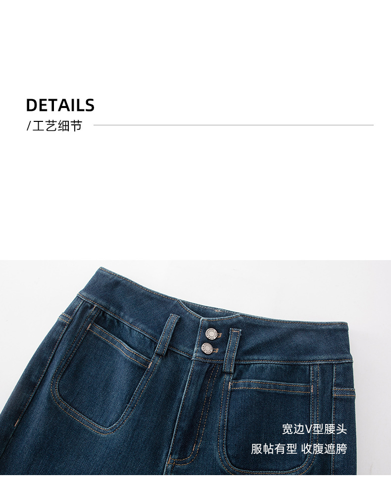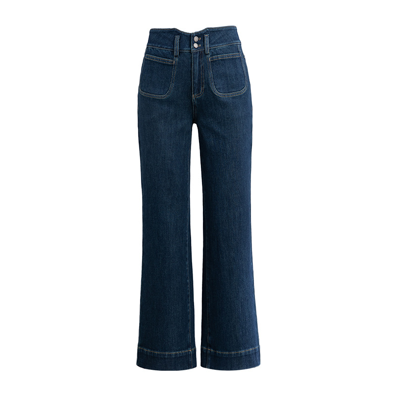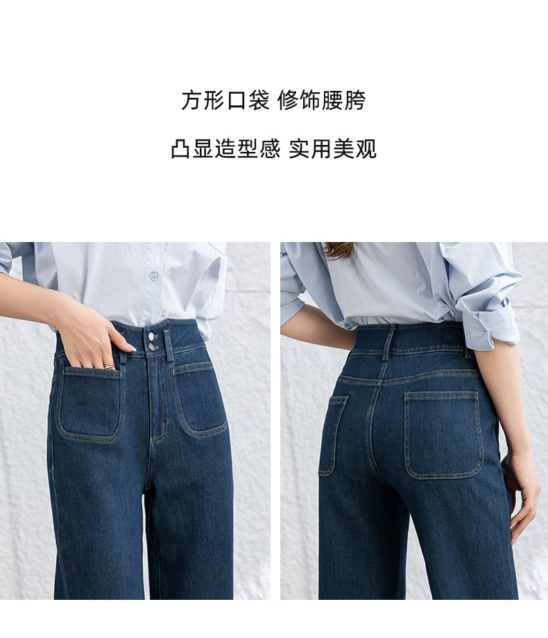 微喇叭牛仔裤子女春季新款高腰蓝色四面弹小个子直筒裤