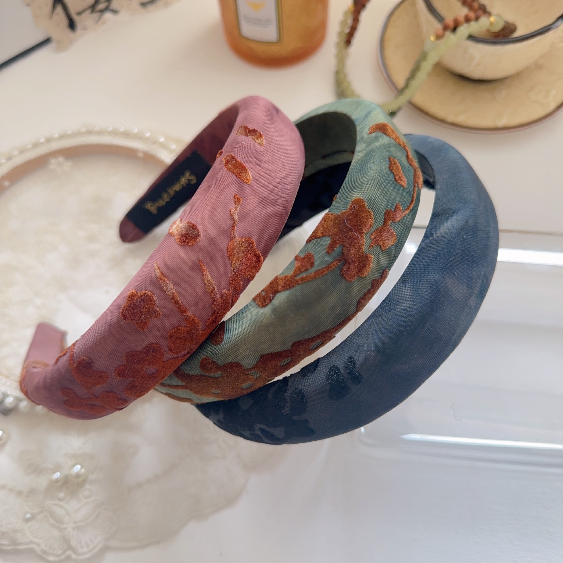 复古优雅气质款头箍海绵发箍新款缎面国风印花压发洗脸发卡