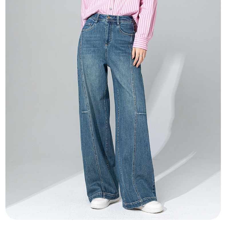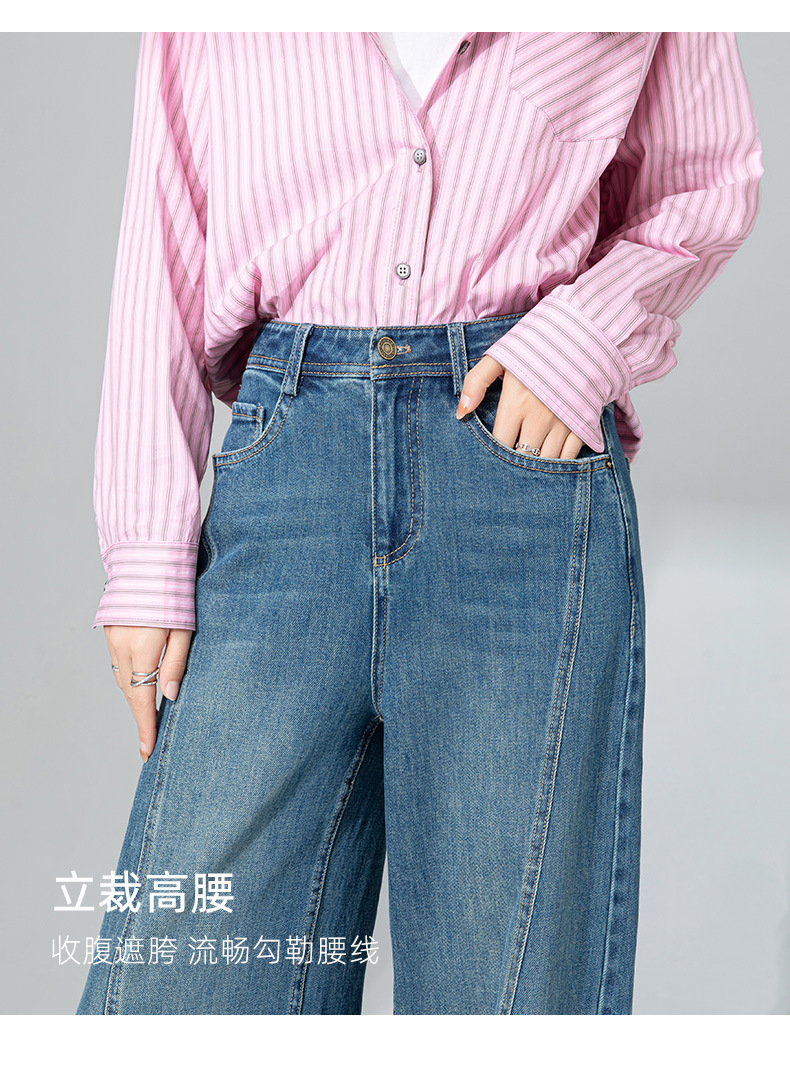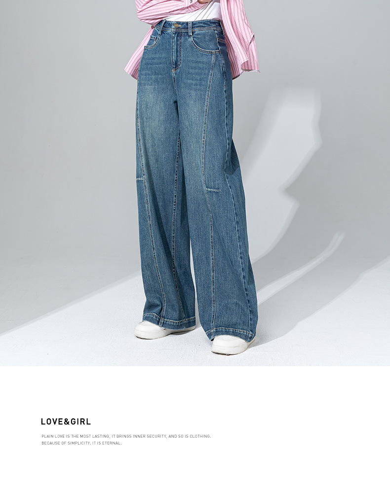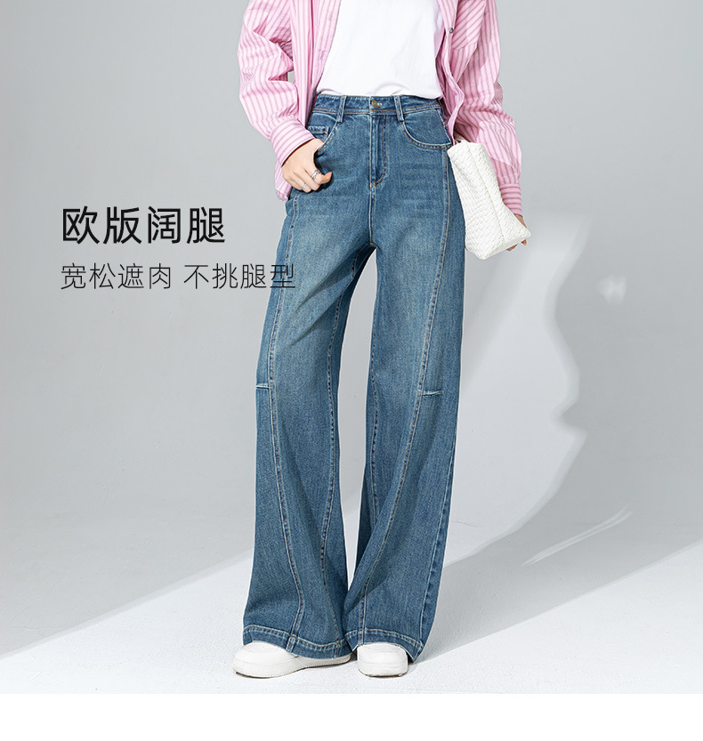 2025秋季新款解构分割牛仔裤高腰设计感显瘦阔腿裤休闲长裤