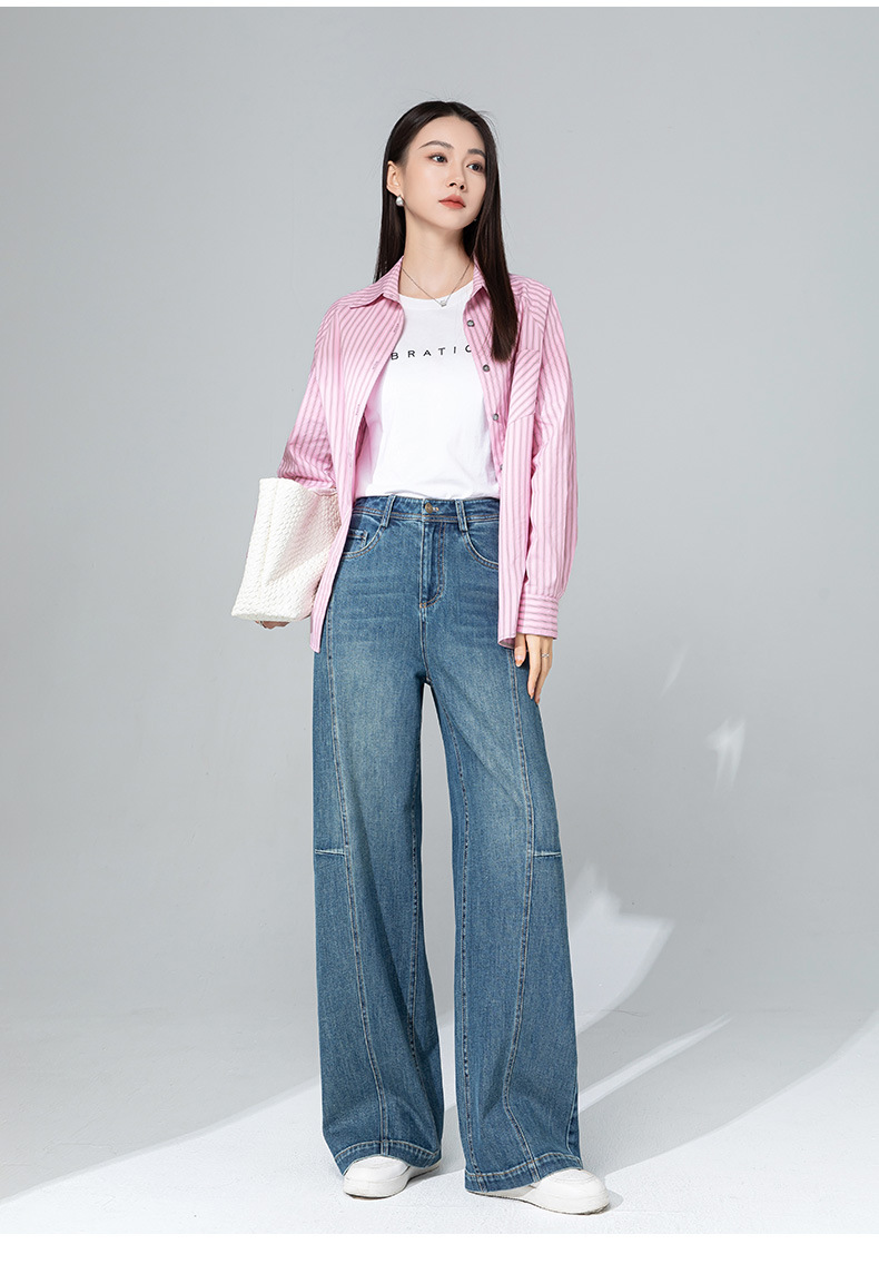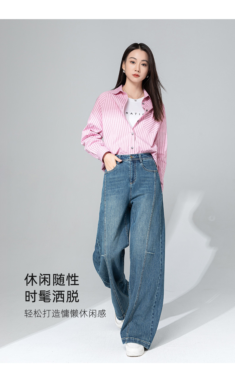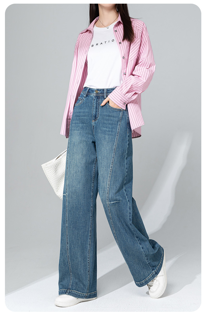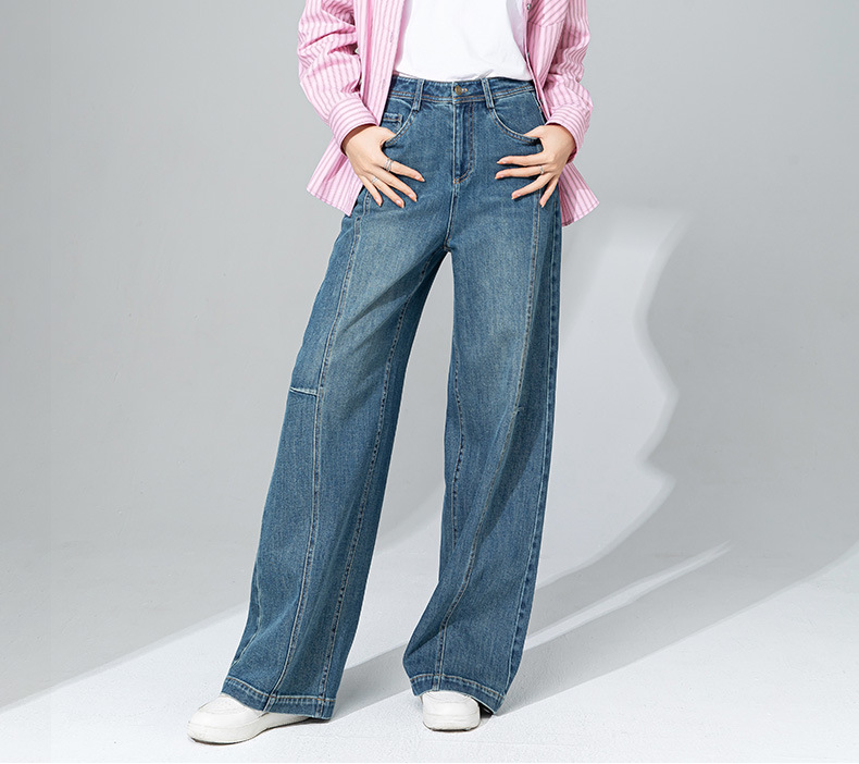 2025秋季新款解构分割牛仔裤高腰设计感显瘦阔腿裤休闲长裤