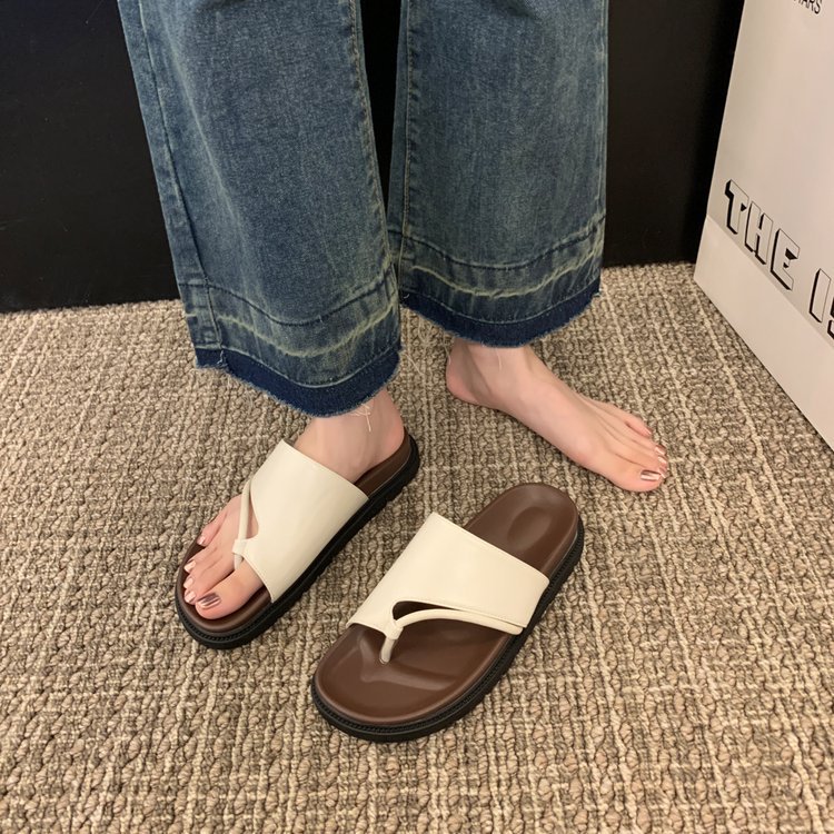 夏季新款休闲平底拖鞋女外穿夹趾一字拖露趾时尚低跟凉拖