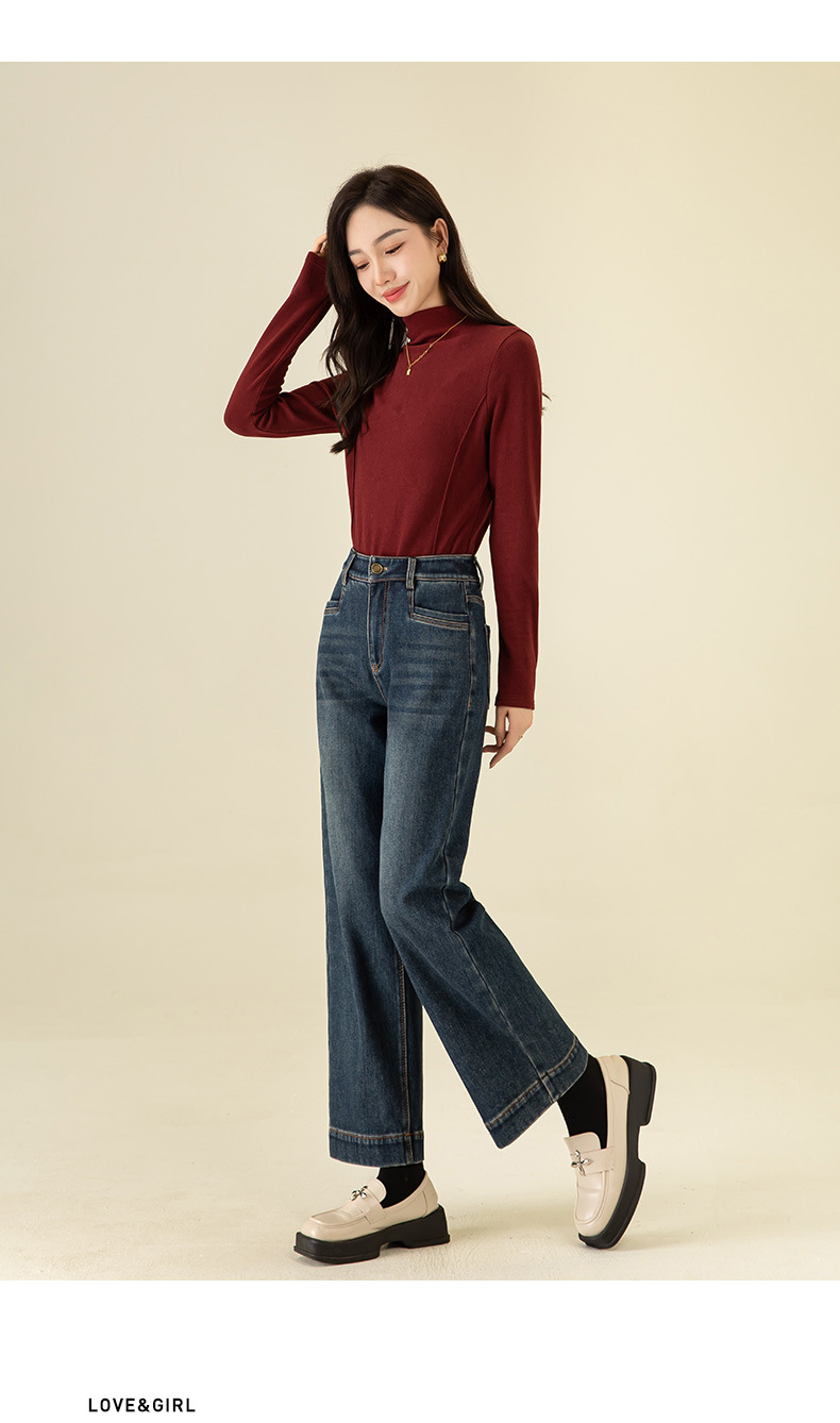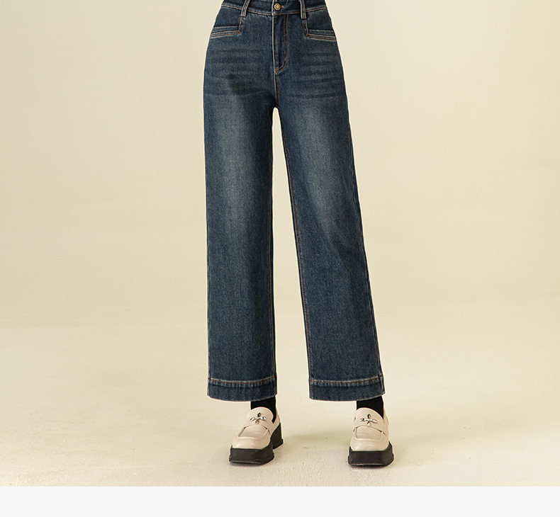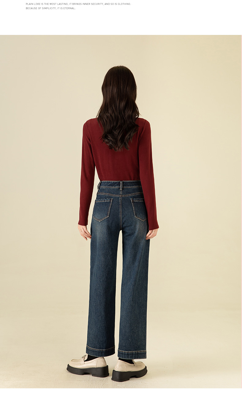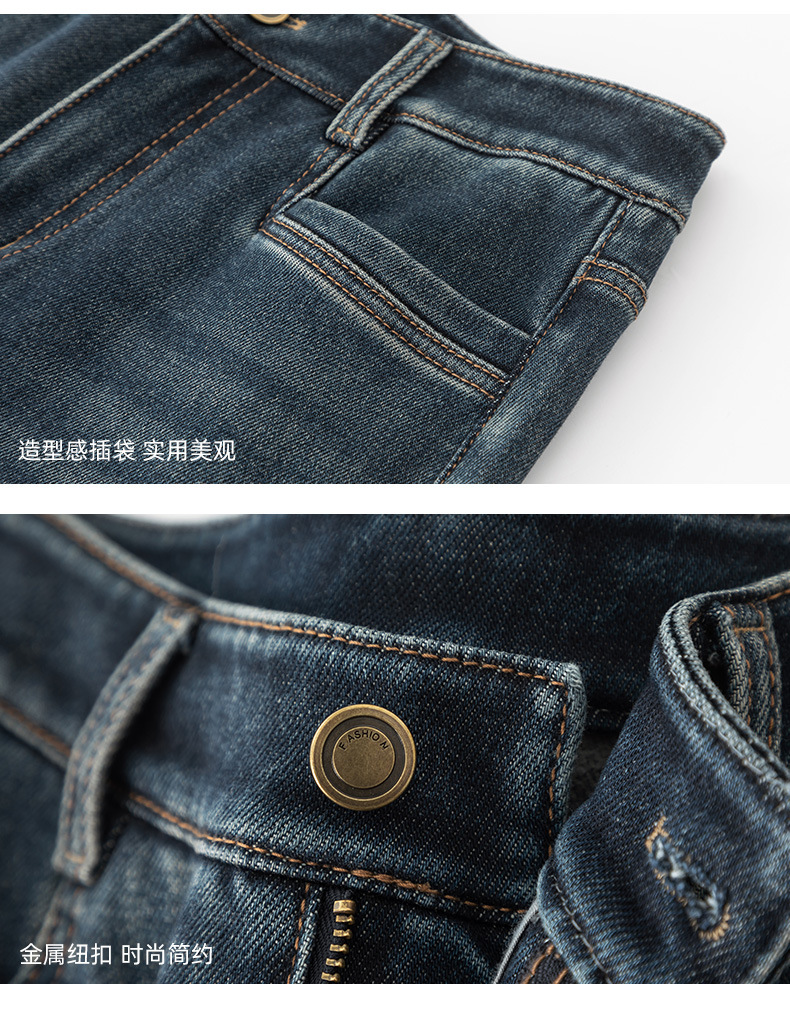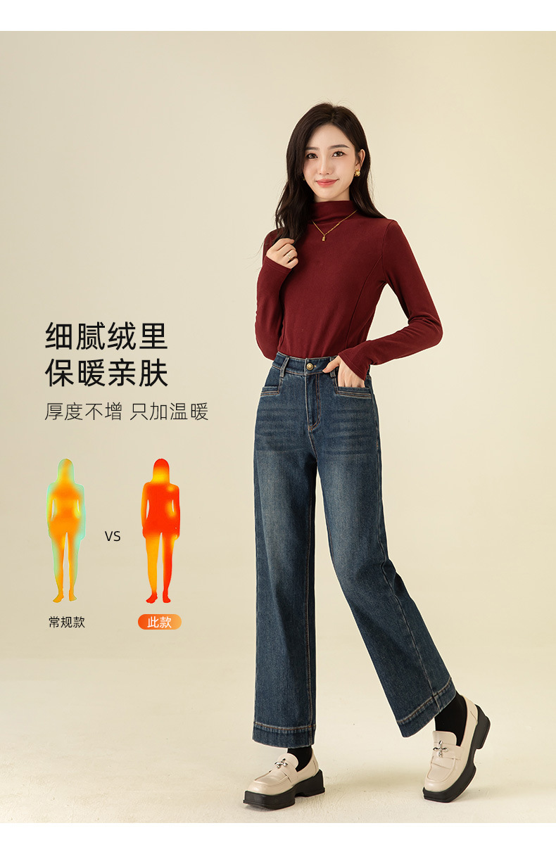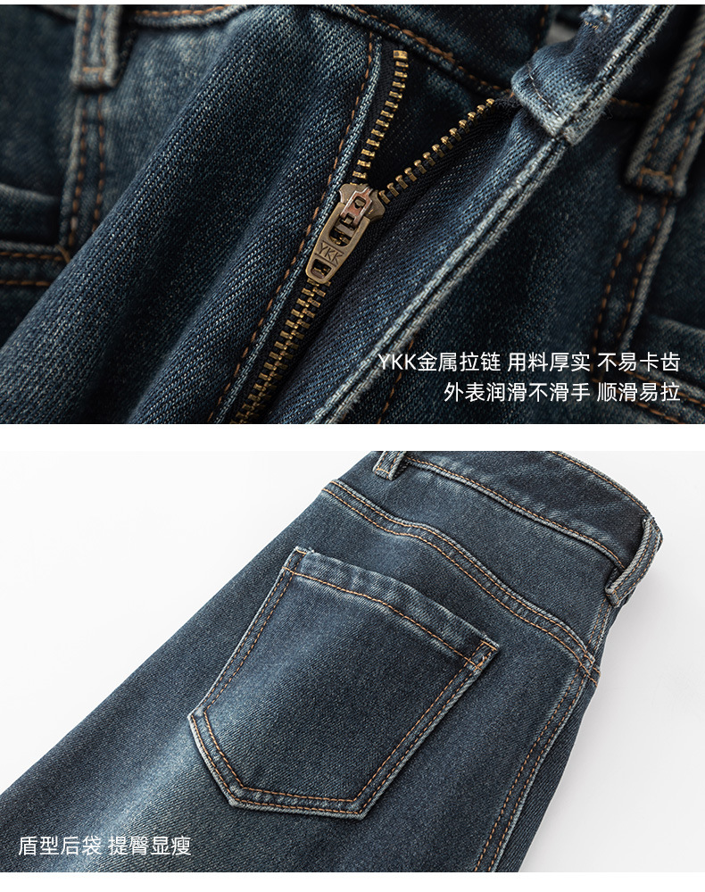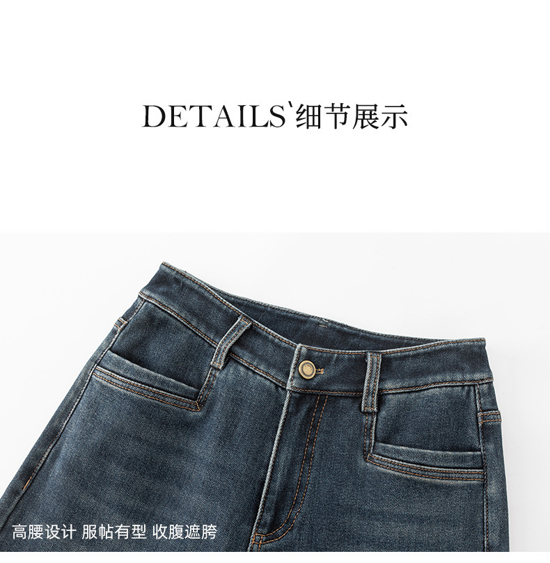 加绒复古九分牛仔裤女冬季新款高腰弹力显瘦窄版宽松阔腿裤