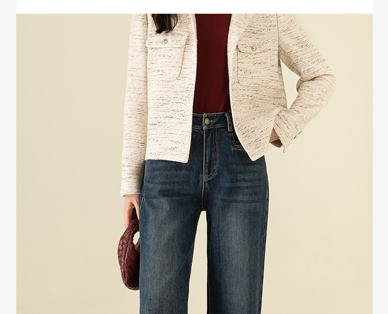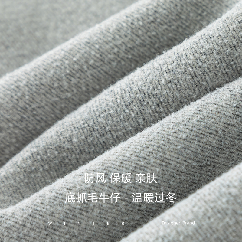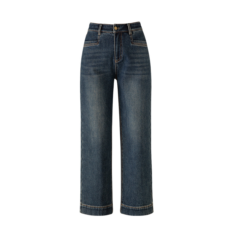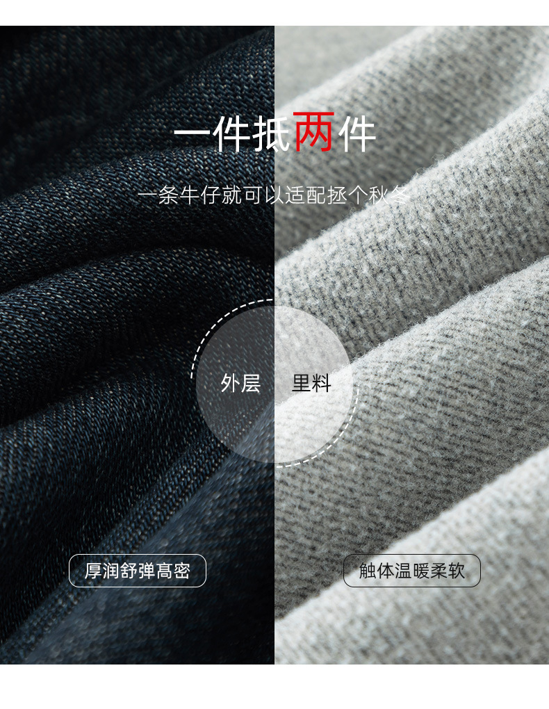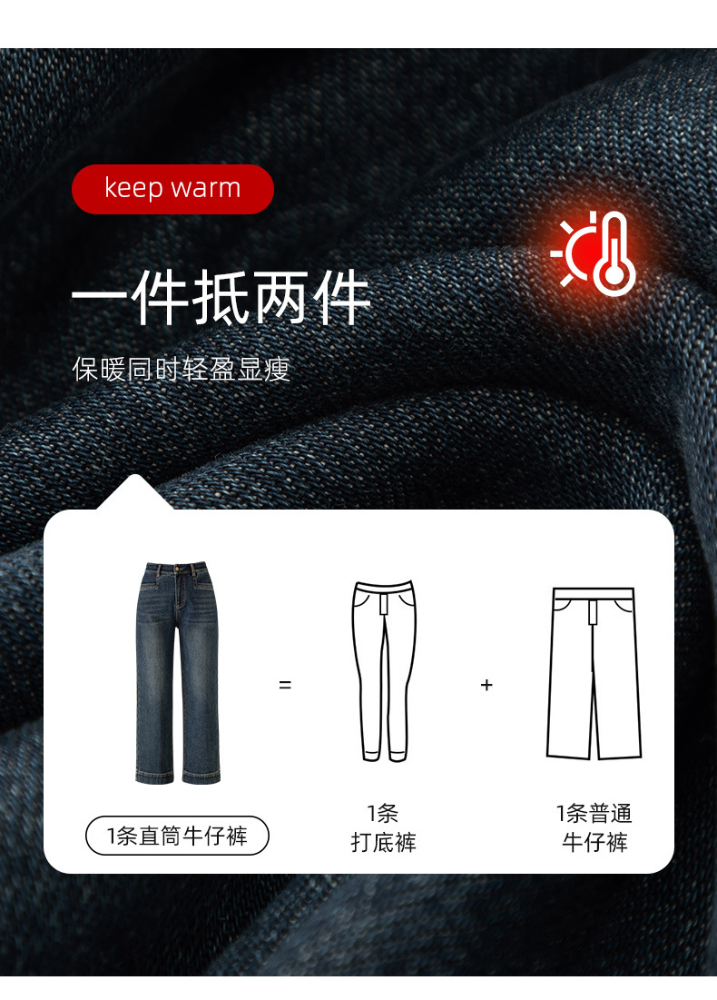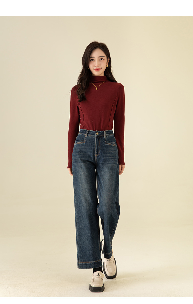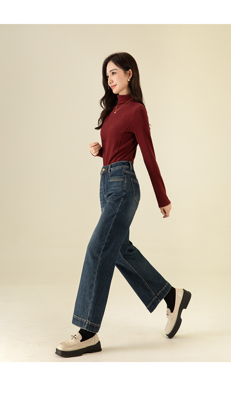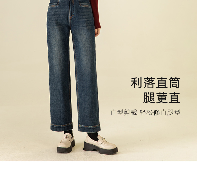 加绒复古九分牛仔裤女冬季新款高腰弹力显瘦窄版宽松阔腿裤