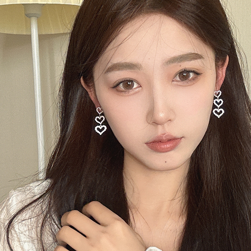 心动旋律超闪镂空爱心长款耳环小众设计感气质镶钻耳饰桃心耳坠潮
