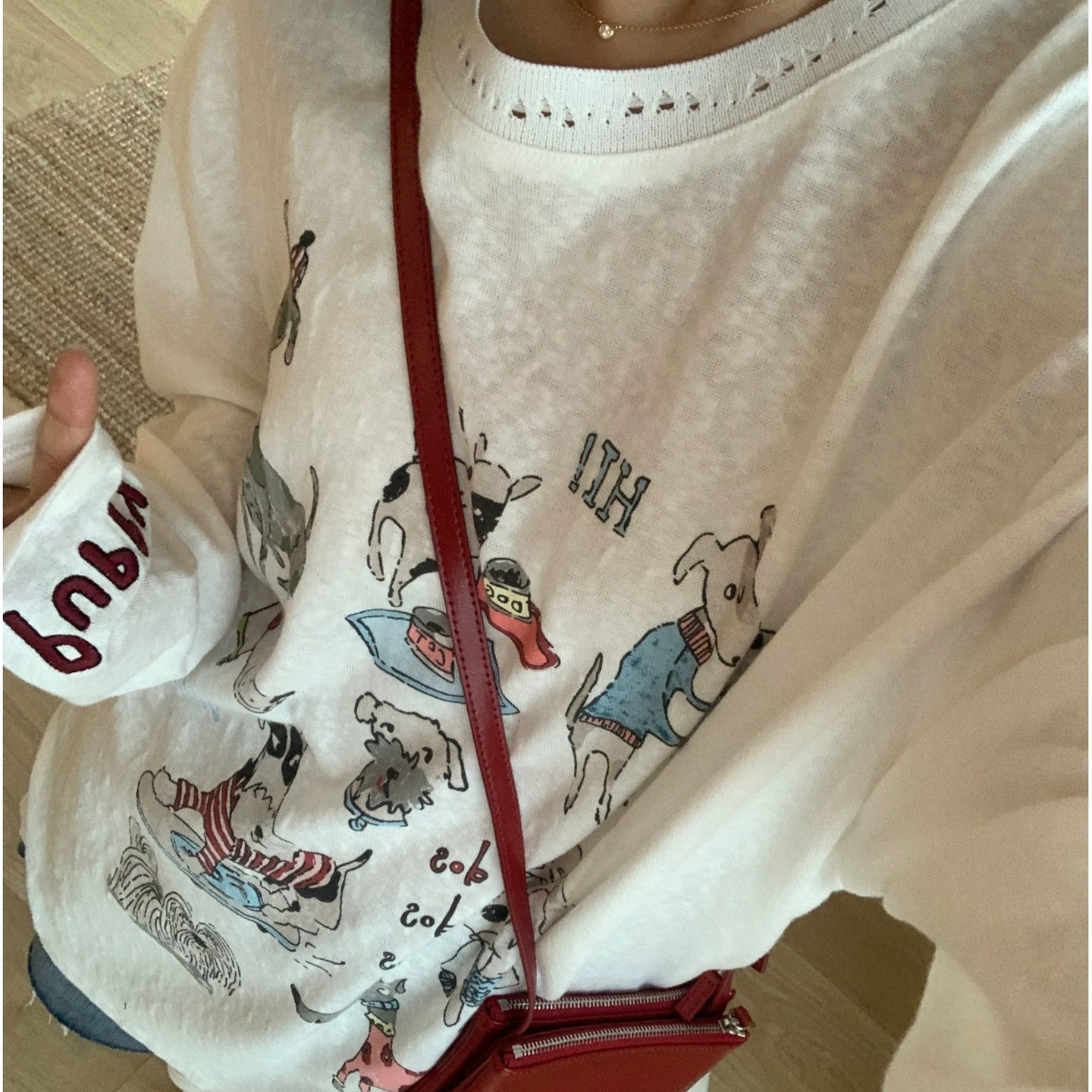 趣味卡通印花慵懒长袖T恤女25夏新款宽松显瘦防晒上衣