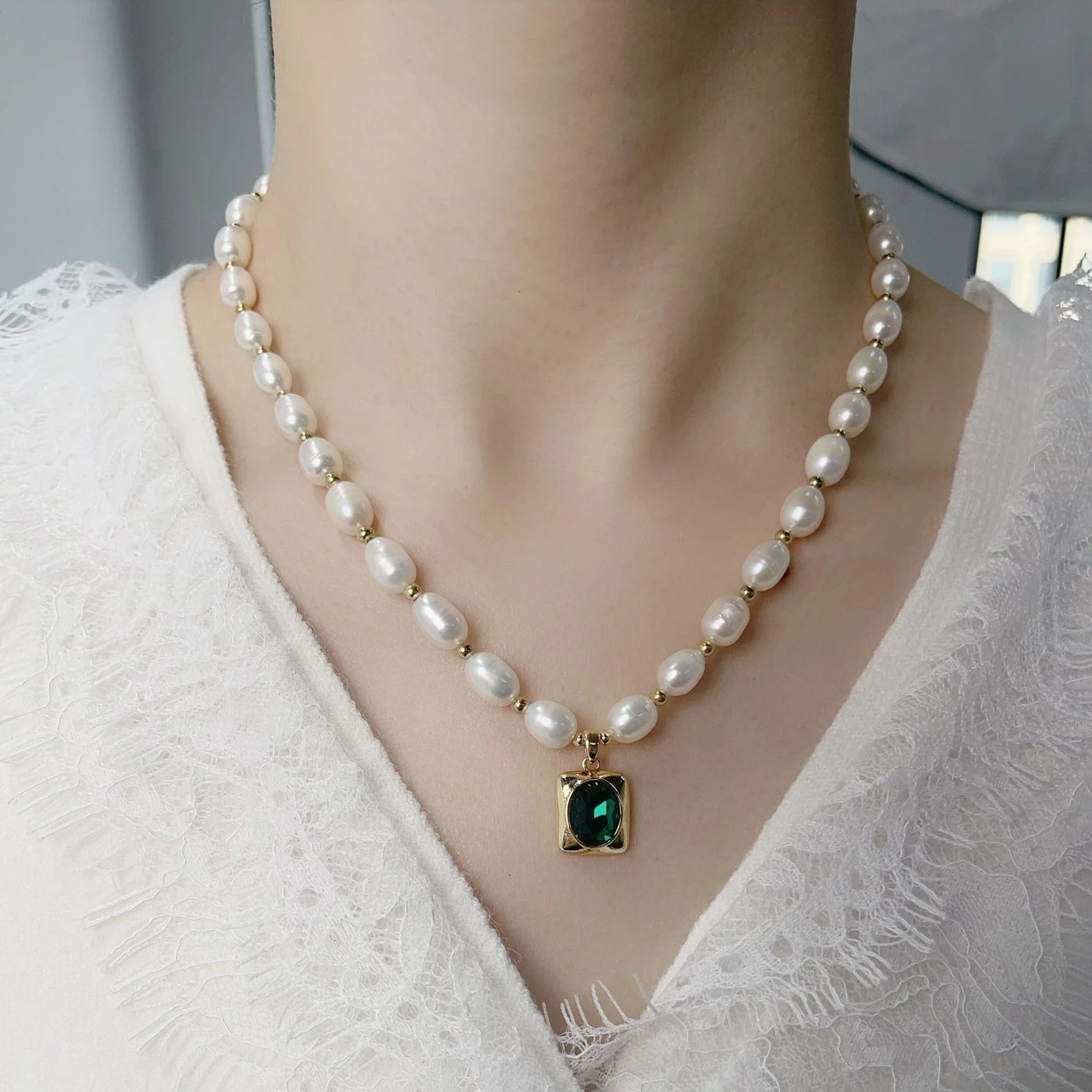 天然淡水珍珠小米粒项链女轻奢复古小众设计感高级锁骨链吊坠颈链
