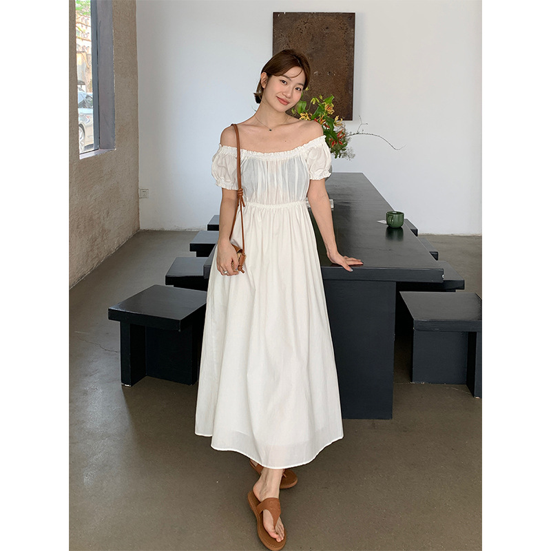 一字领连衣裙夏新品韩版高腰显瘦系带长裙