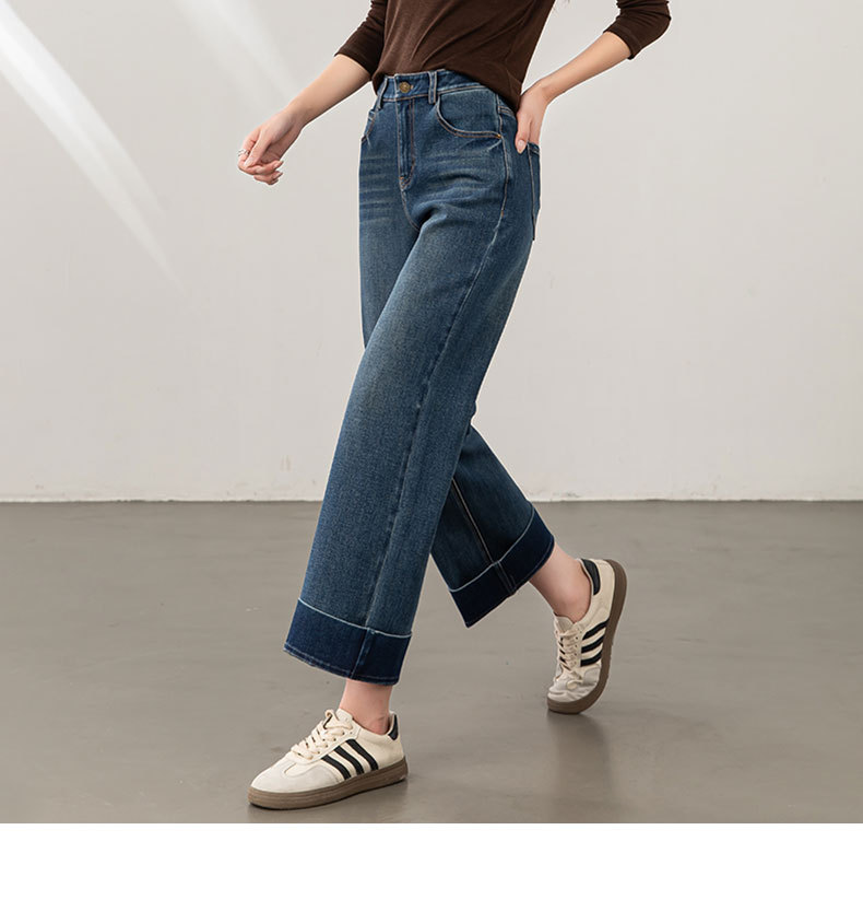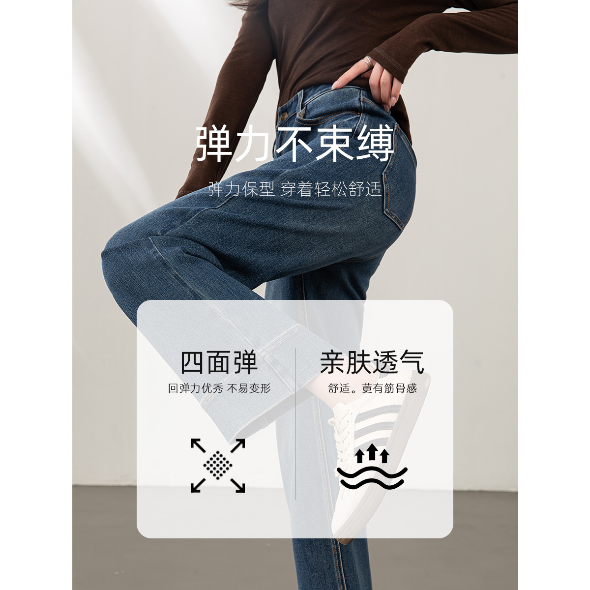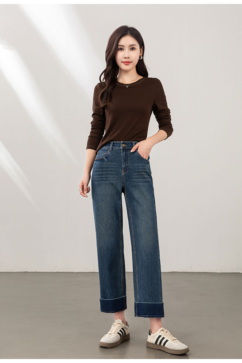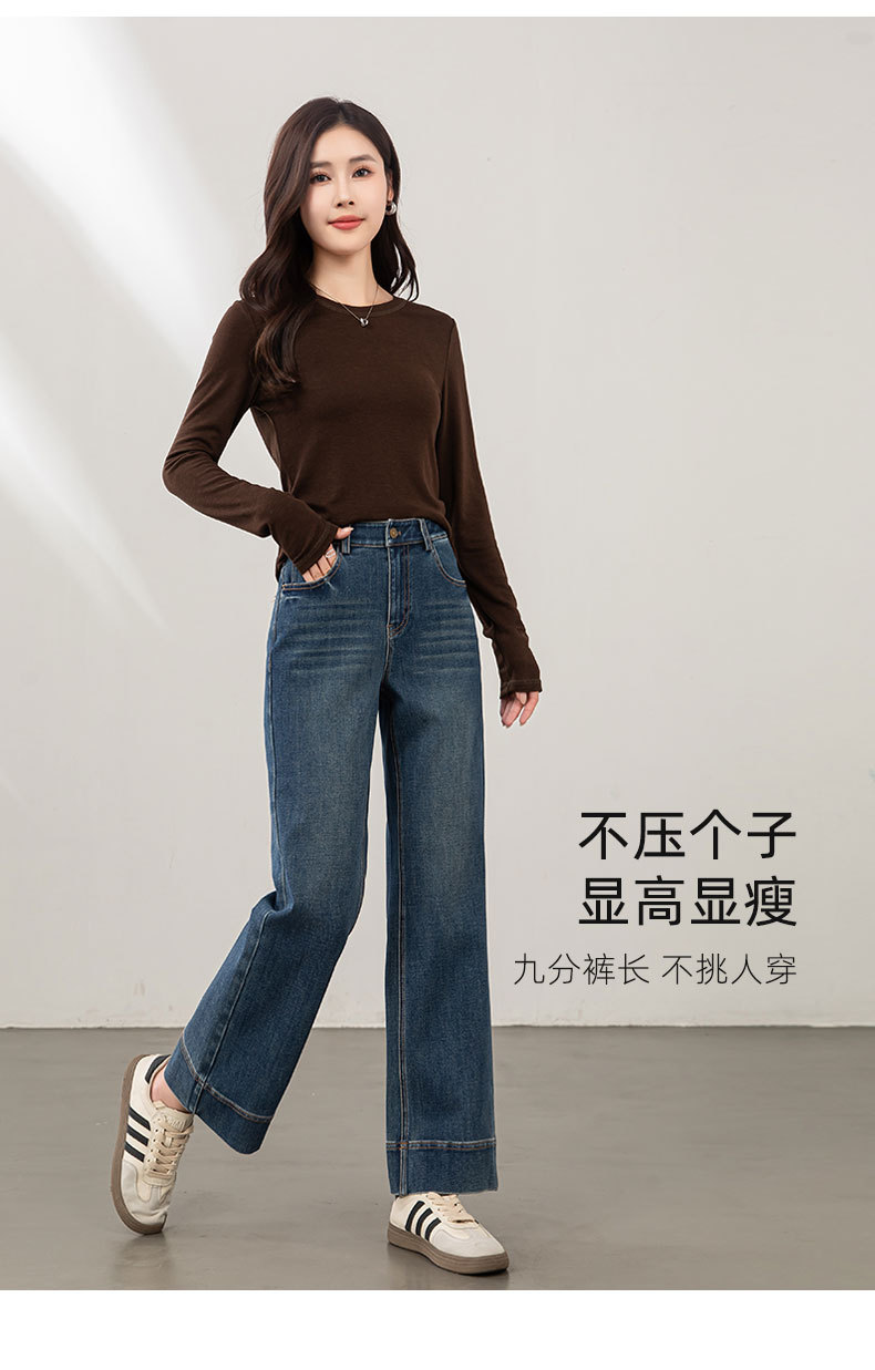 复古九分牛仔裤女秋季四面弹百搭秋新款小个子宽松直筒阔腿裤