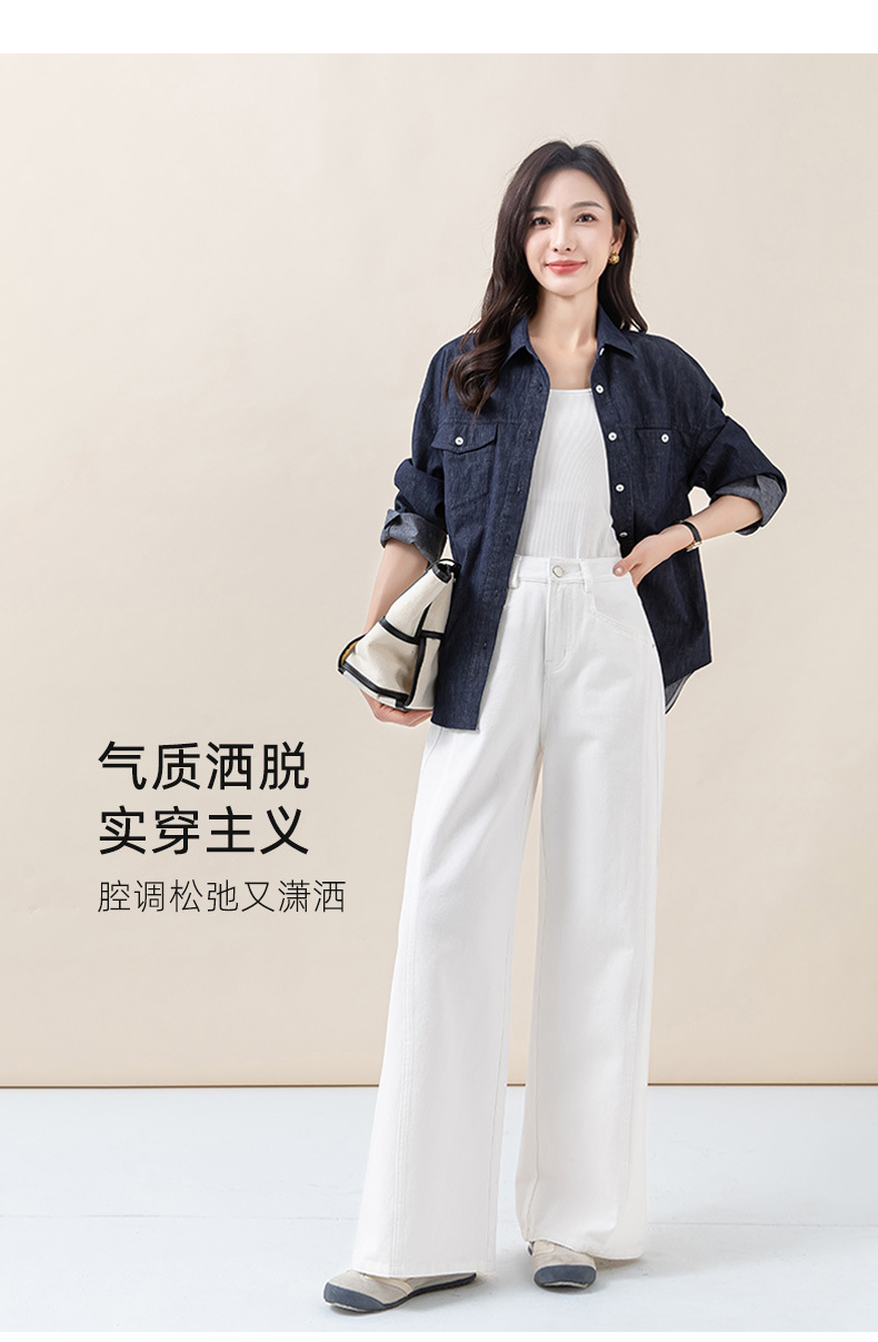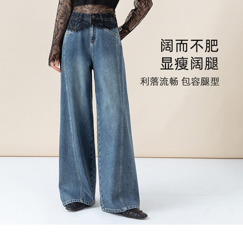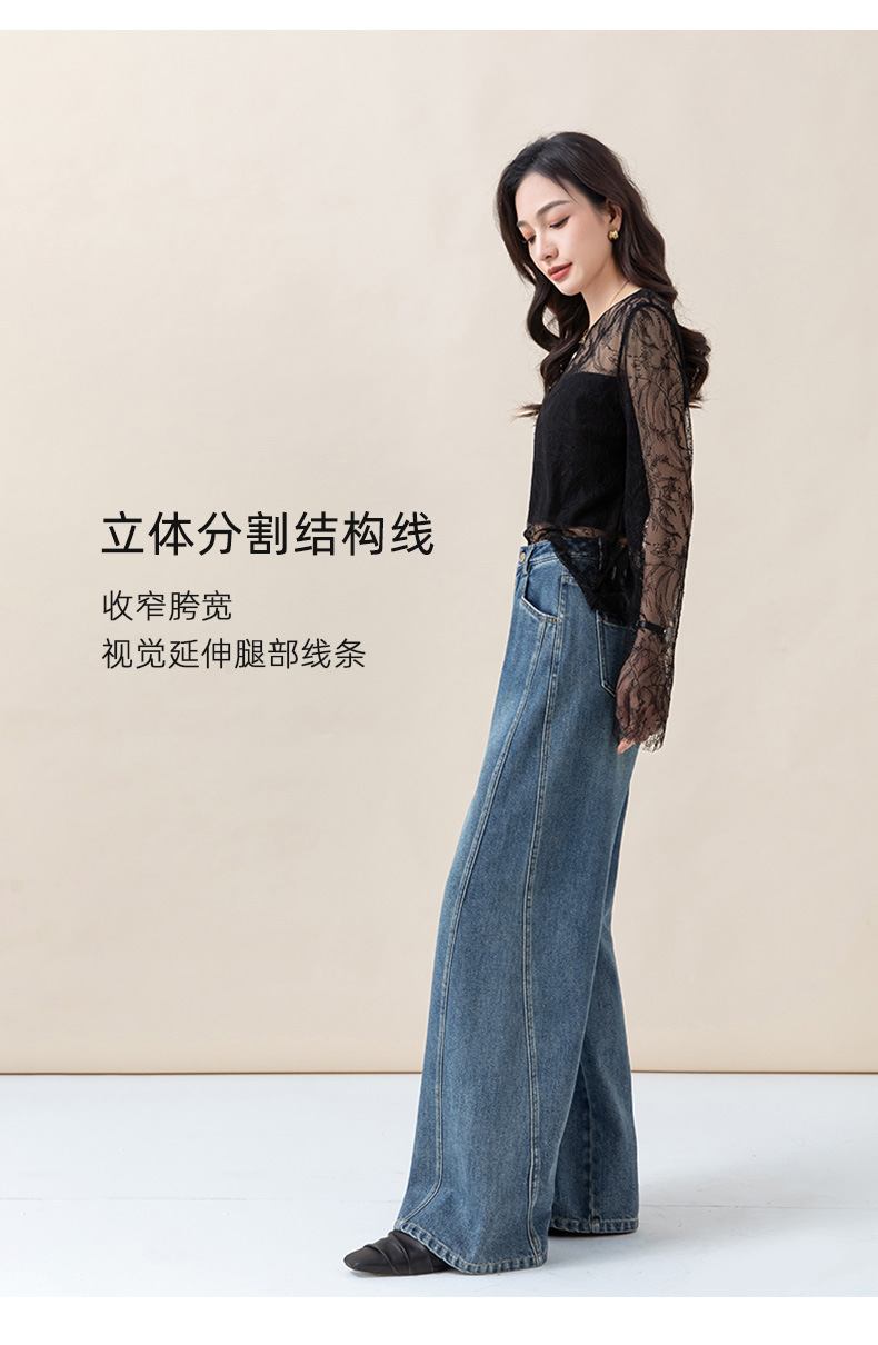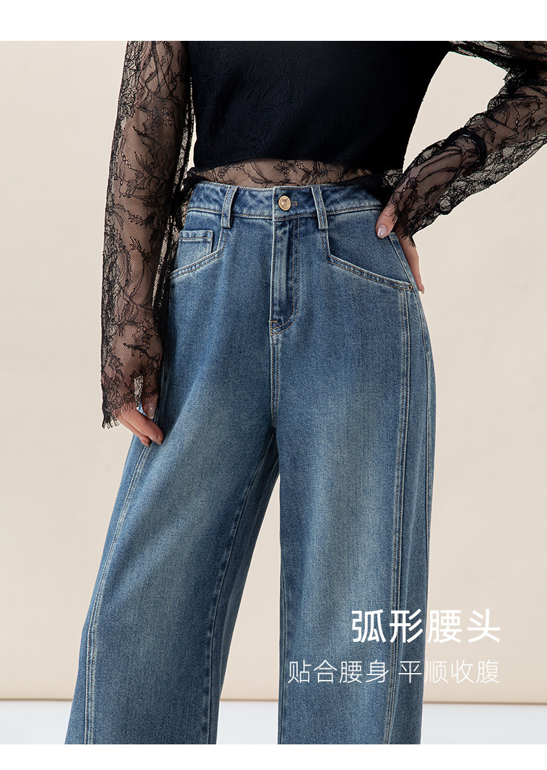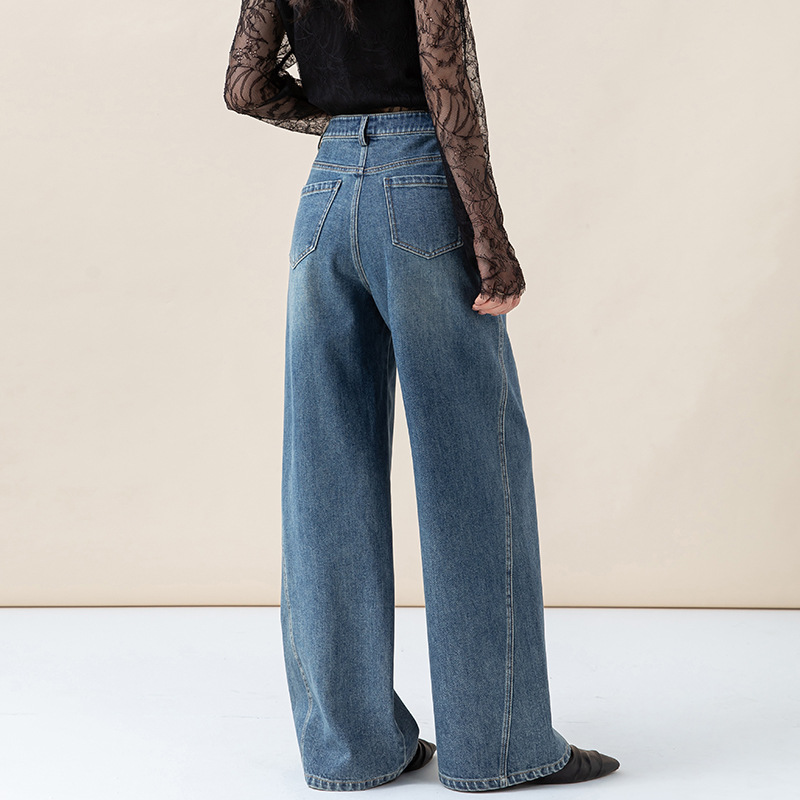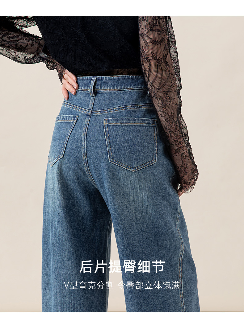 经典百搭宽松直筒牛仔裤2025新款气质通勤阔腿设计感女长裤