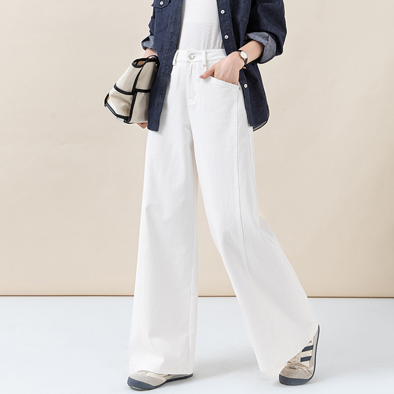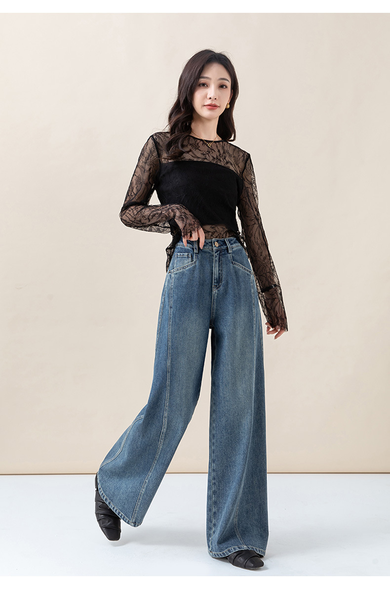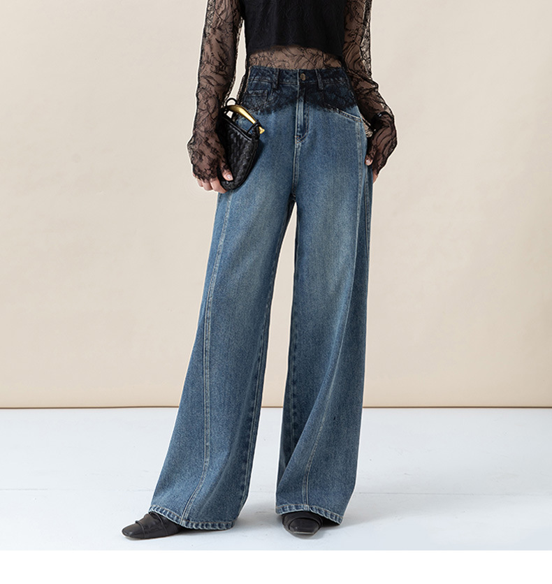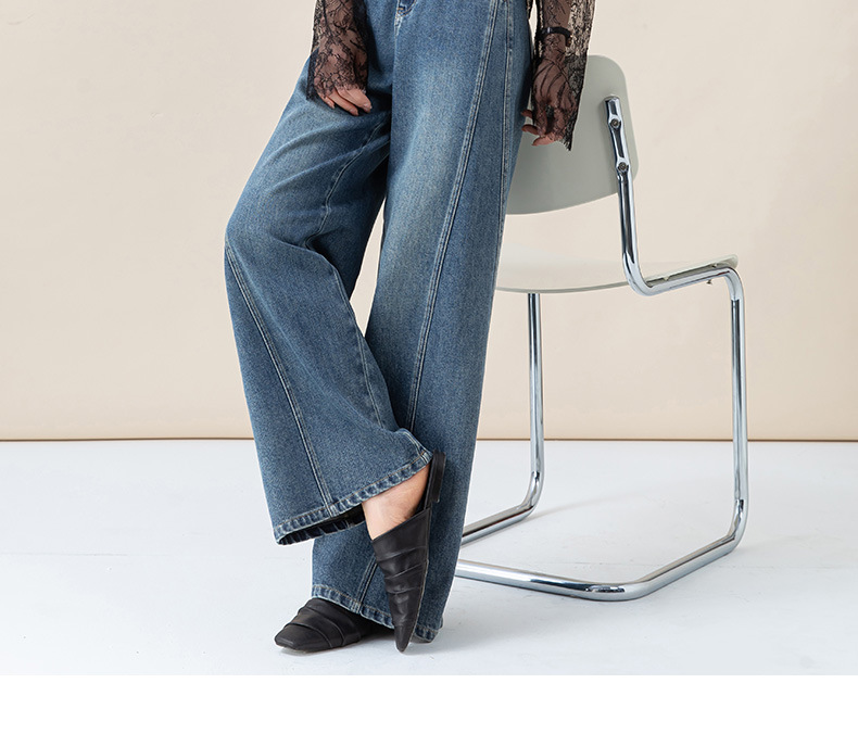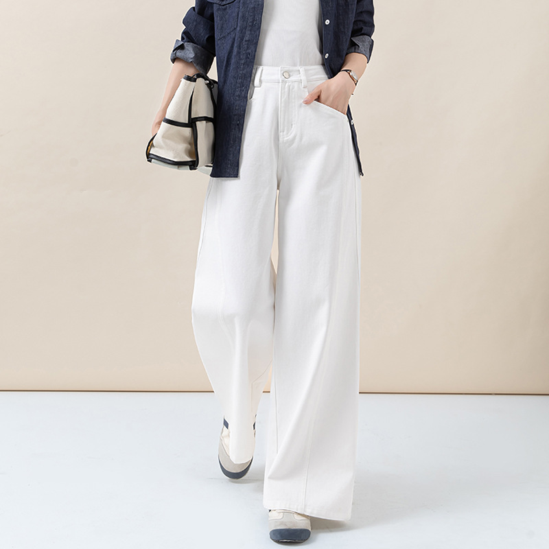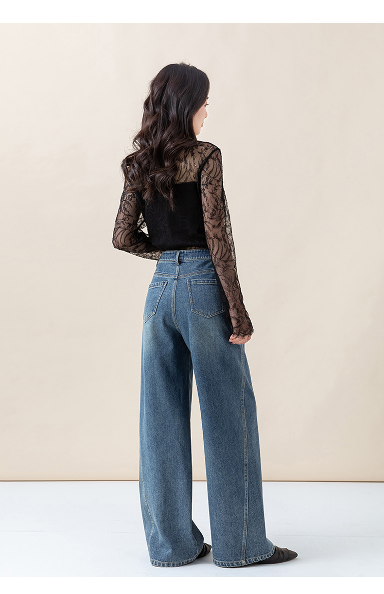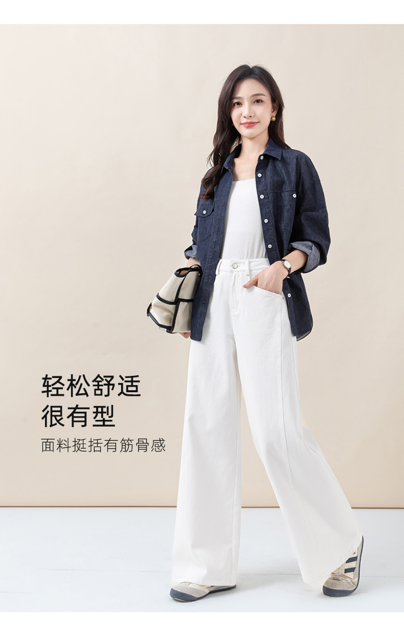 经典百搭宽松直筒牛仔裤2025新款气质通勤阔腿设计感女长裤
