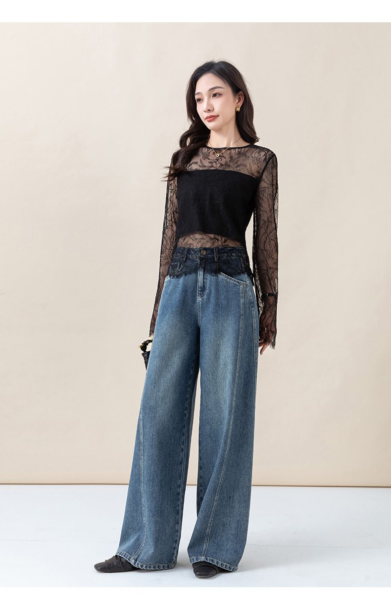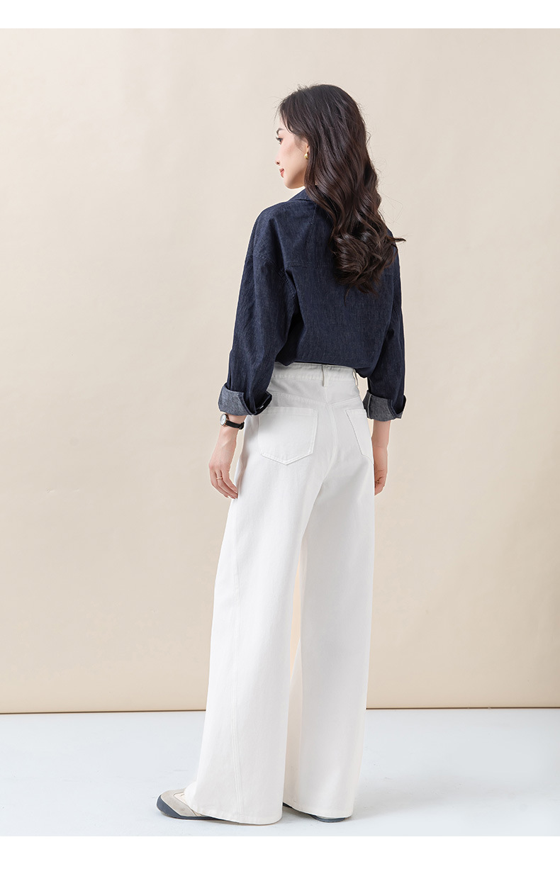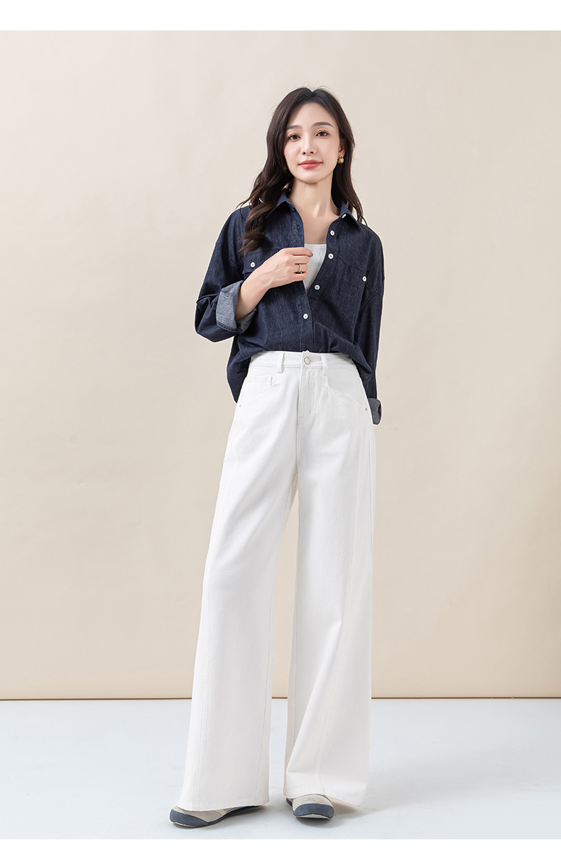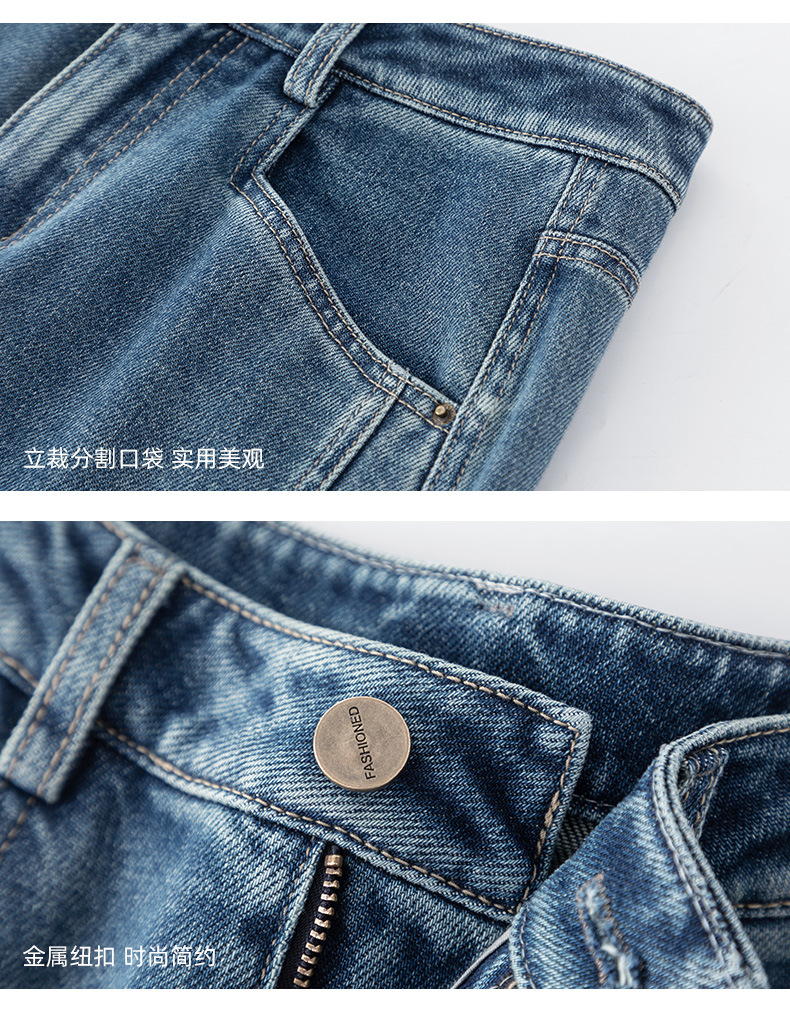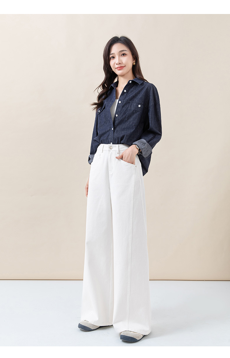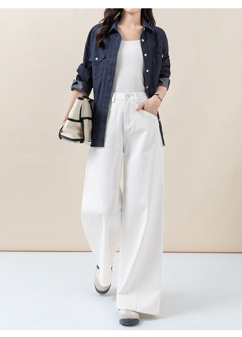 经典百搭宽松直筒牛仔裤2025新款气质通勤阔腿设计感女长裤