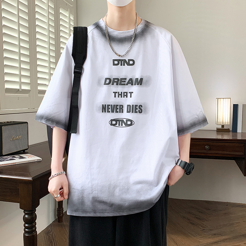 新工艺喷墨染 青少年圆领短袖T恤夏季新款港风T恤学生潮短袖