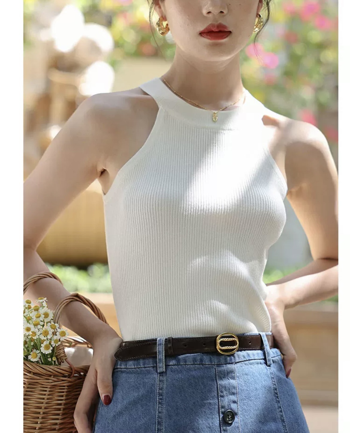 薄款挂脖针织吊带背心女夏季法式复古修身气质上衣
