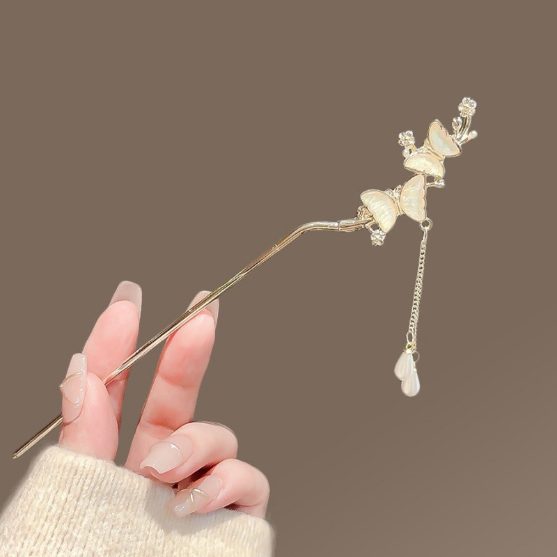 ins新中式发饰鎏金蝴蝶发簪女古苏步摇盘发簪子现代简约发钗头饰