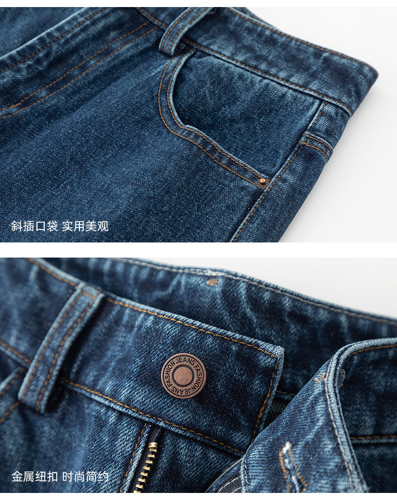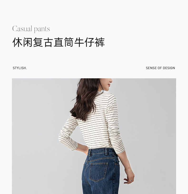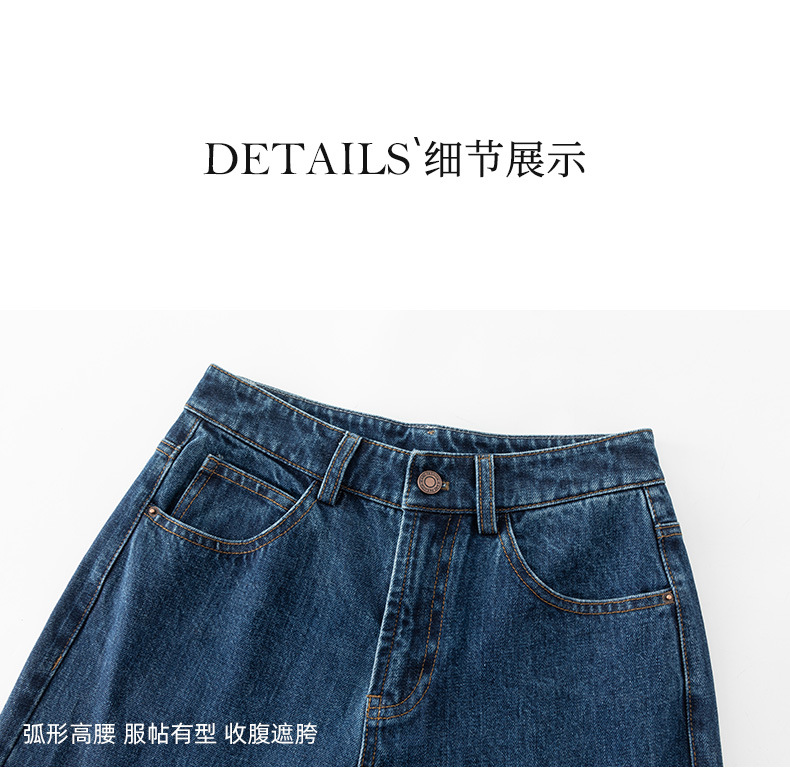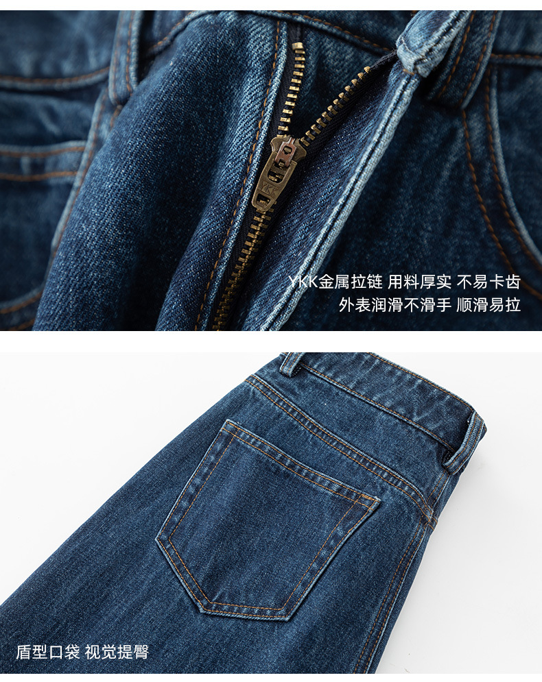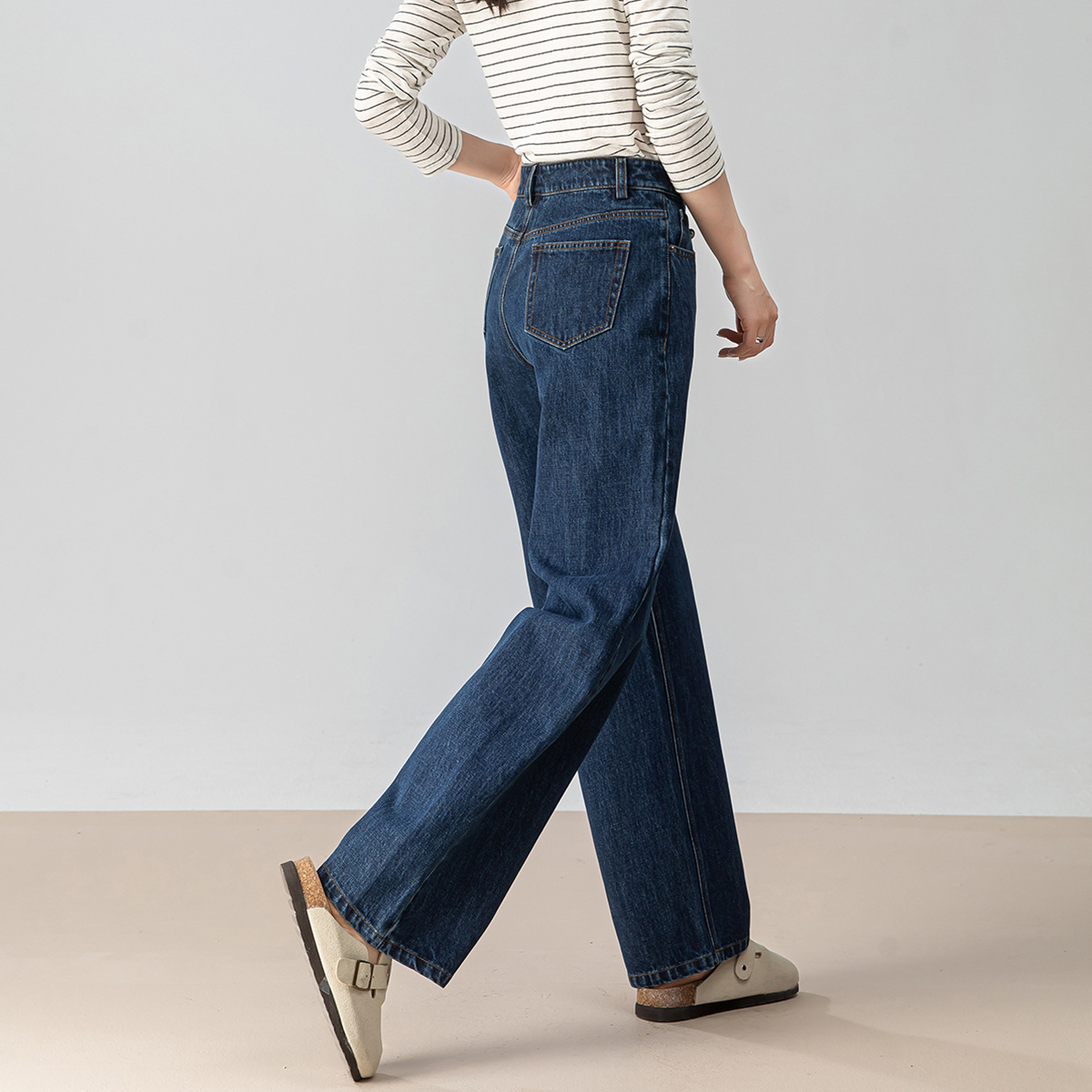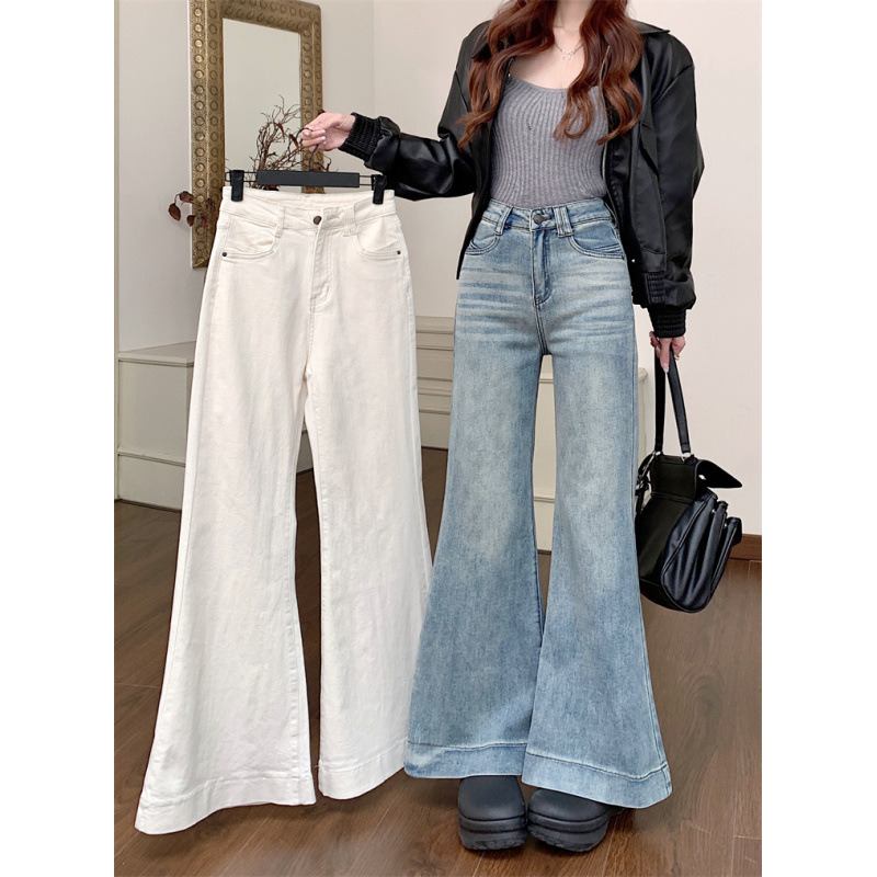 美式早春复古阔腿牛仔裤女高腰显瘦弹力微喇叭直筒长裤