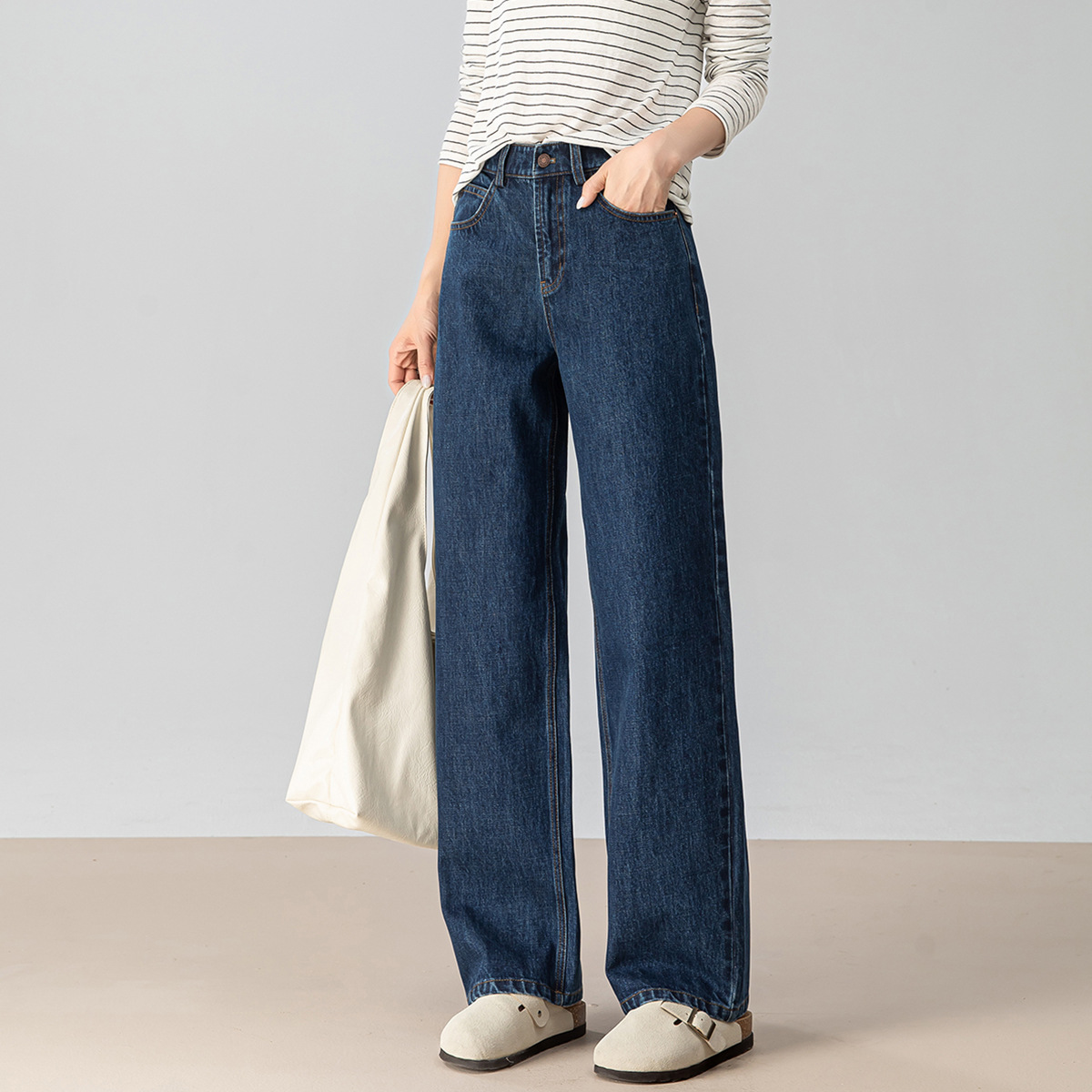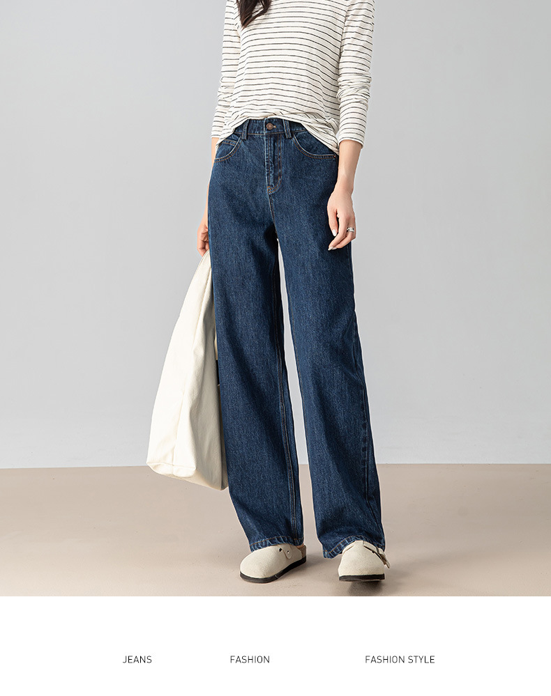 直筒牛仔裤女阔腿宽松2025秋季新款百搭显瘦休闲窄版长裤子