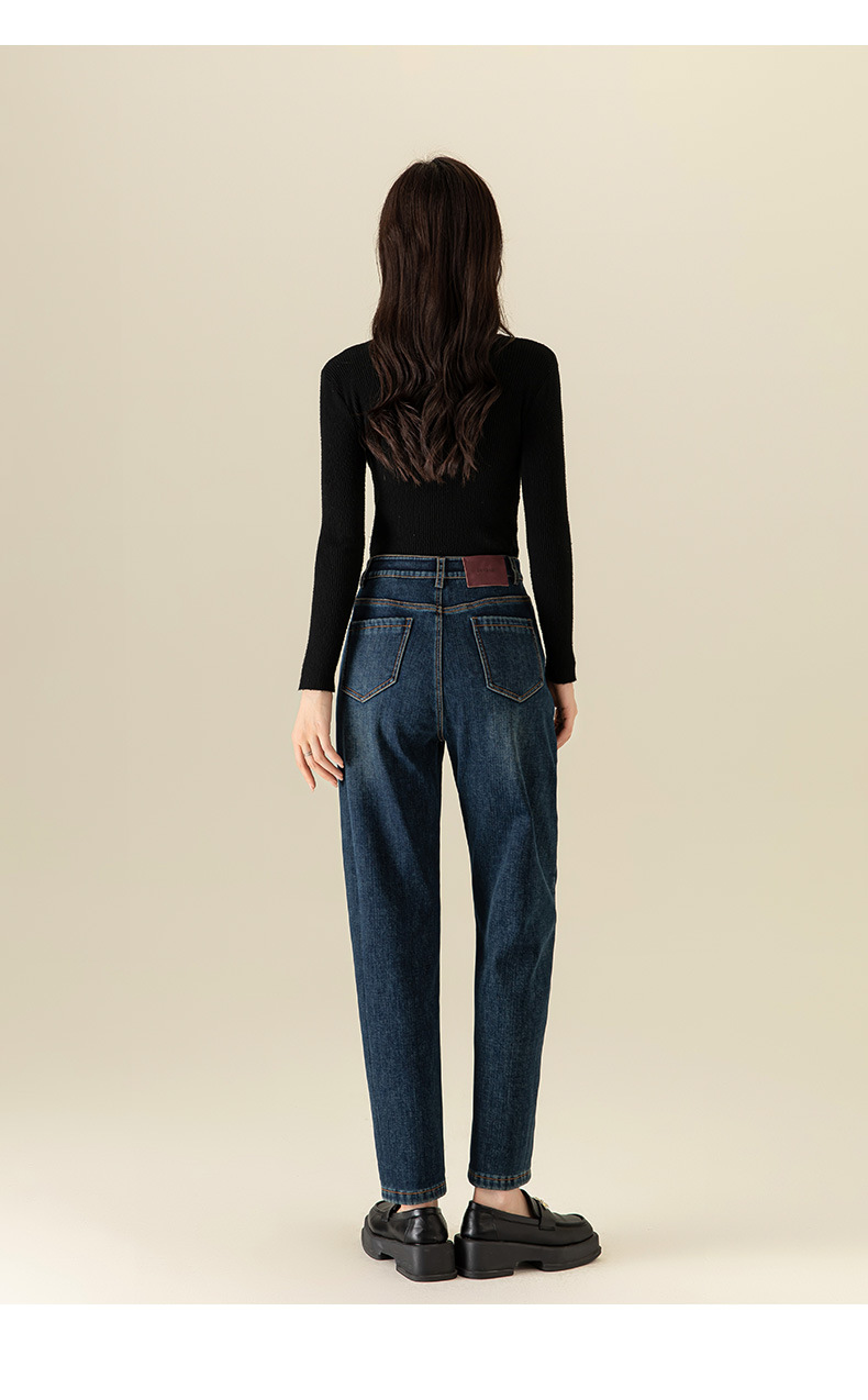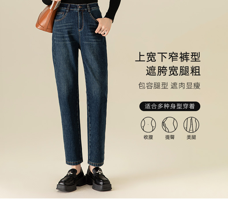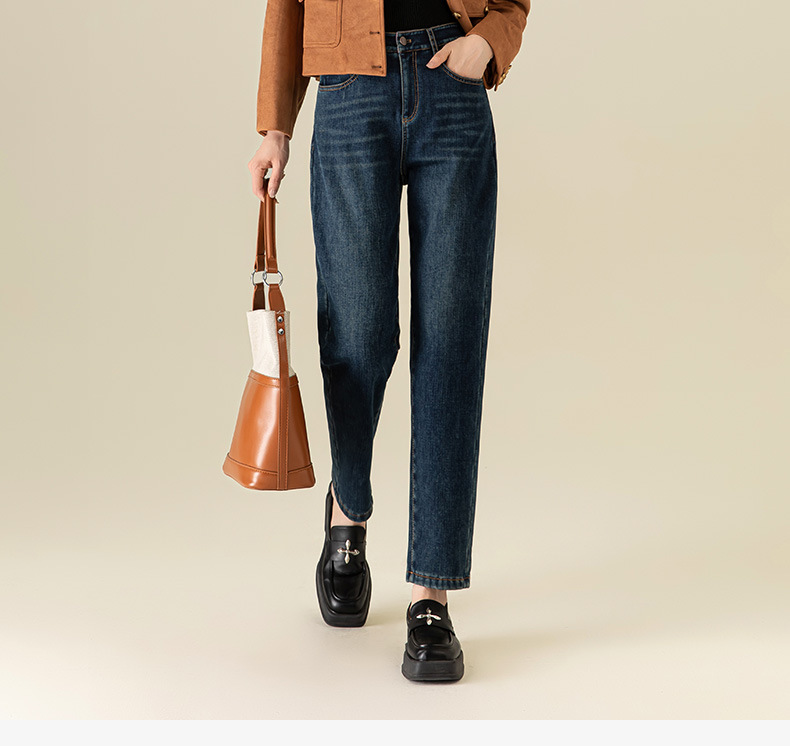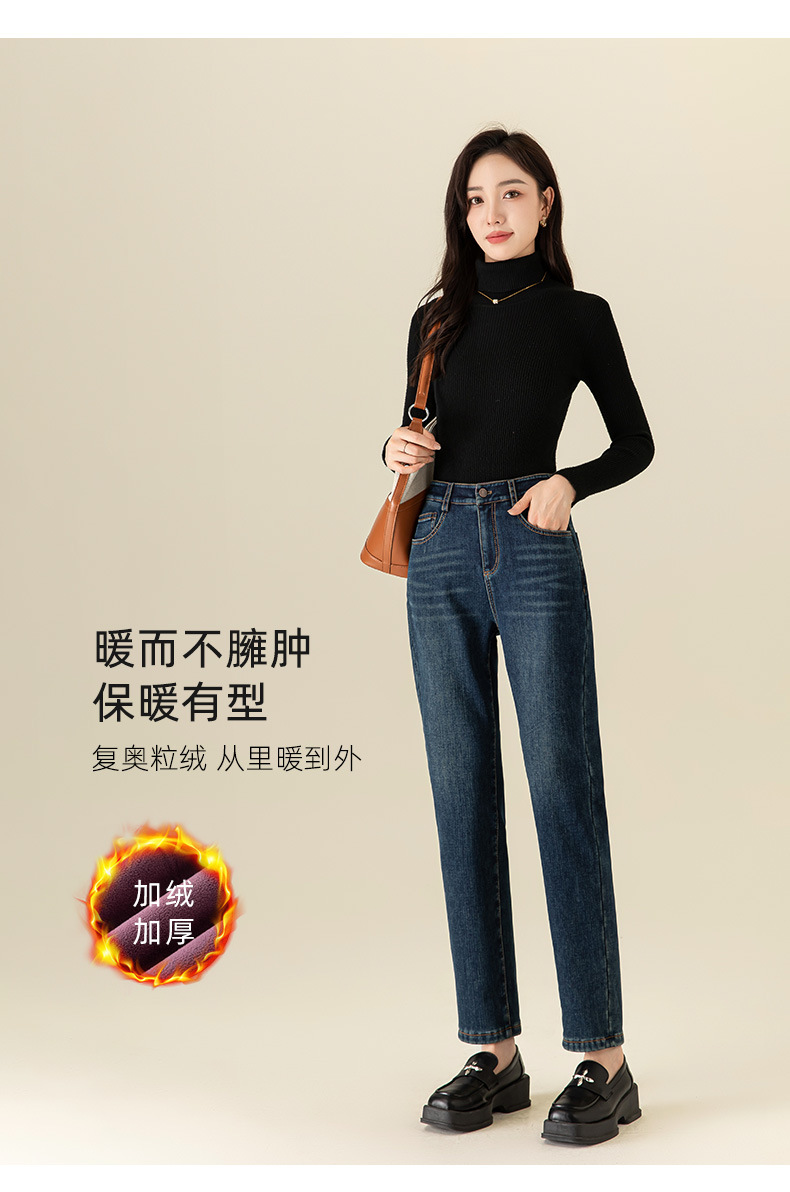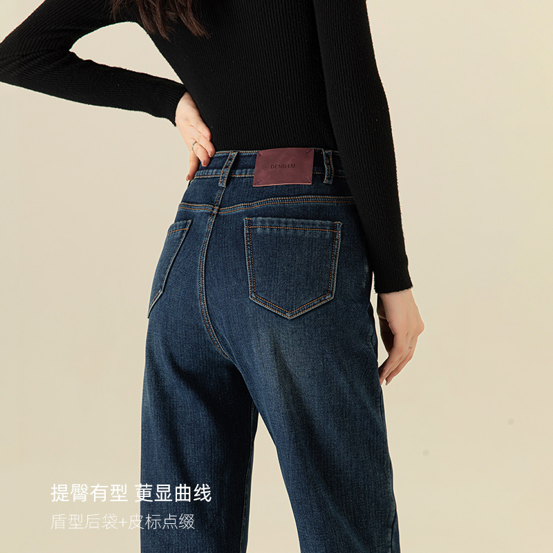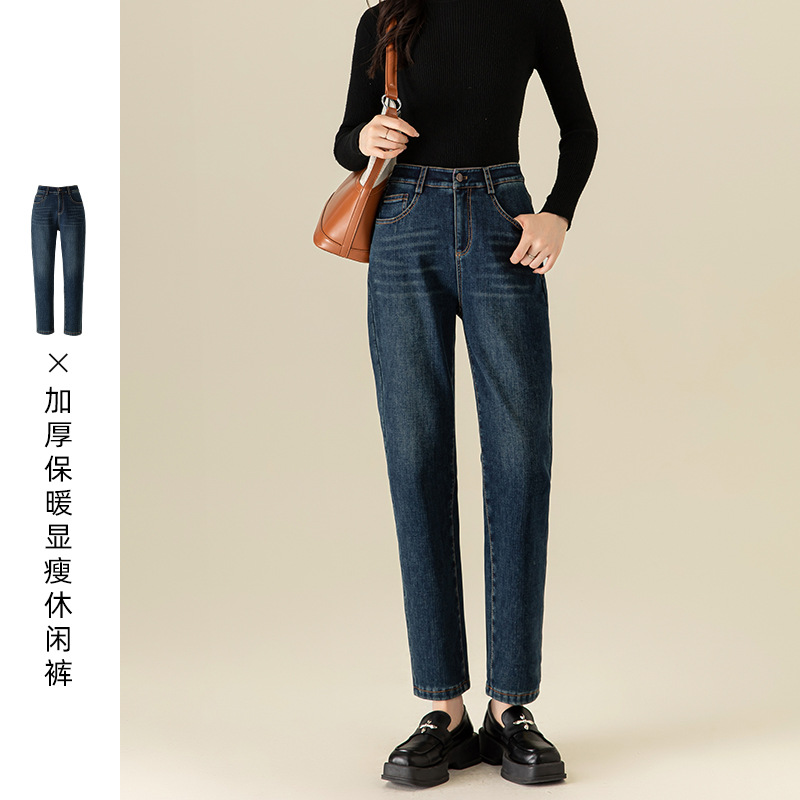 哈伦牛仔裤女加绒冬季2025新款高腰宽松萝卜老爹裤子