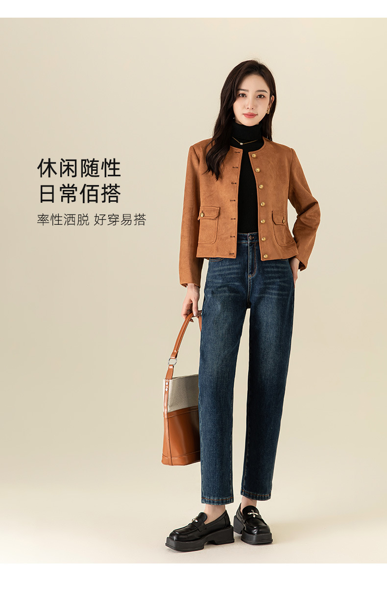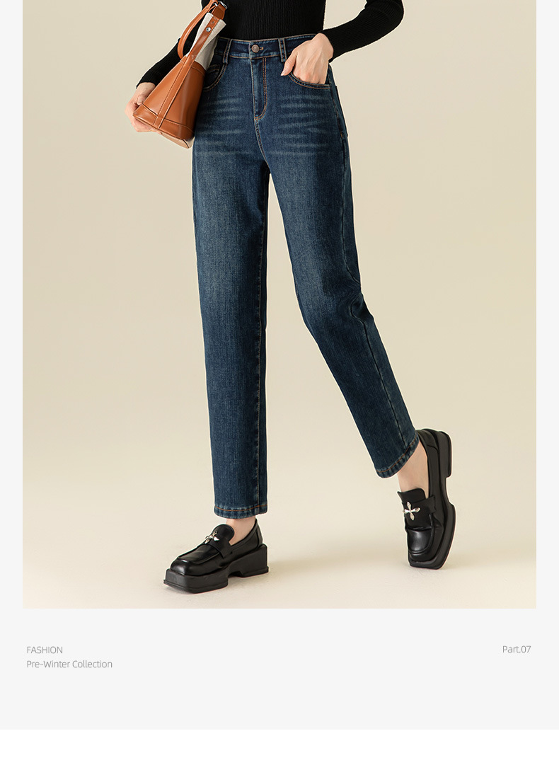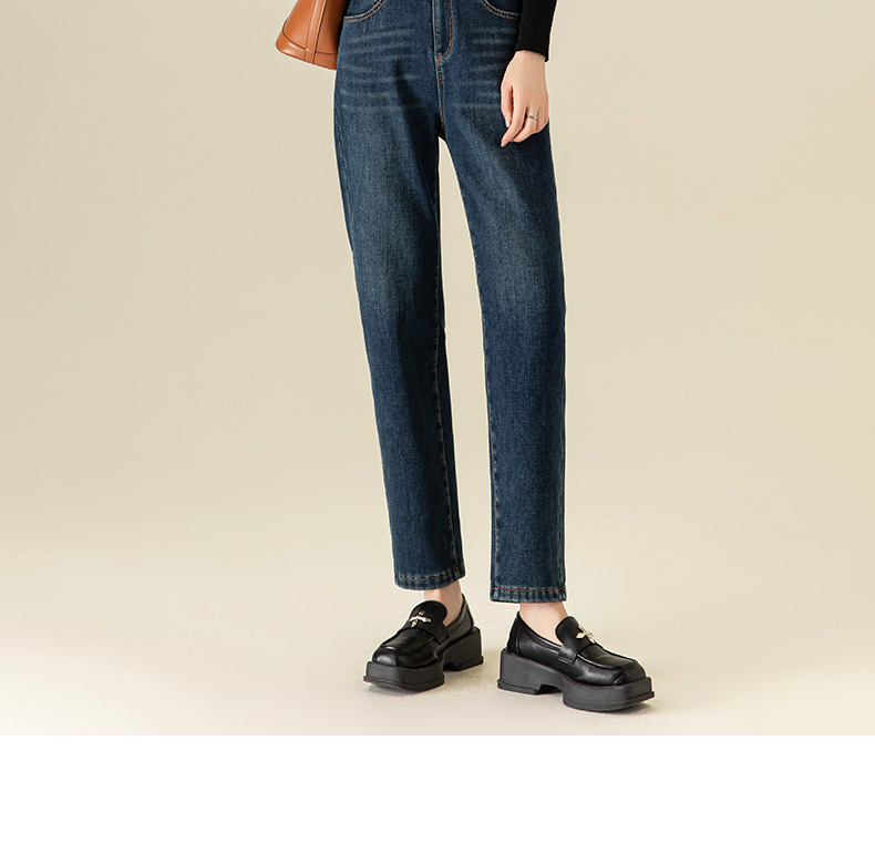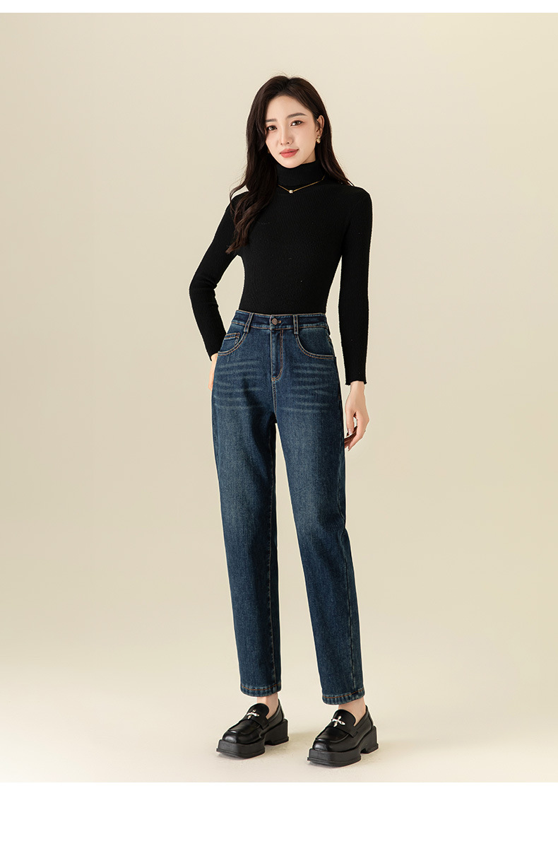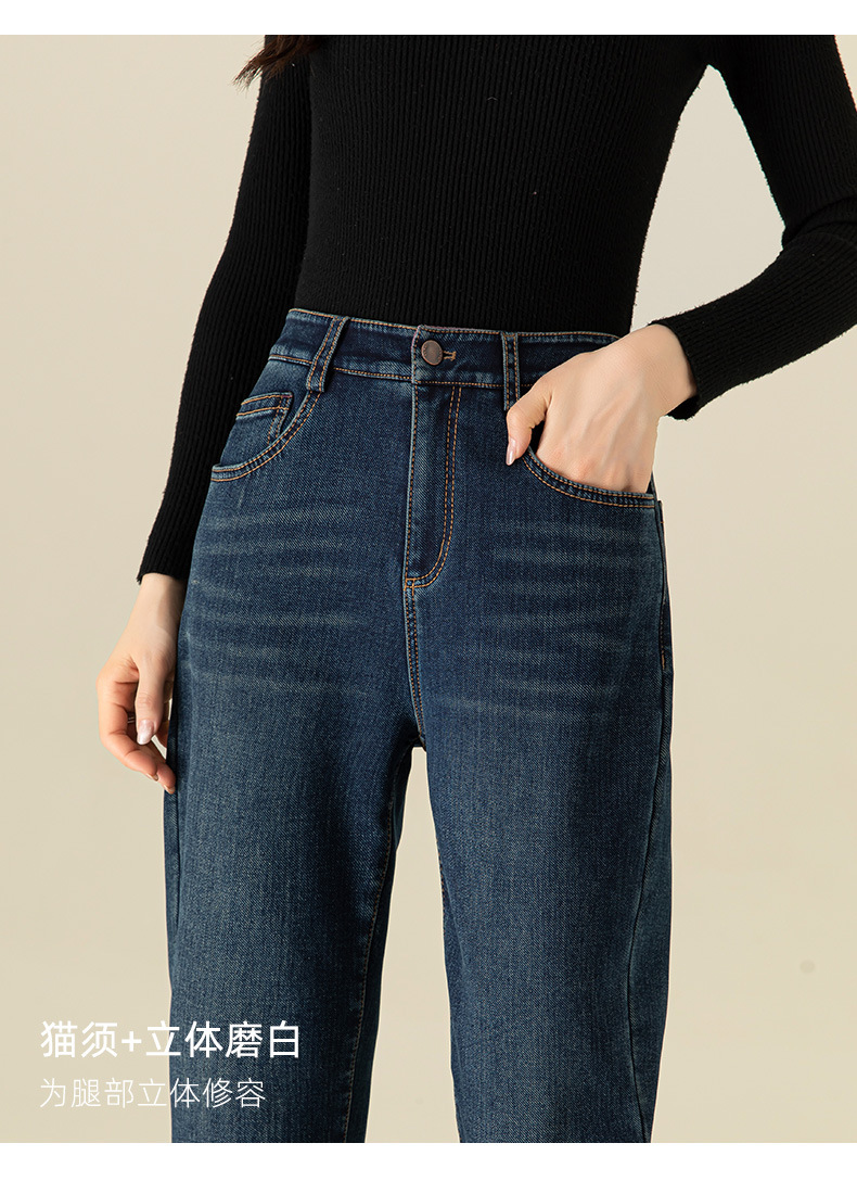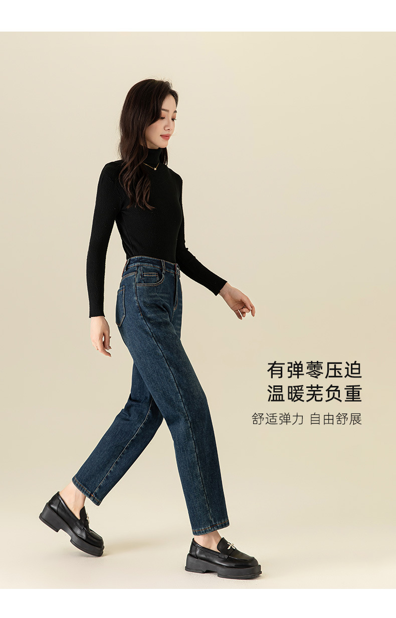 哈伦牛仔裤女加绒冬季2025新款高腰宽松萝卜老爹裤子