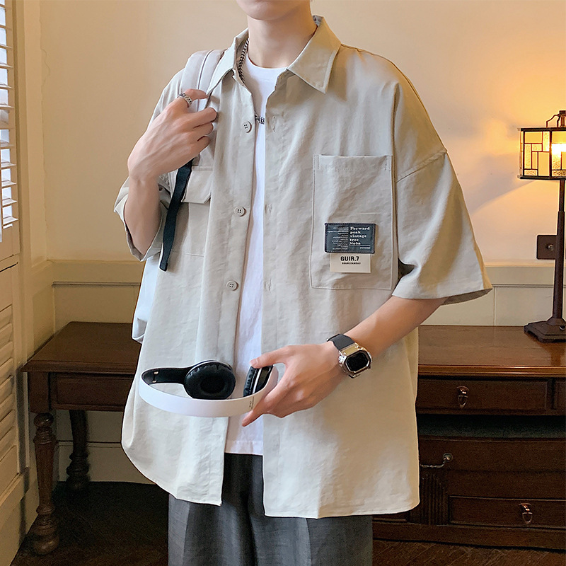 冰丝男士短袖衬衫工装新款夏季衬衣宽松潮牌潮流夏天男生外套