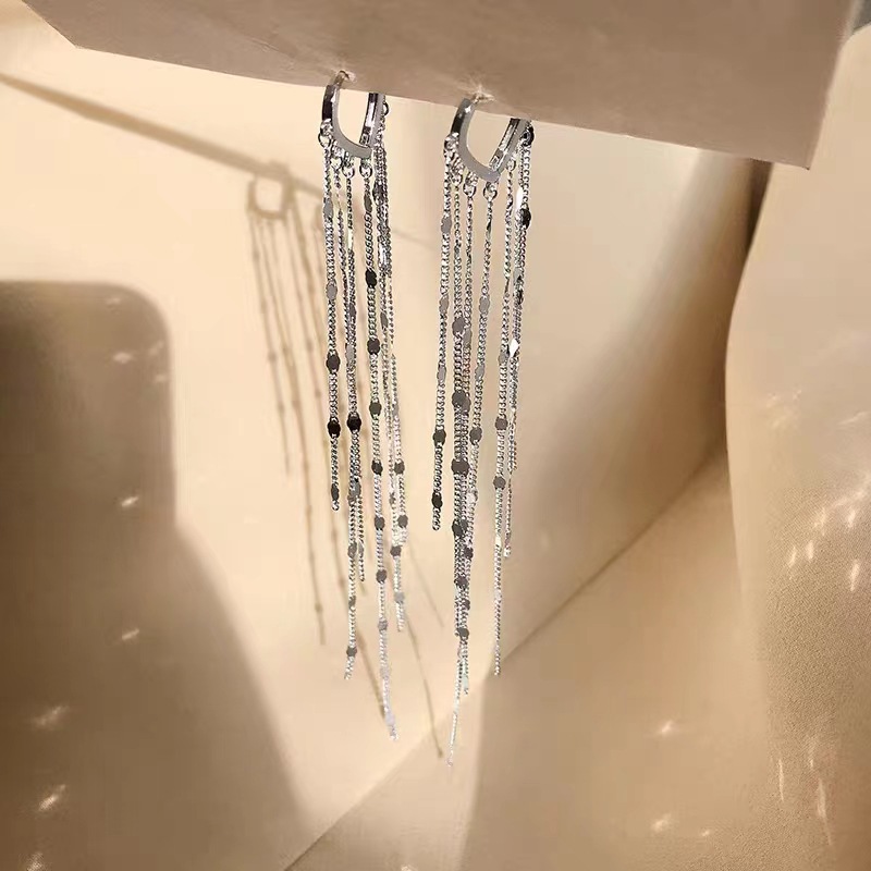 s925纯银简约爱心耳扣耳饰轻奢时尚高级感长款流苏耳线冷淡风耳环