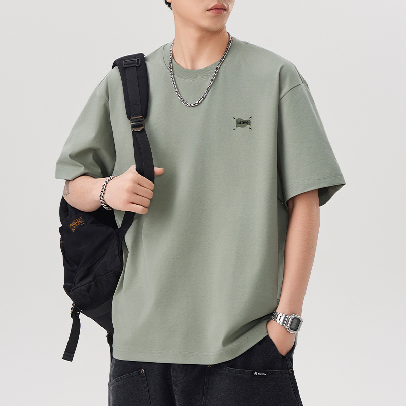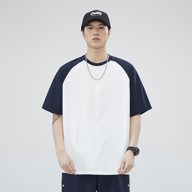 250G美式重磅插肩短袖t恤男士夏季潮牌宽松撞色休闲纯棉百搭体恤