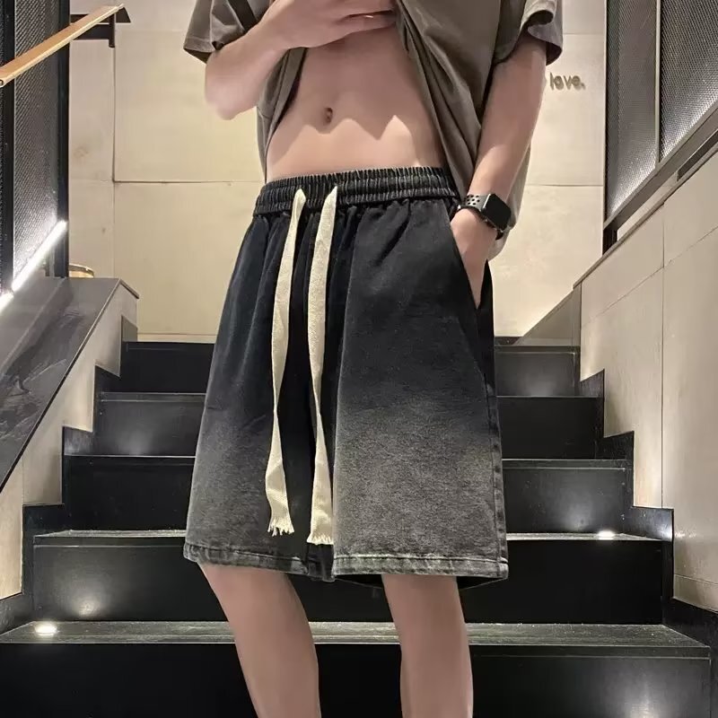 渐变牛仔五分裤潮牌ins宽松青少年男士裤子夏季薄款阔腿休闲短裤