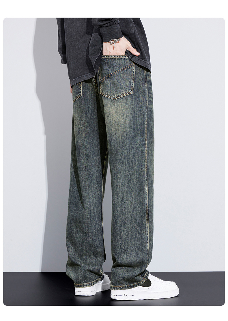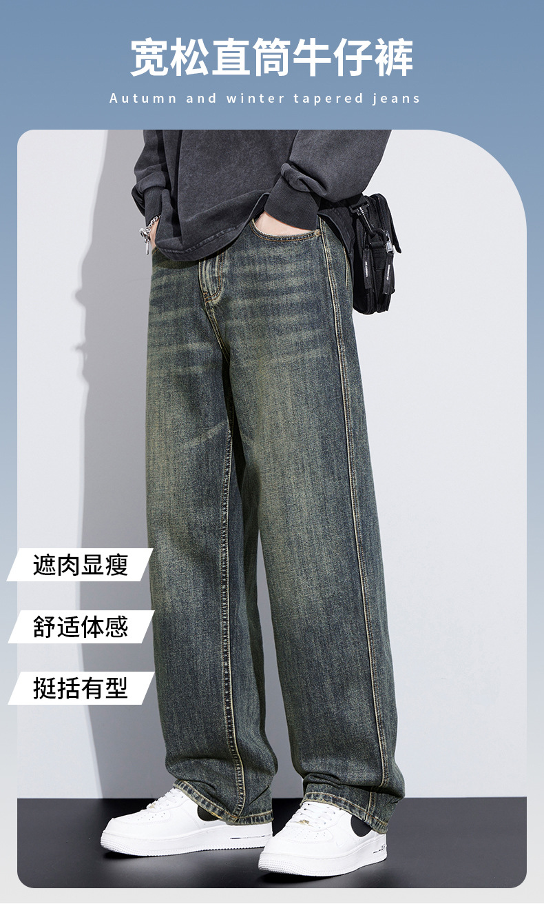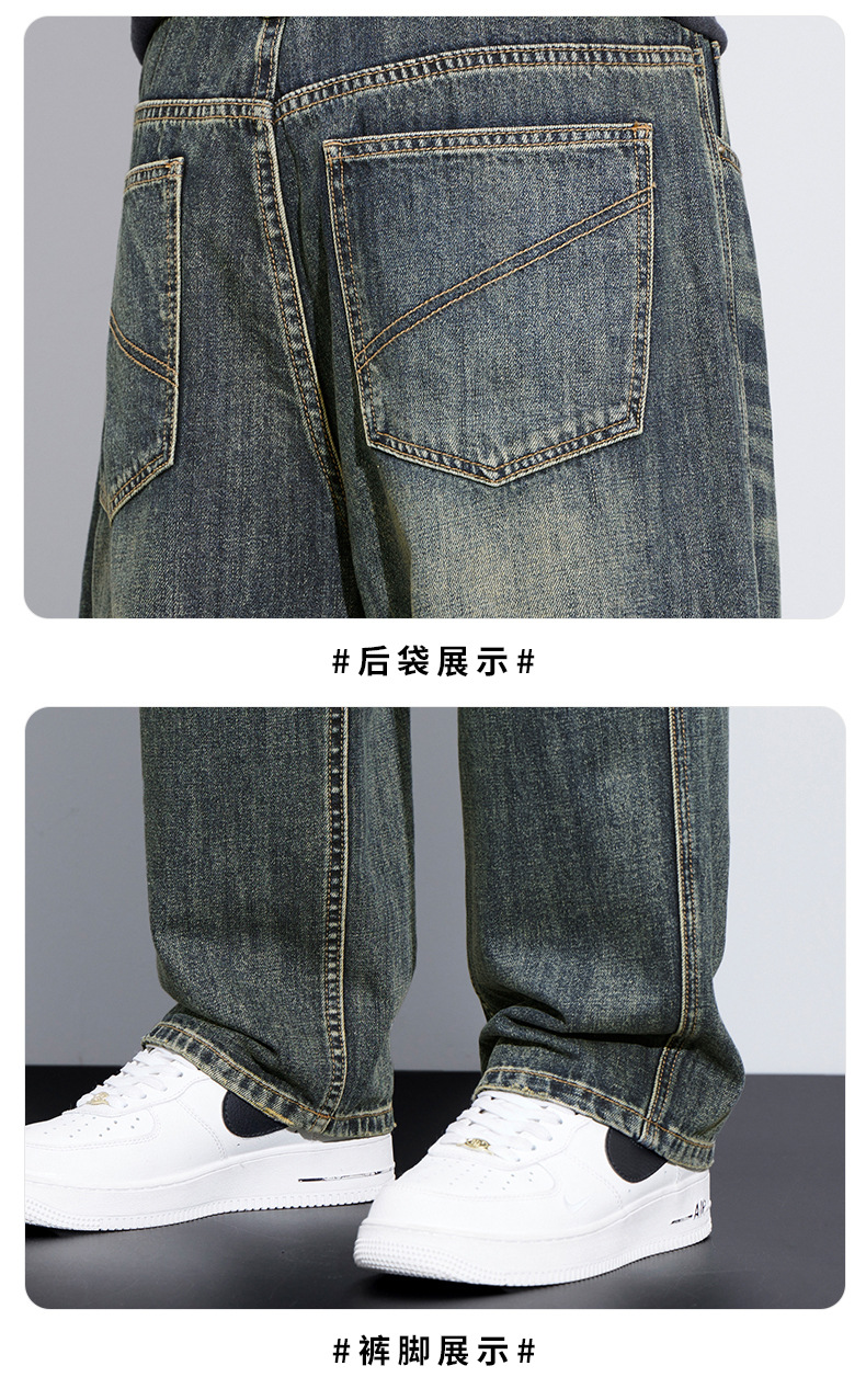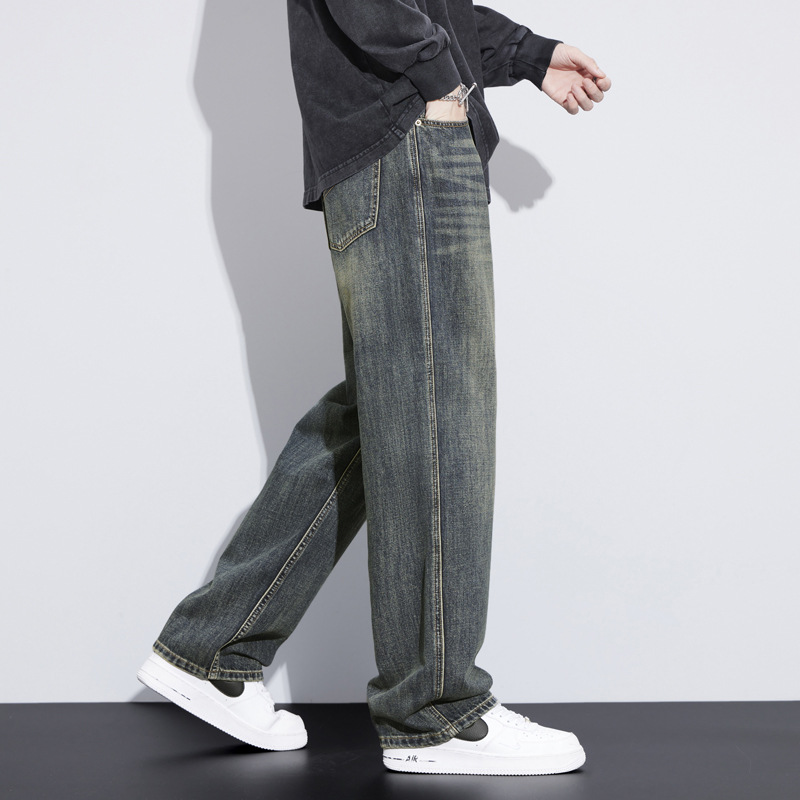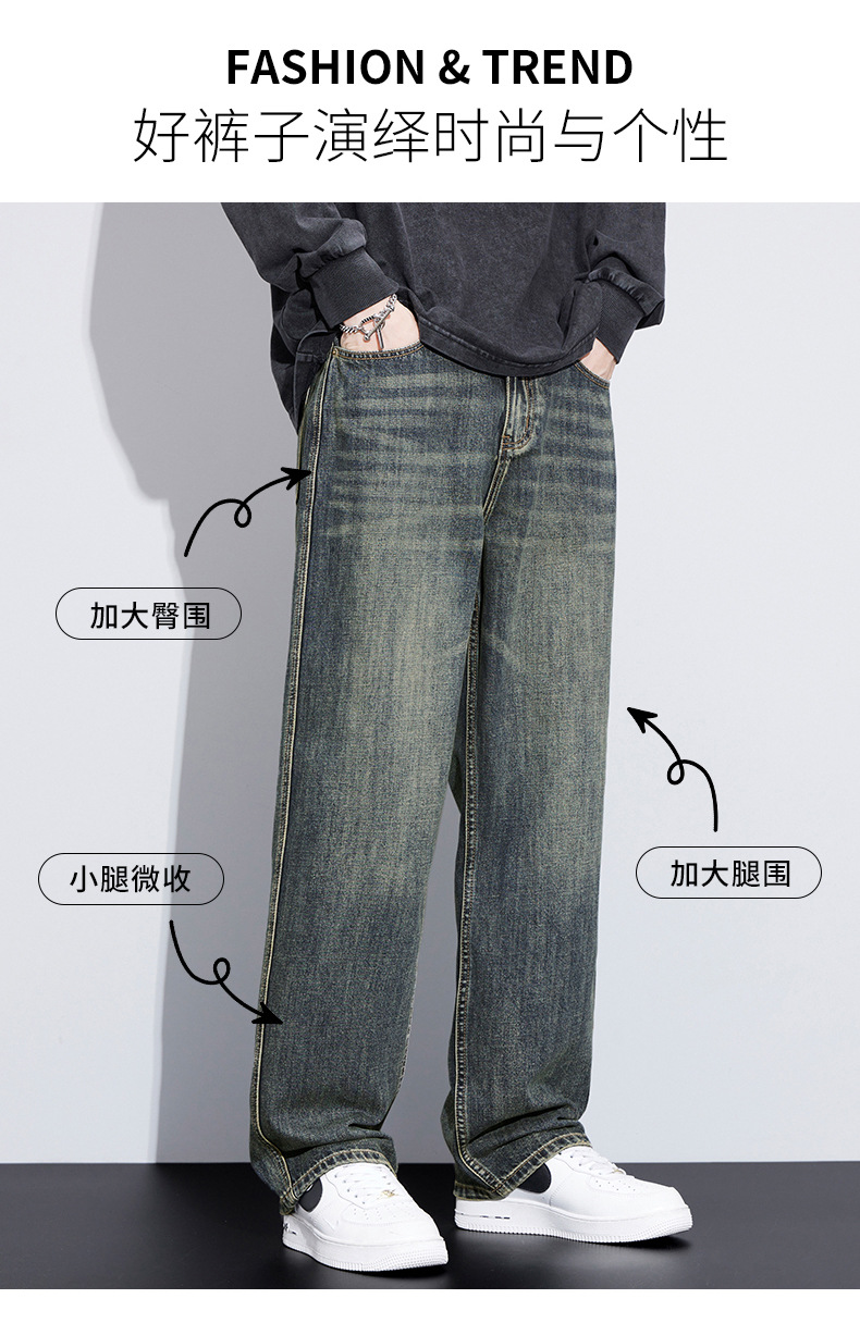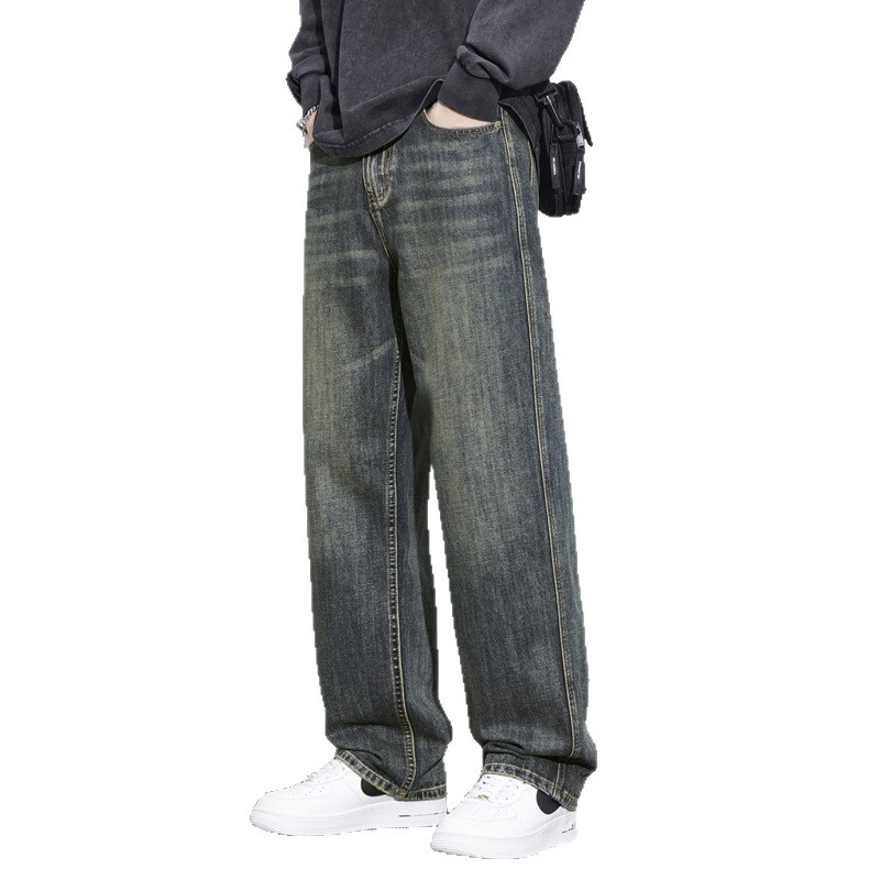 男士牛仔裤弯刀新款宽松直筒无弹裤子高街复古蓝色春秋休闲阔腿裤