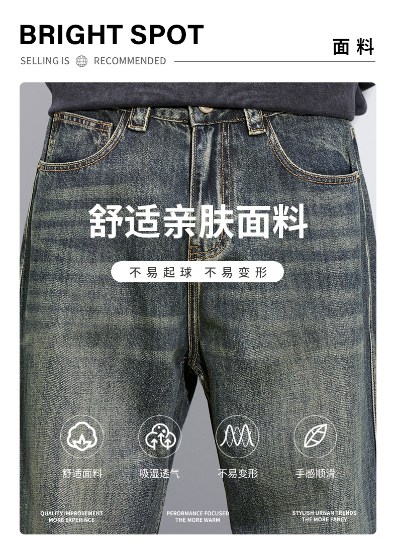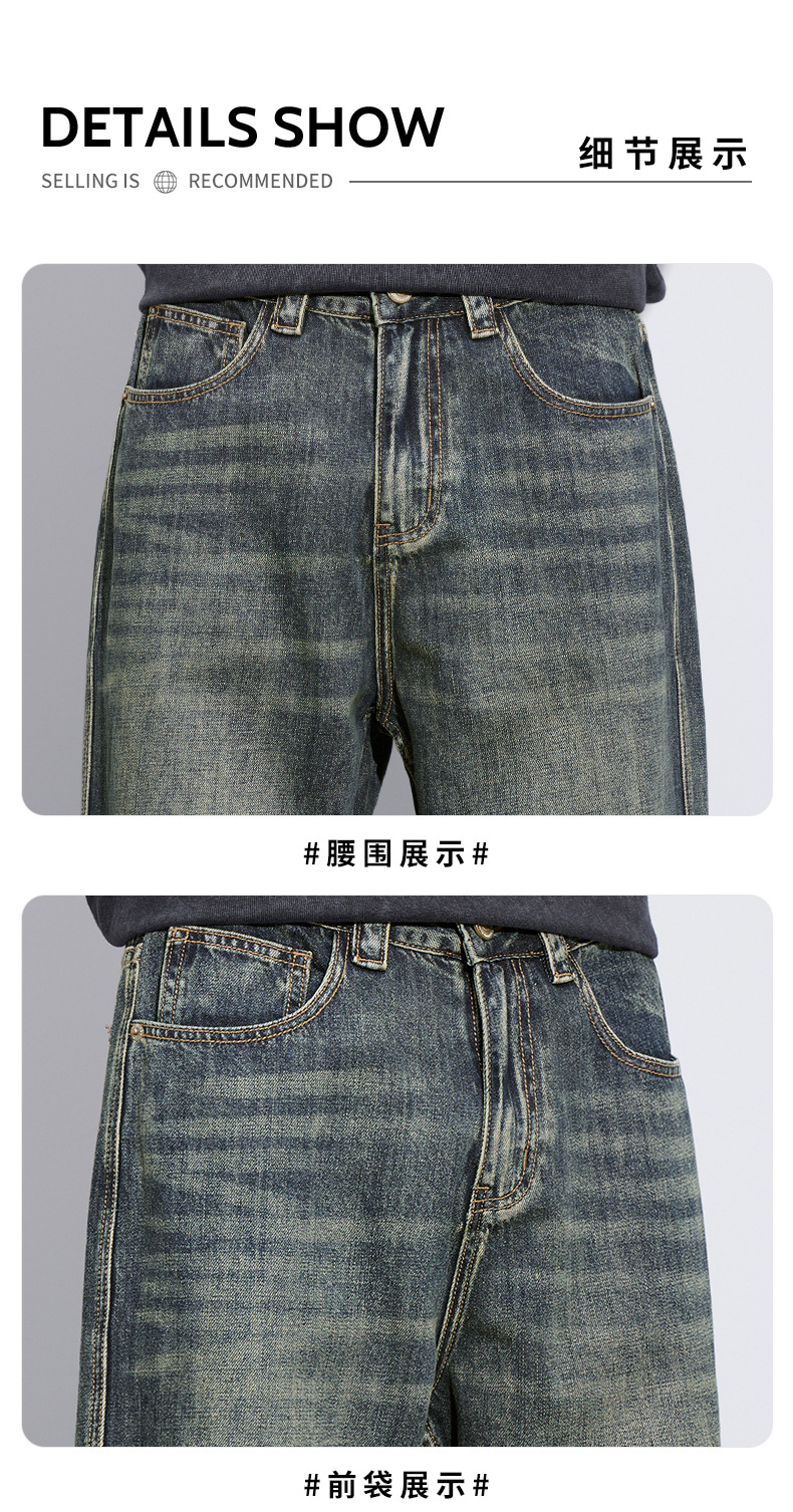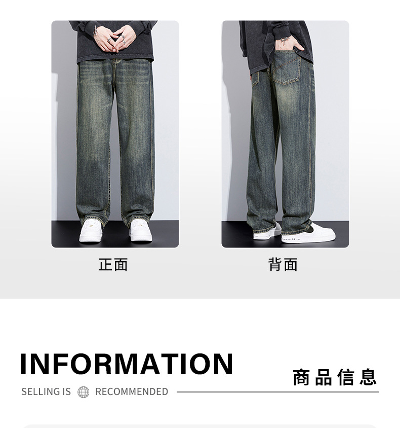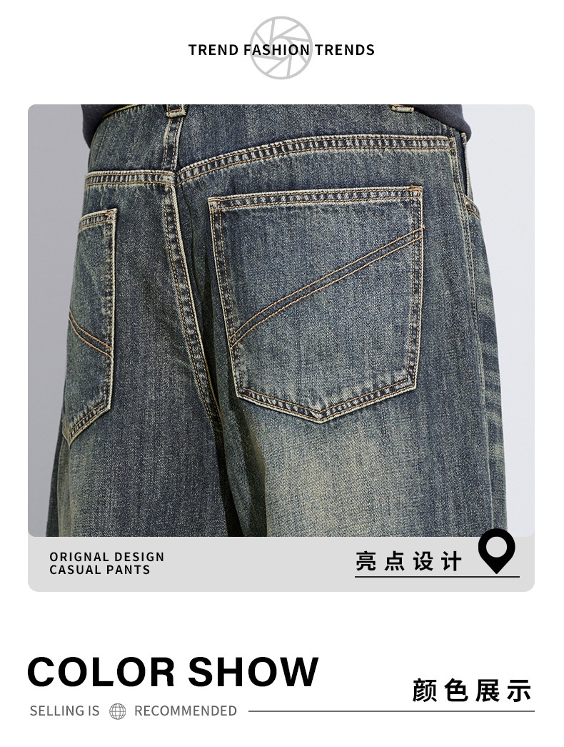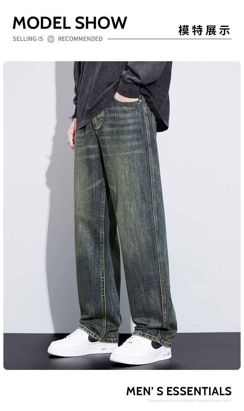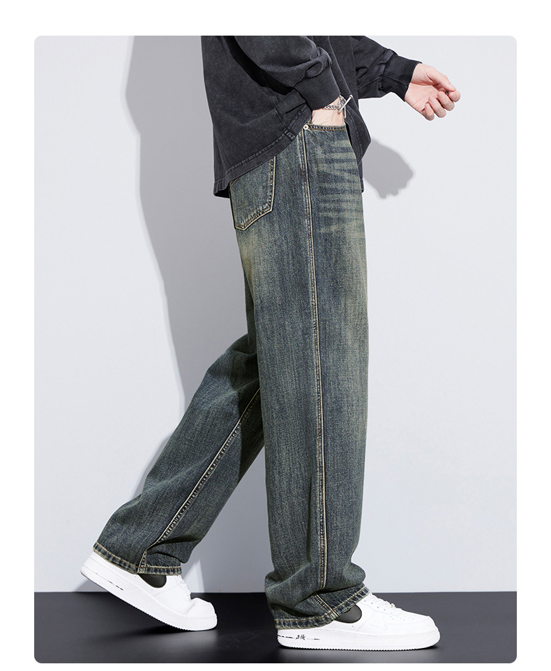 男士牛仔裤弯刀新款宽松直筒无弹裤子高街复古蓝色春秋休闲阔腿裤