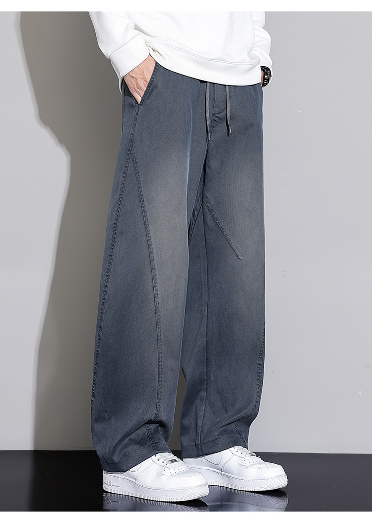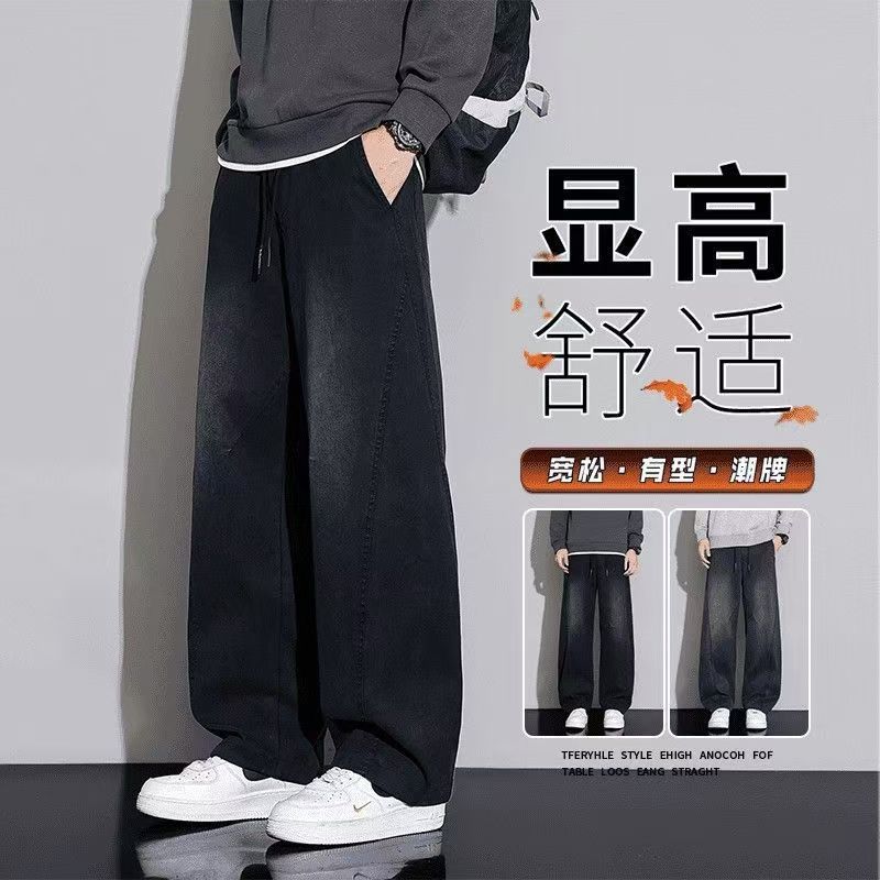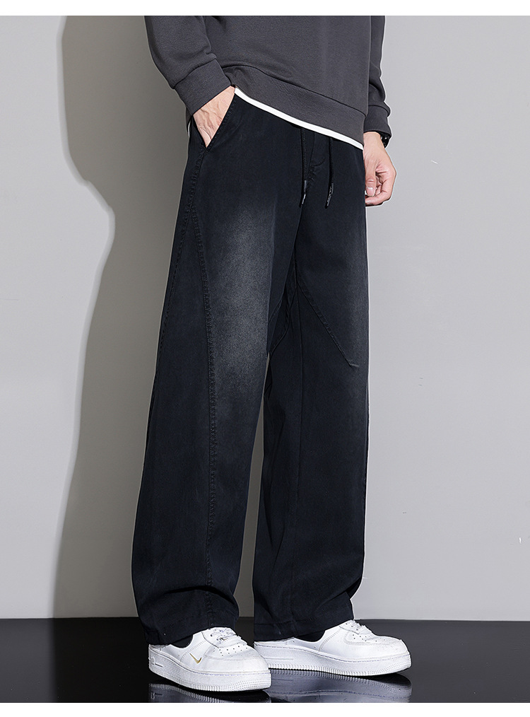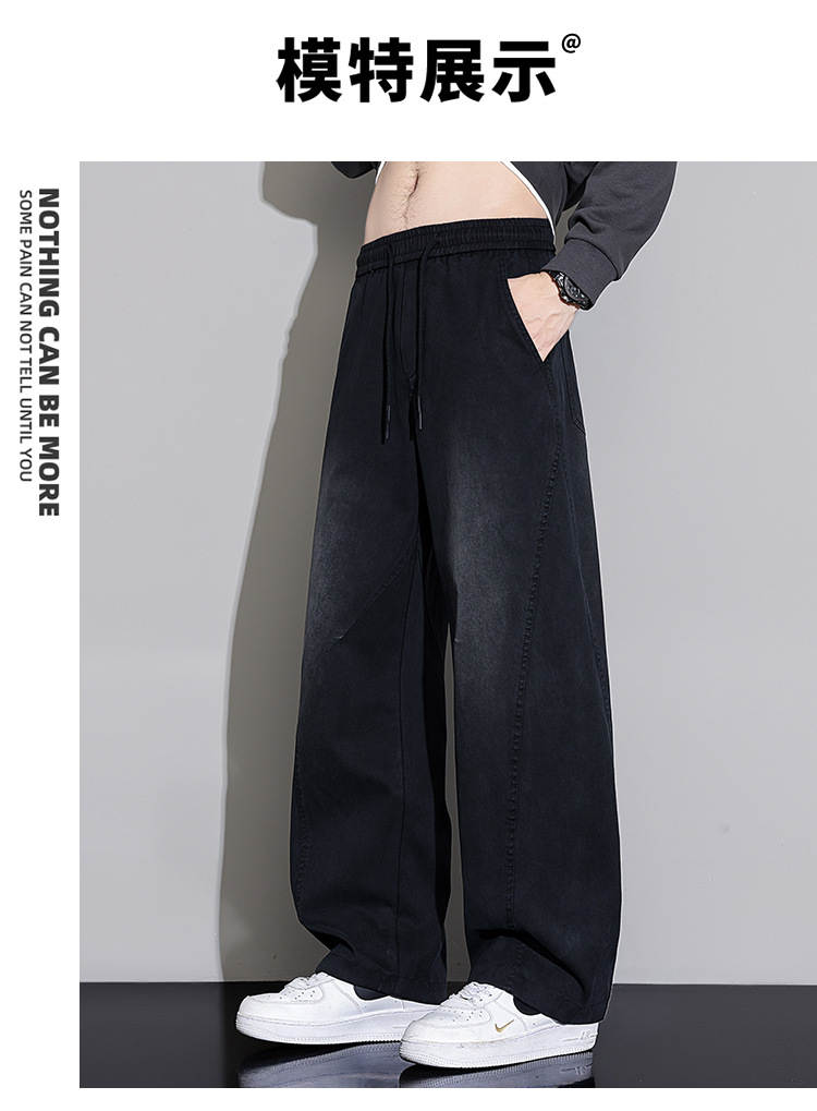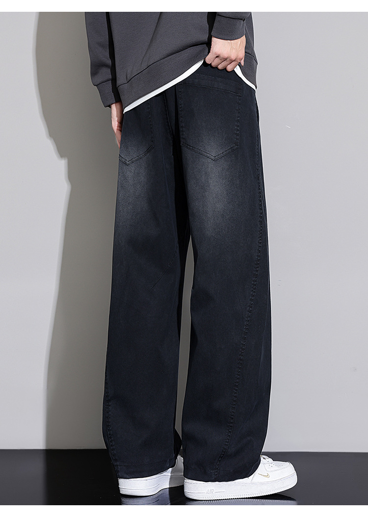 黑色弯刀牛仔裤男宽松直筒2025秋冬新款加绒美式潮牌水洗休闲长裤