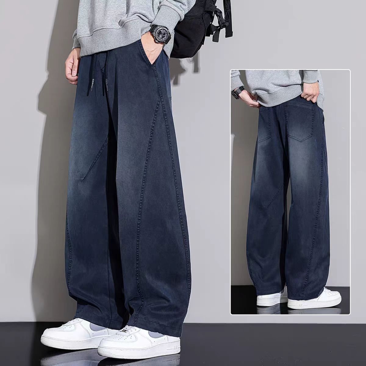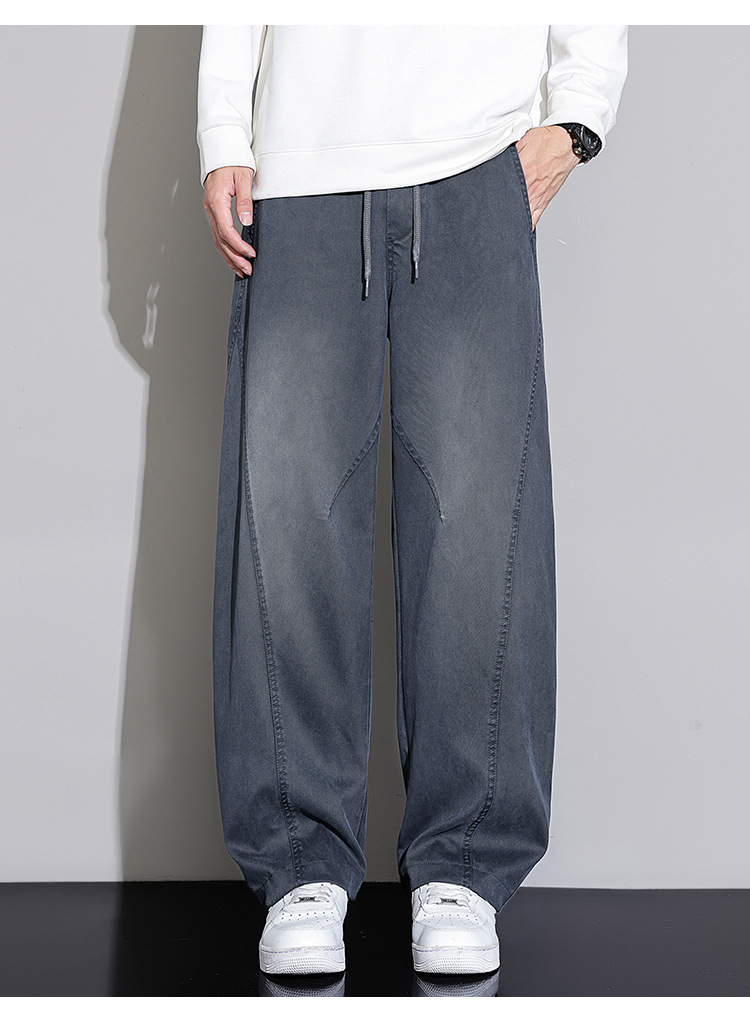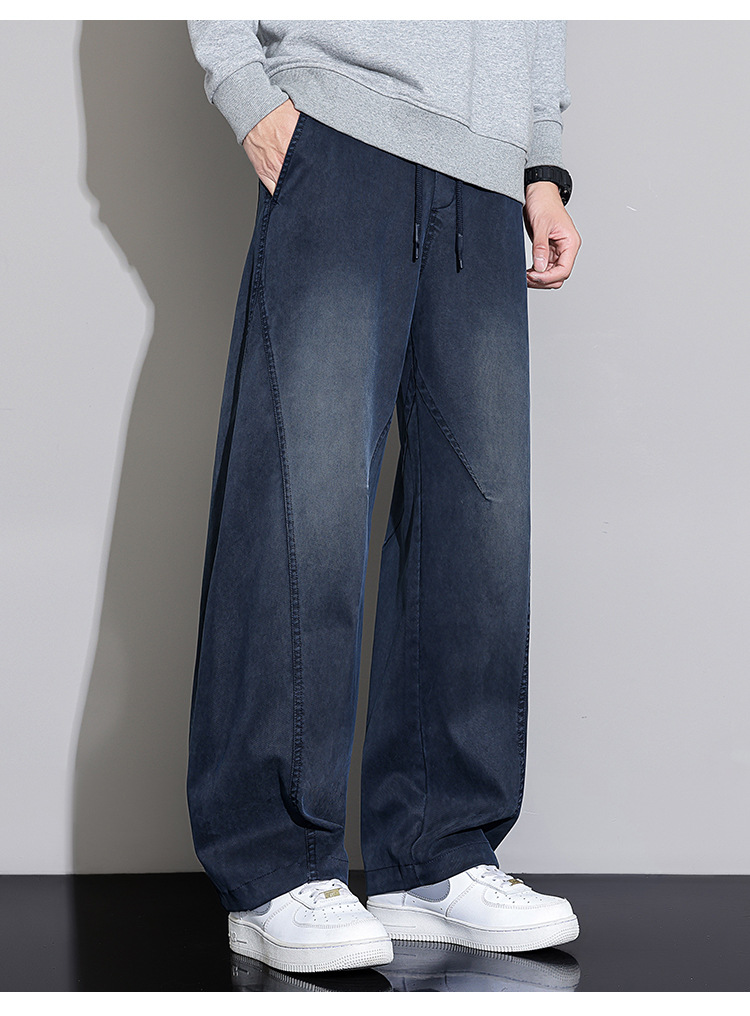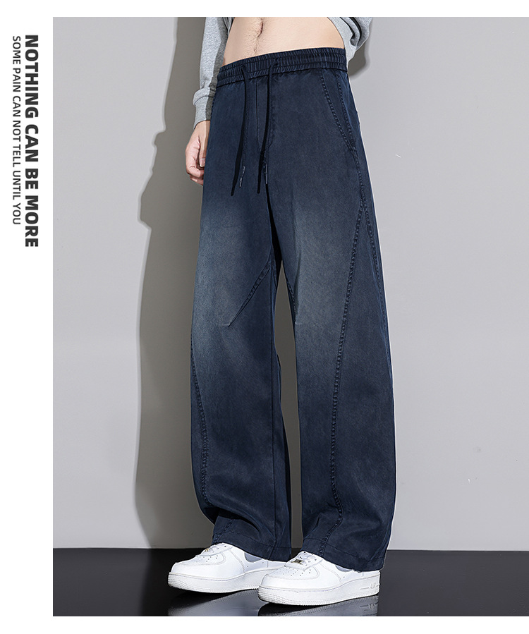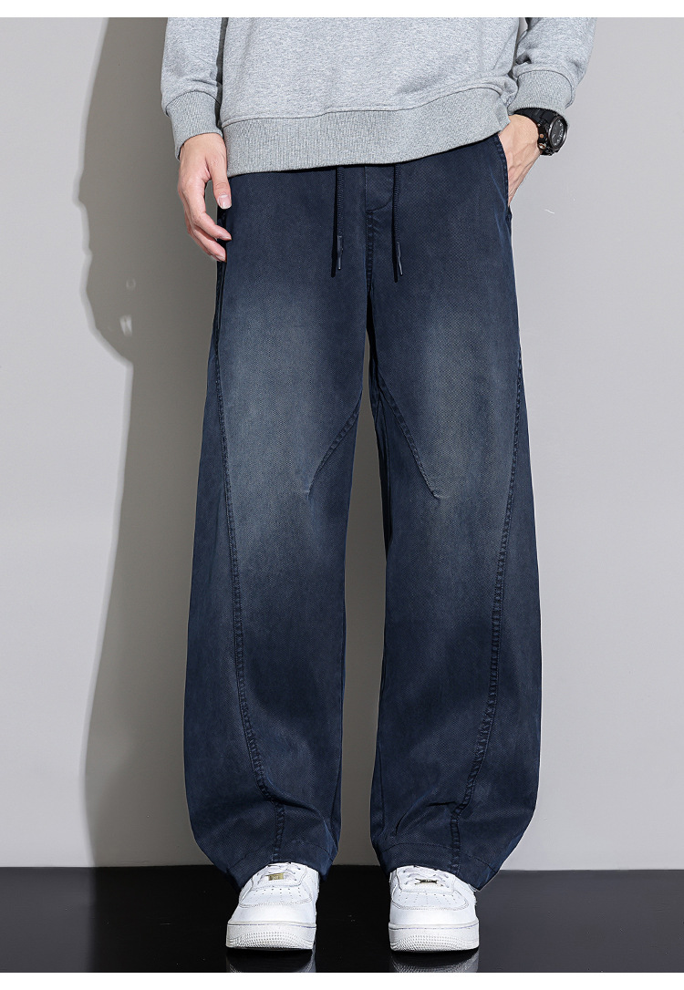 黑色弯刀牛仔裤男宽松直筒2025秋冬新款加绒美式潮牌水洗休闲长裤