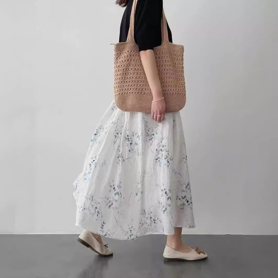 法式复古白色碎花半身裙女小个子夏高腰a字中长款半裙夏季小清新
