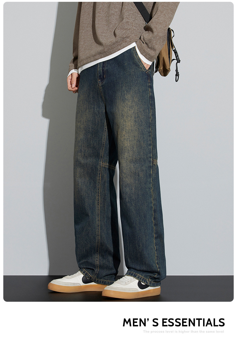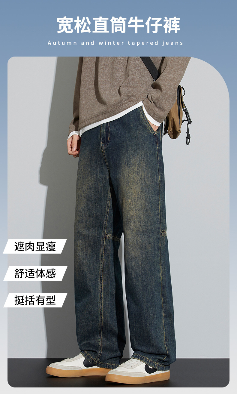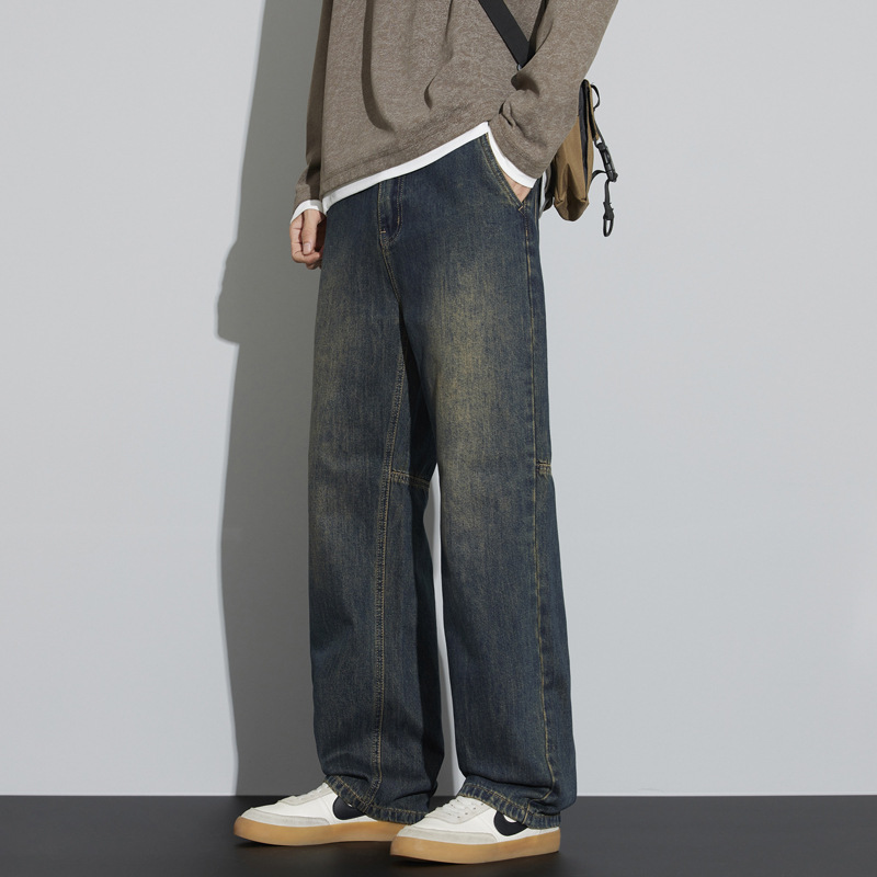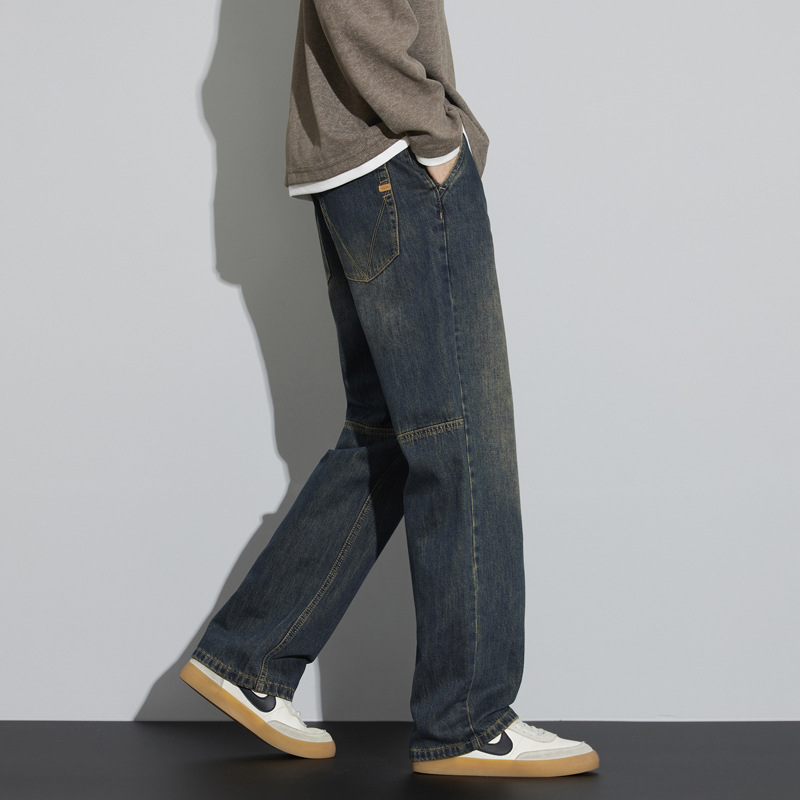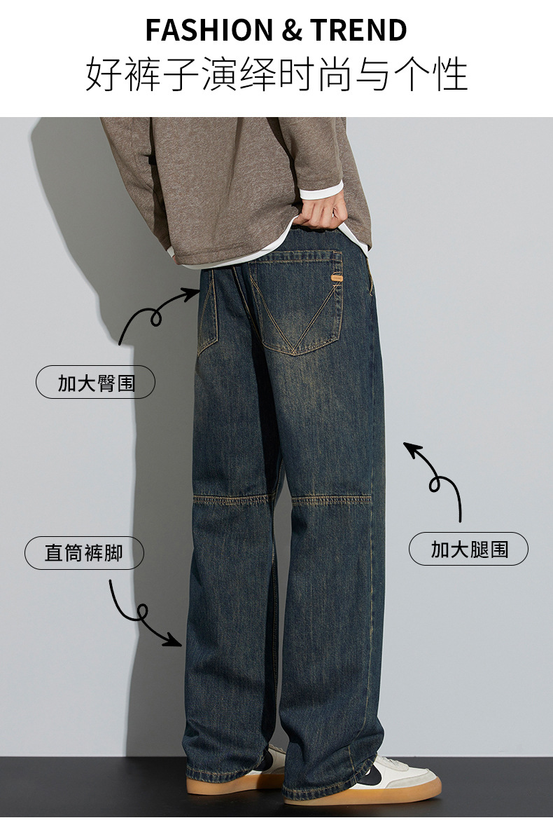 牛仔裤男2025新款春季美式宽松直筒阔腿潮牌复古休闲做旧长裤