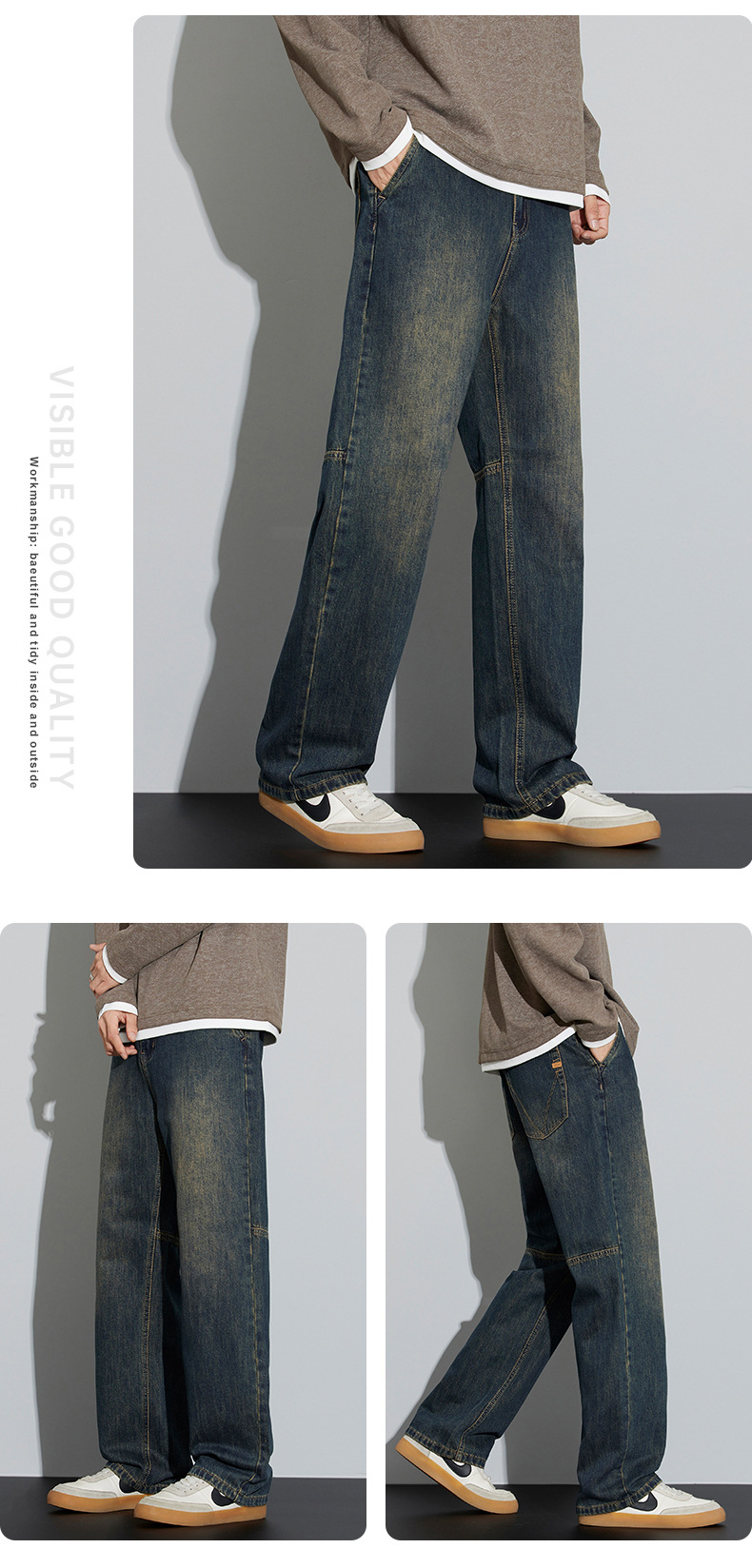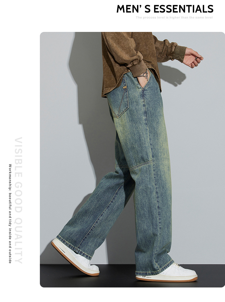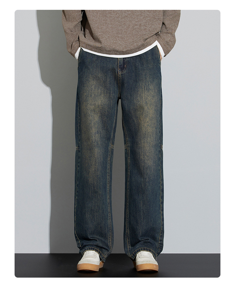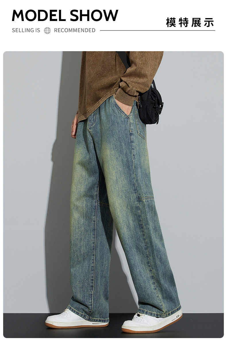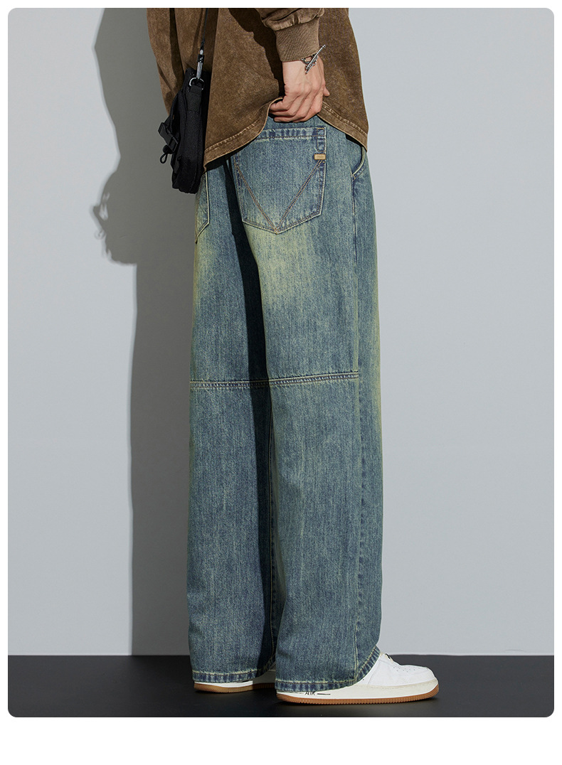 牛仔裤男2025新款春季美式宽松直筒阔腿潮牌复古休闲做旧长裤