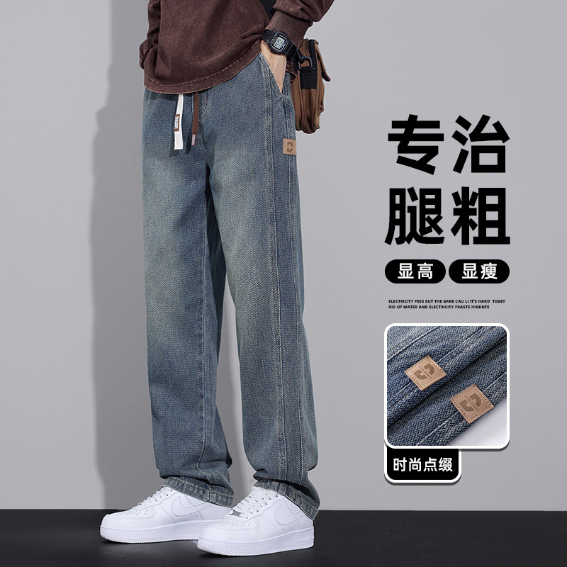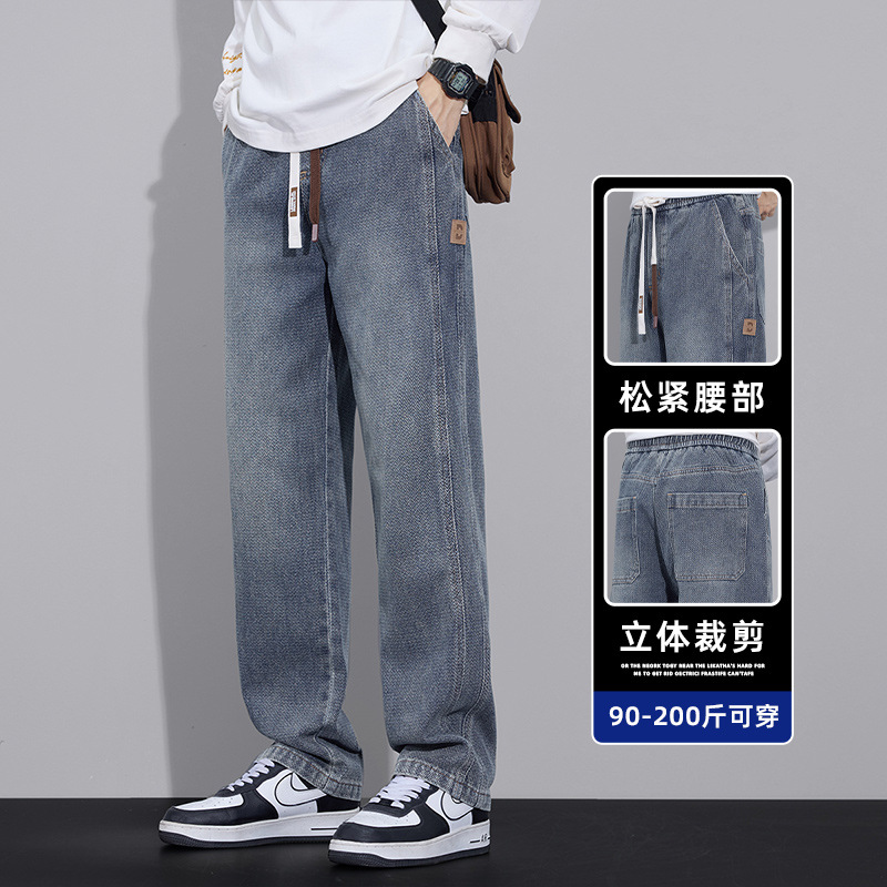 星空纹牛仔裤男士直筒宽松2025春秋季新款美式潮牌水洗休闲长裤子