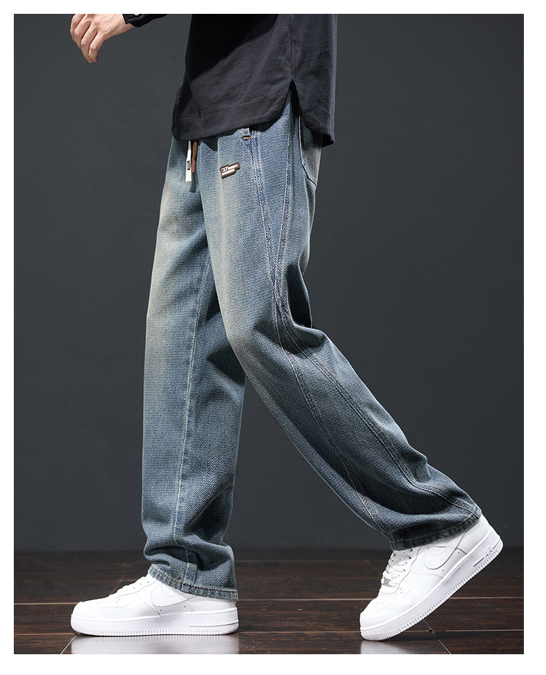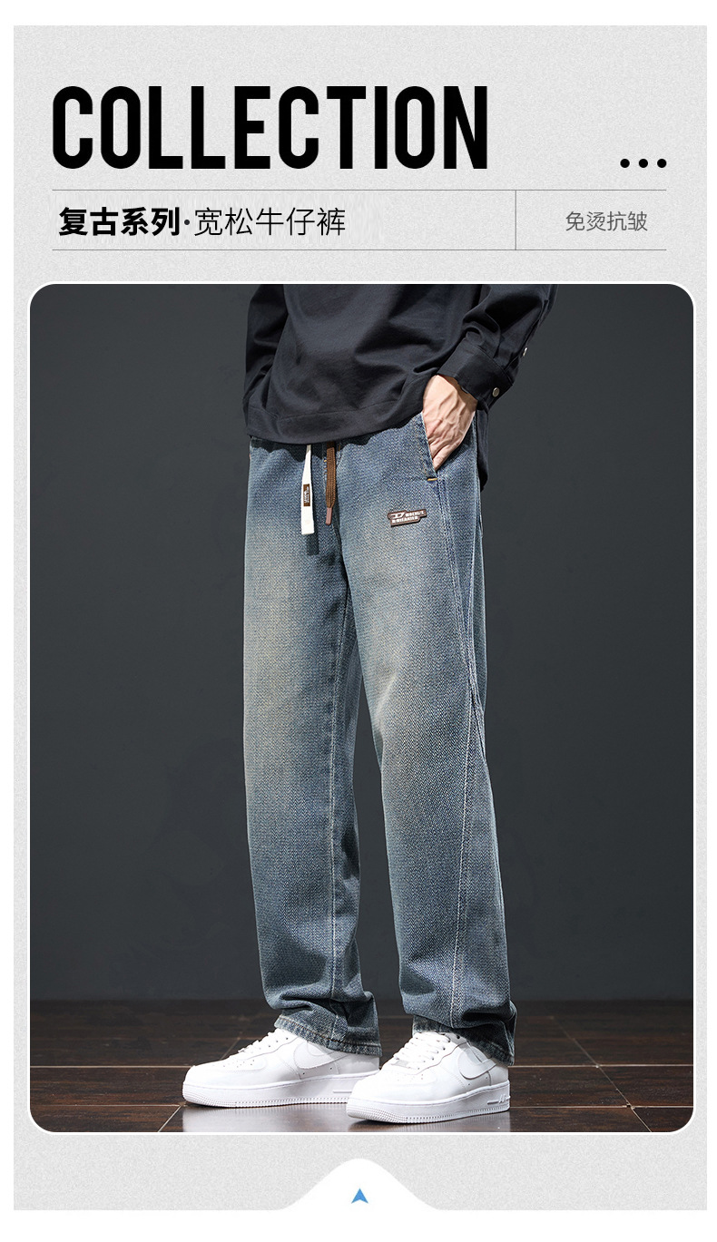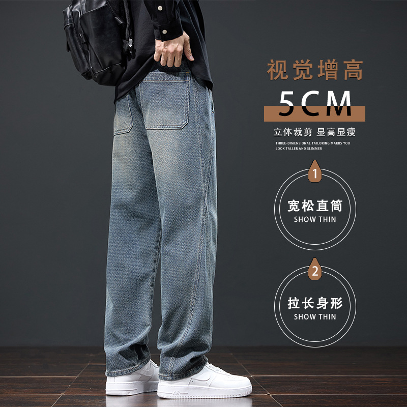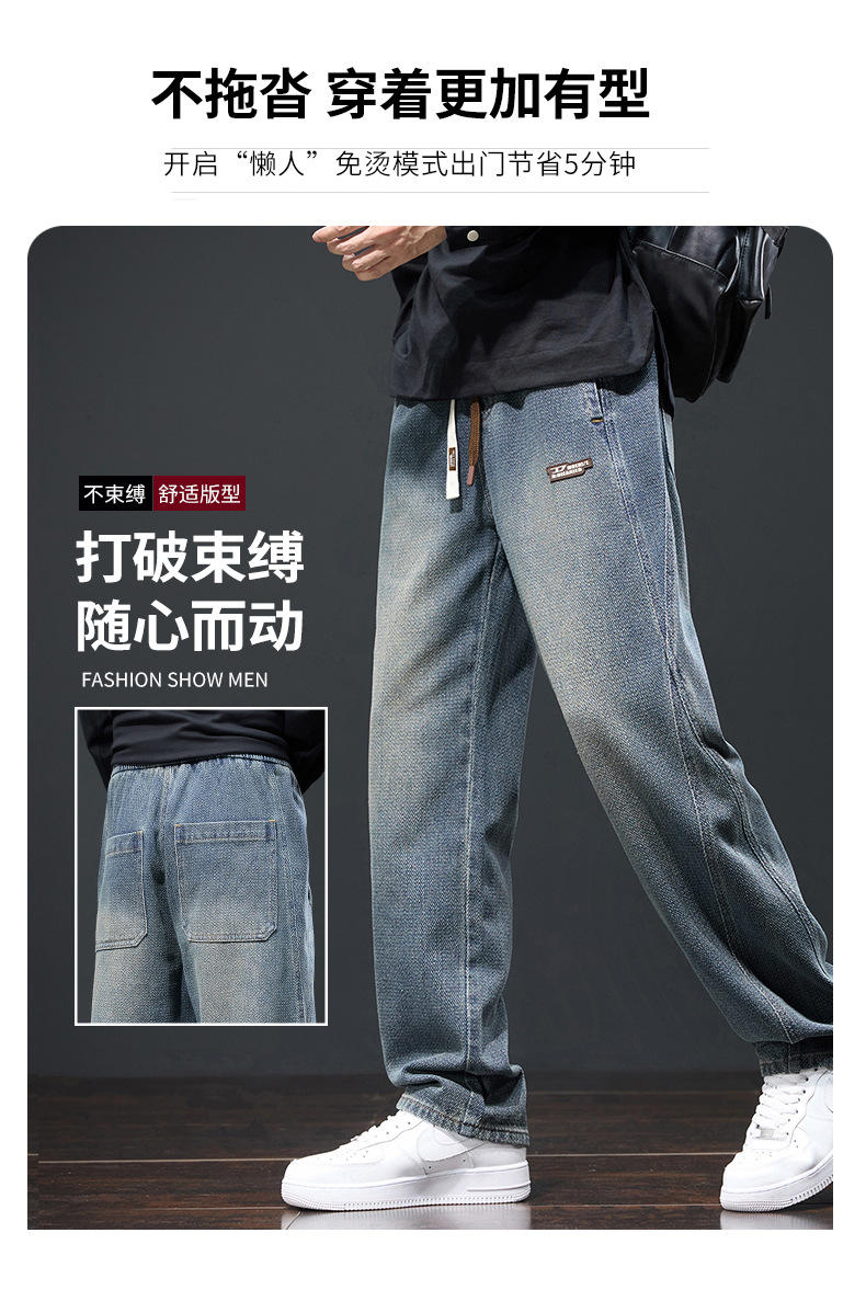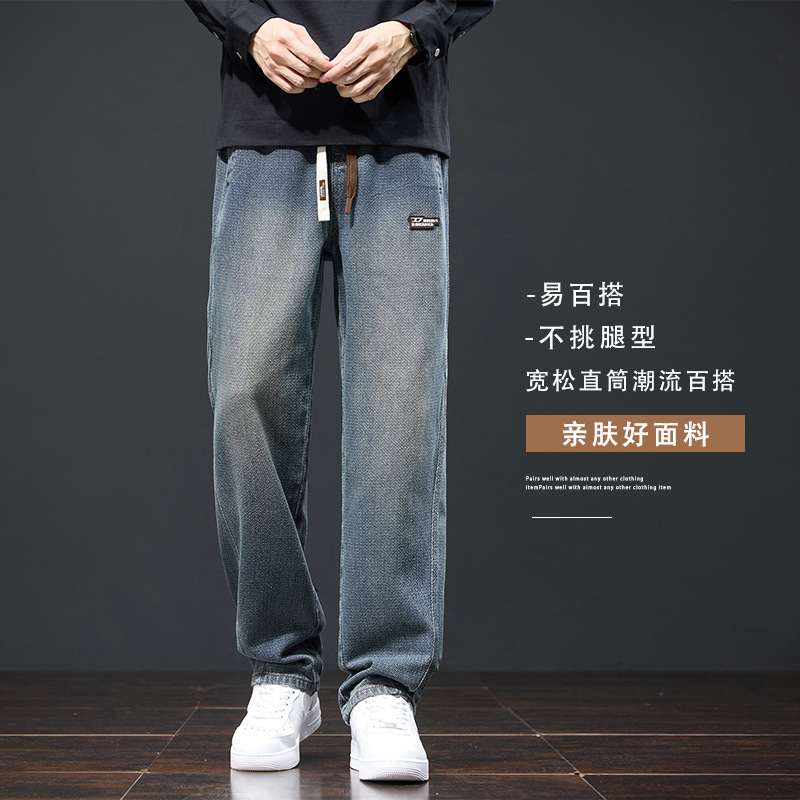 星空纹牛仔裤男秋季新款美式高级感宽松阔腿直筒休闲裤子