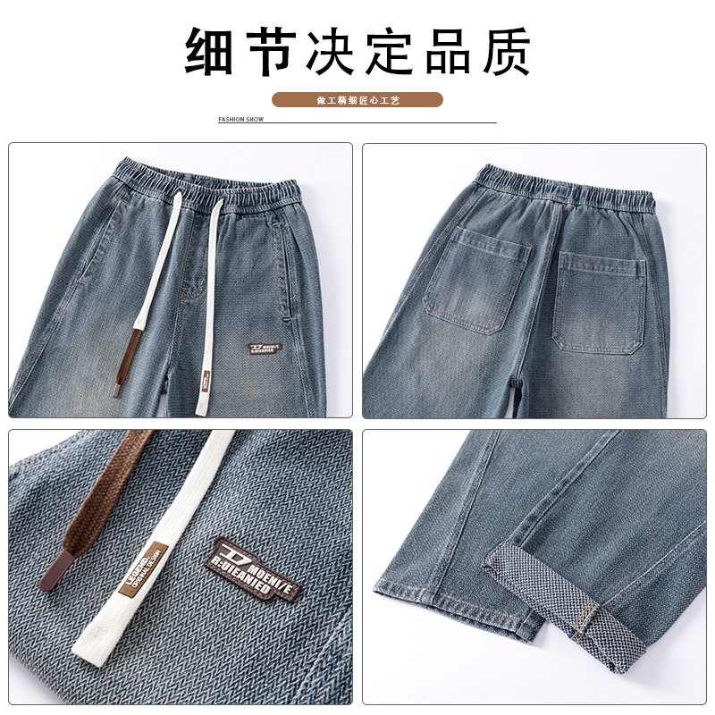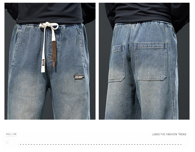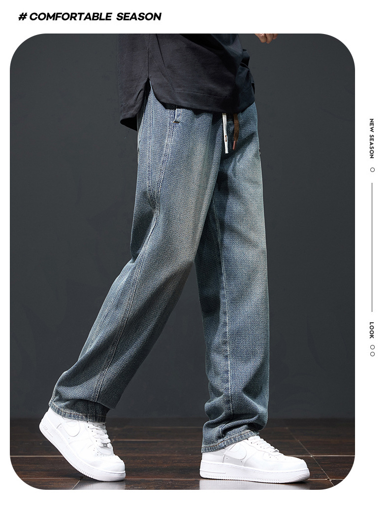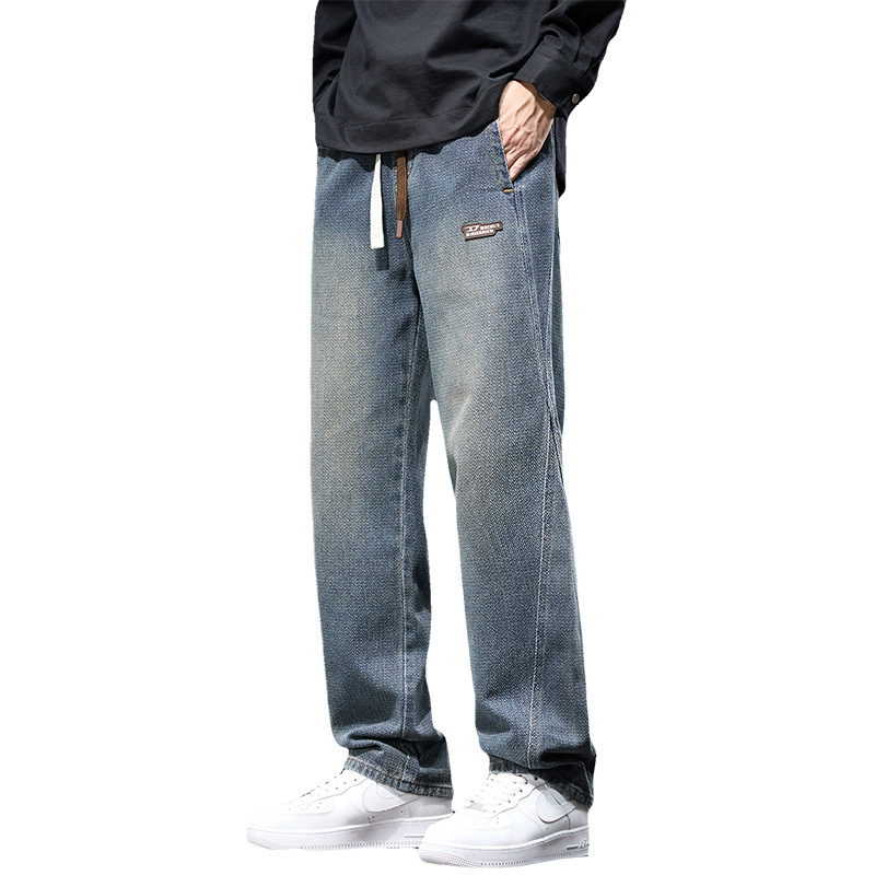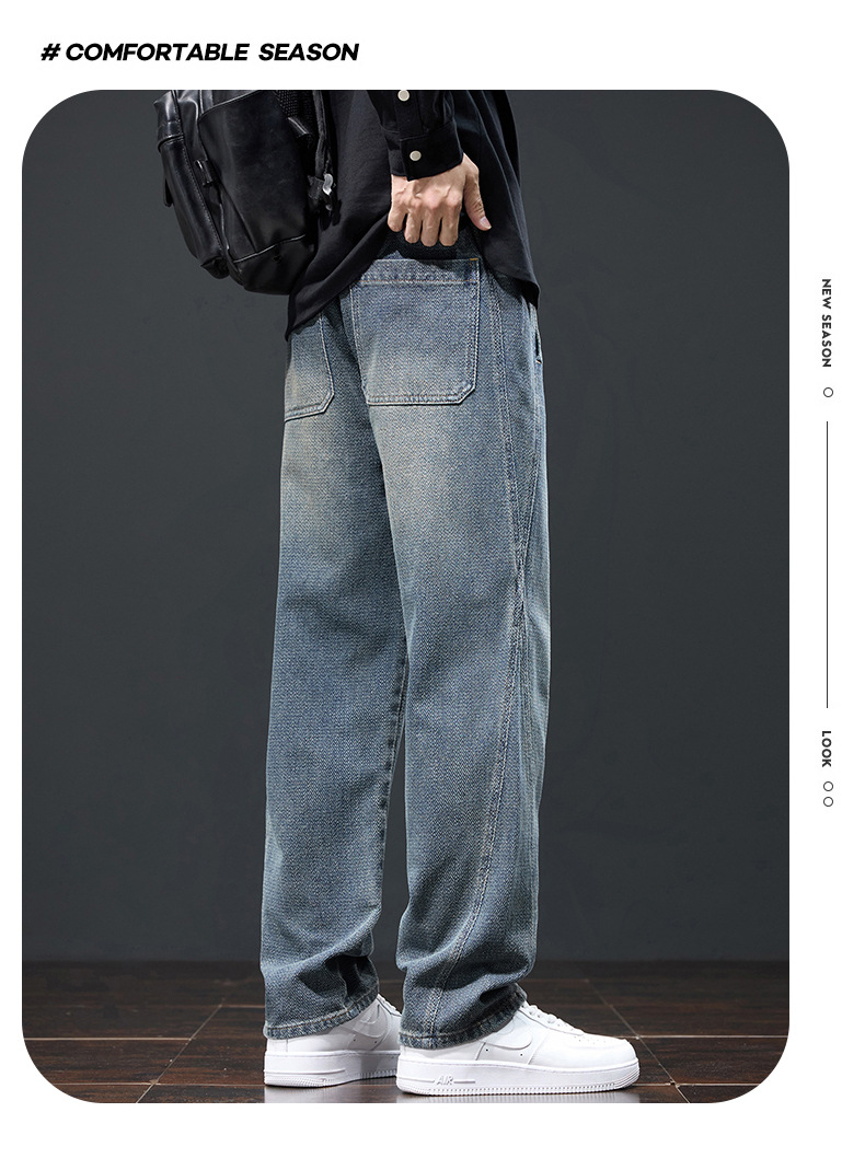 星空纹牛仔裤男秋季新款美式高级感宽松阔腿直筒休闲裤子