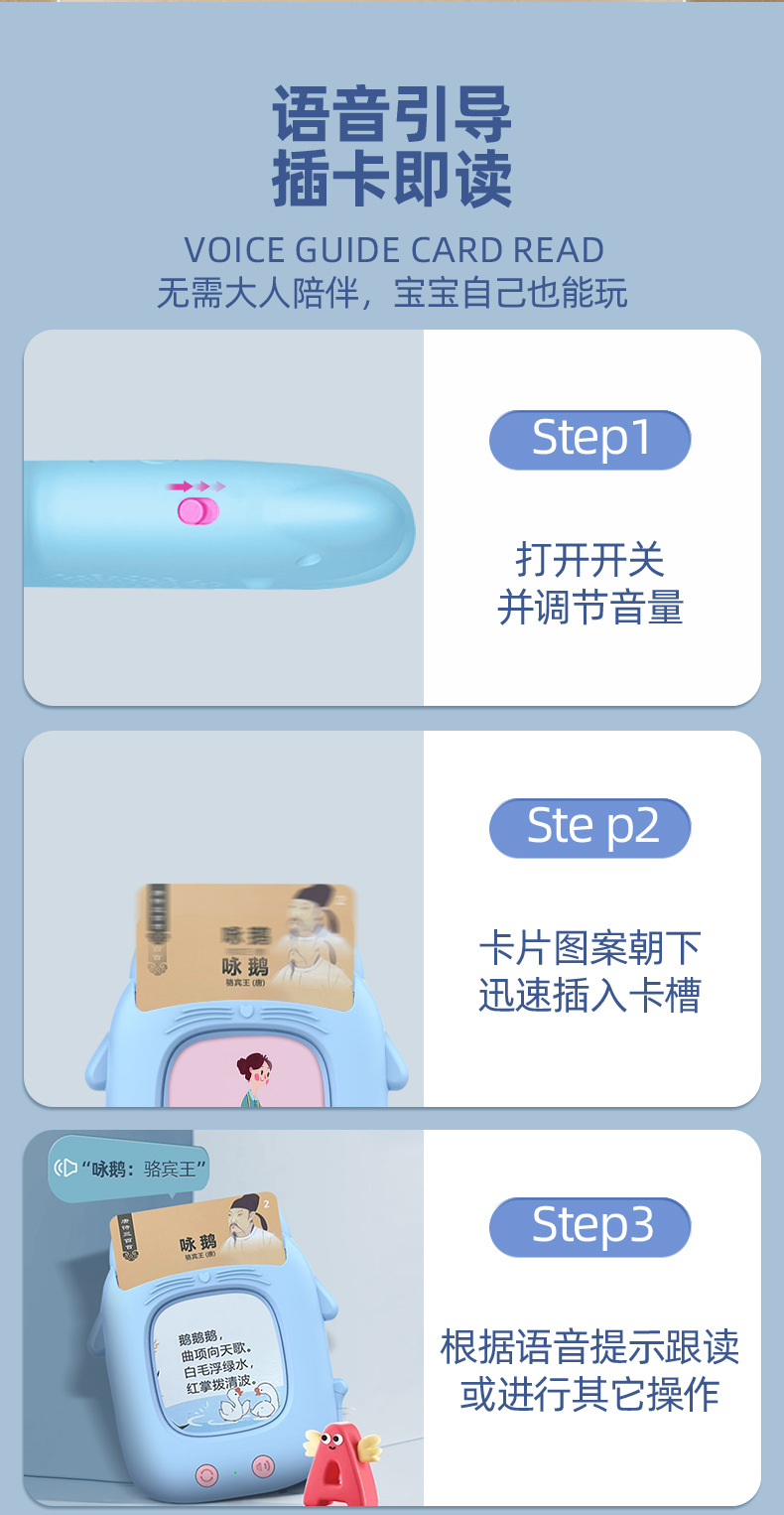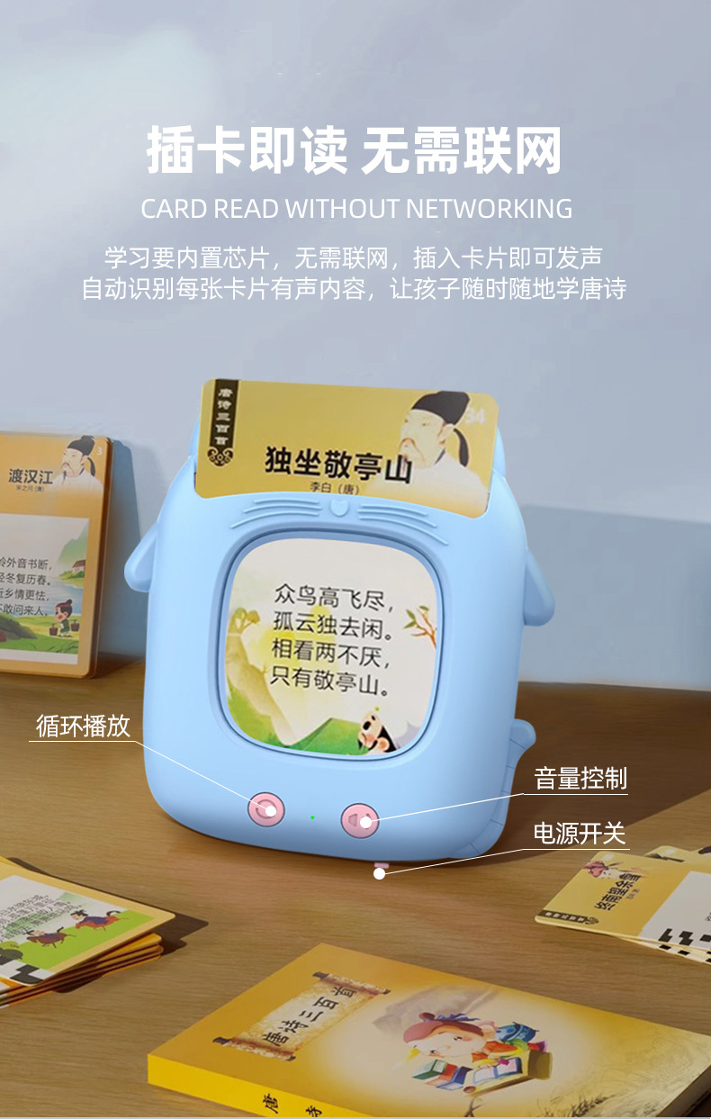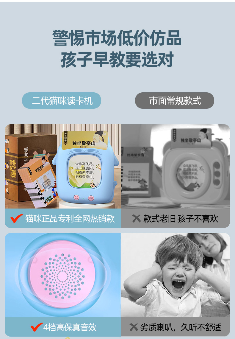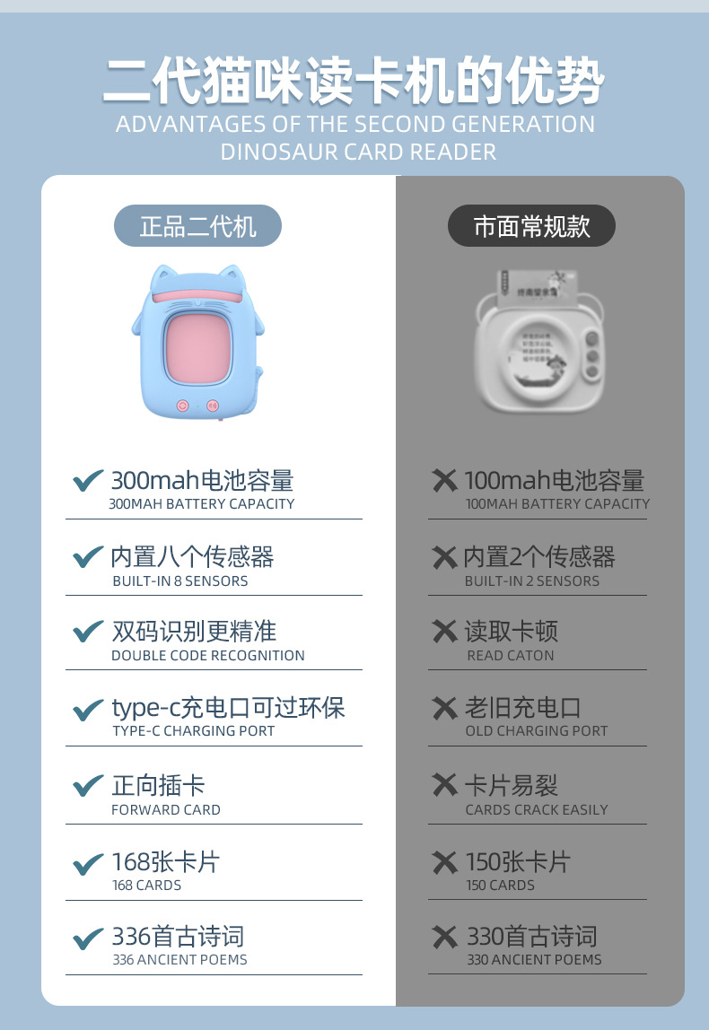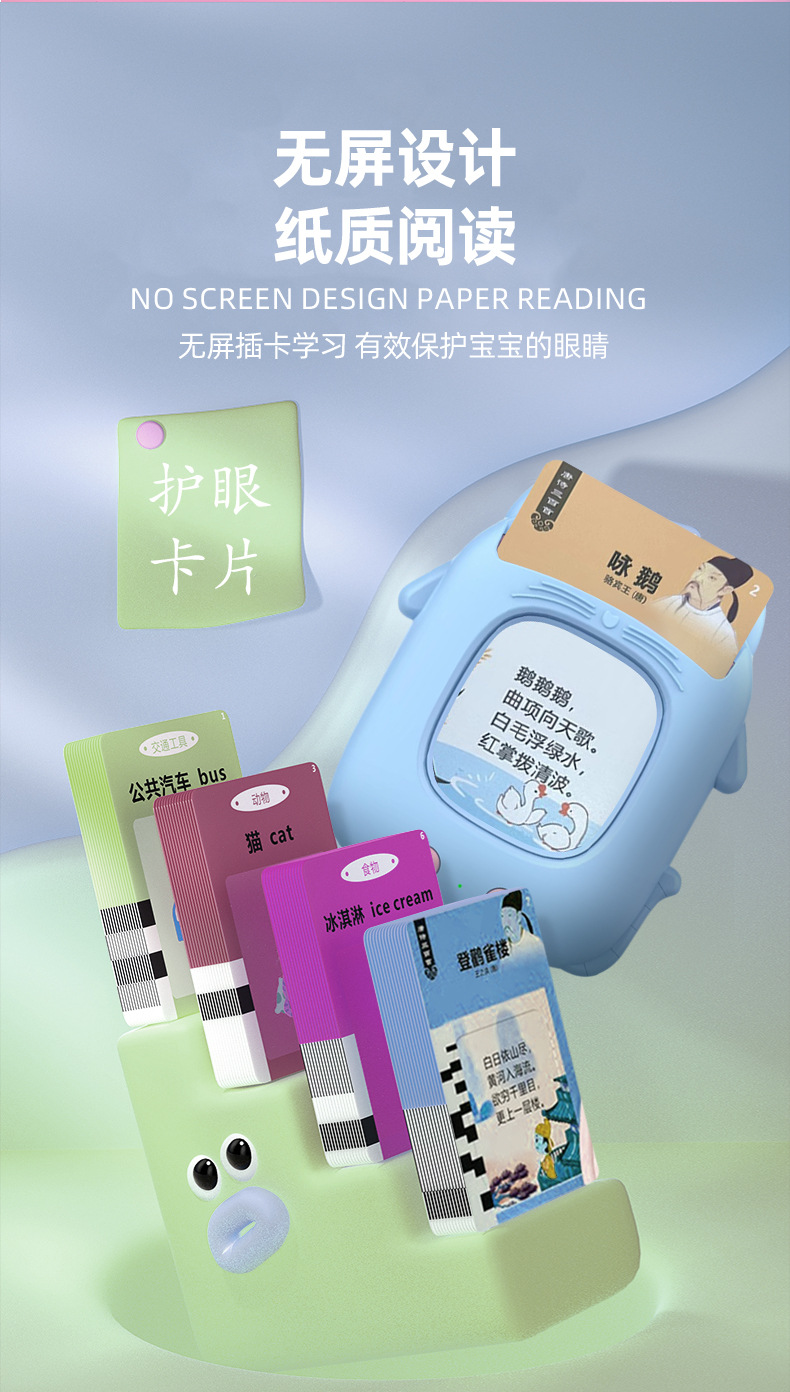 新款二代猫咪早教机卡片机儿童玩具启蒙益智中英文插卡学习机