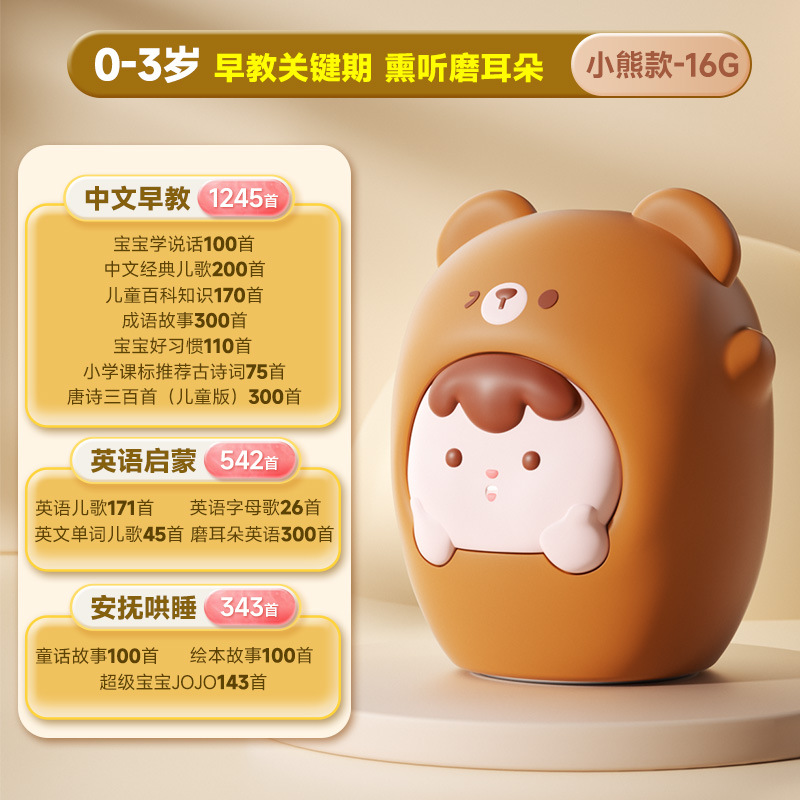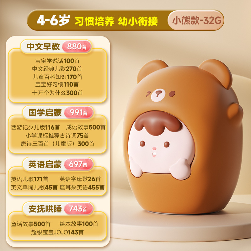 【顶配款32G卡】小熊-中文早教-国学启蒙-英语启蒙-安抚哄睡