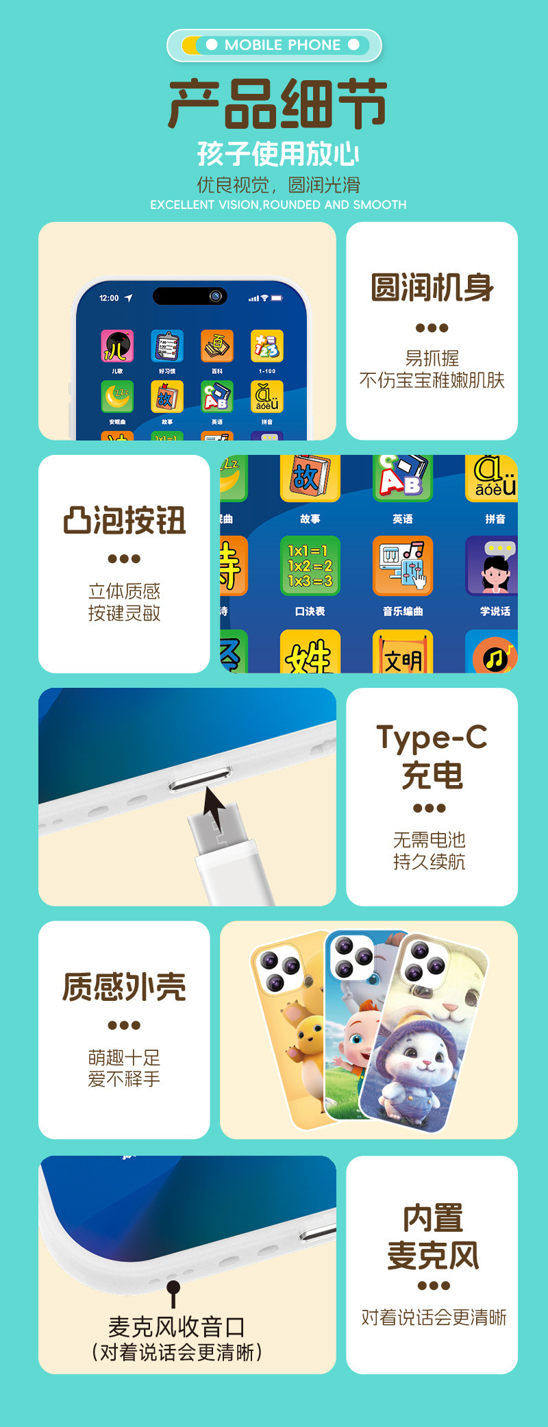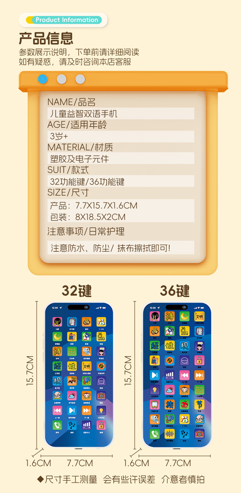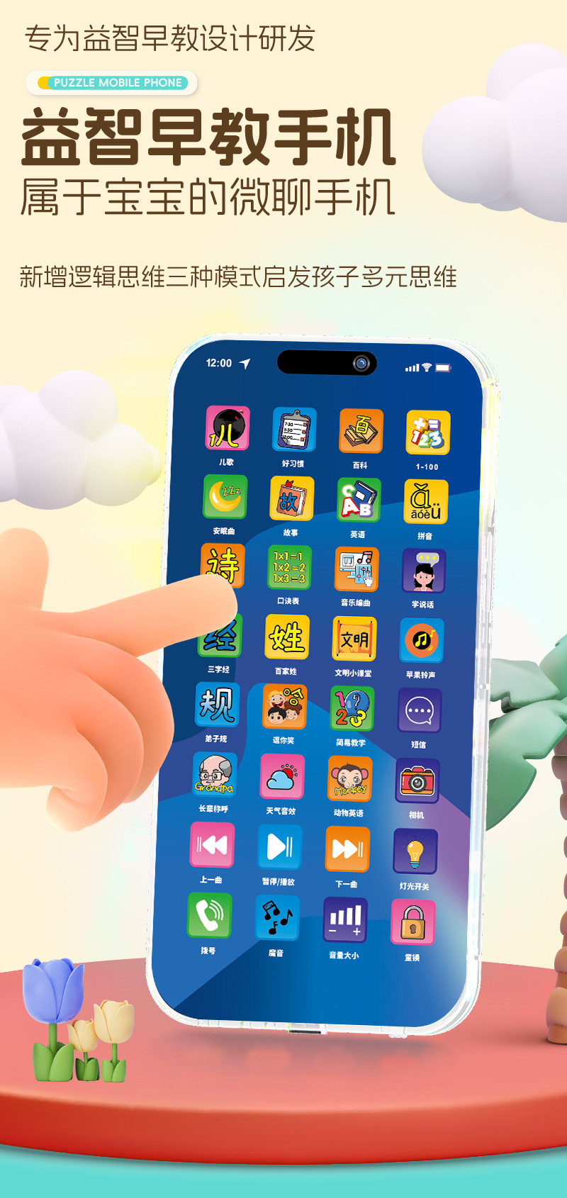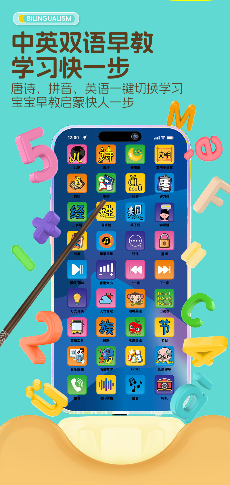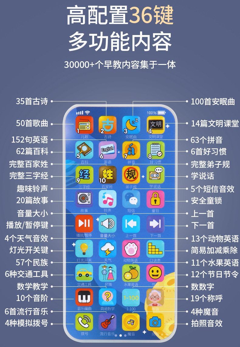 儿童益智早教手机玩具0~3岁智能36键早教机宝宝启蒙多功能学习机