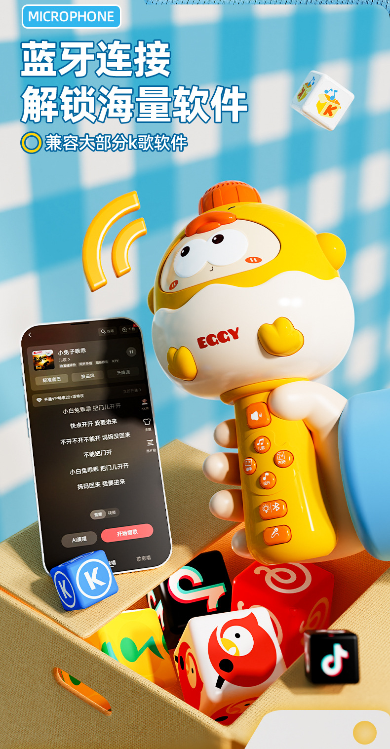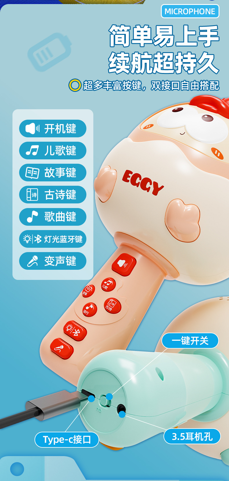 儿童早教机萌鸭小话筒音响益智唱歌麦克风多功能宝宝音乐小孩玩具