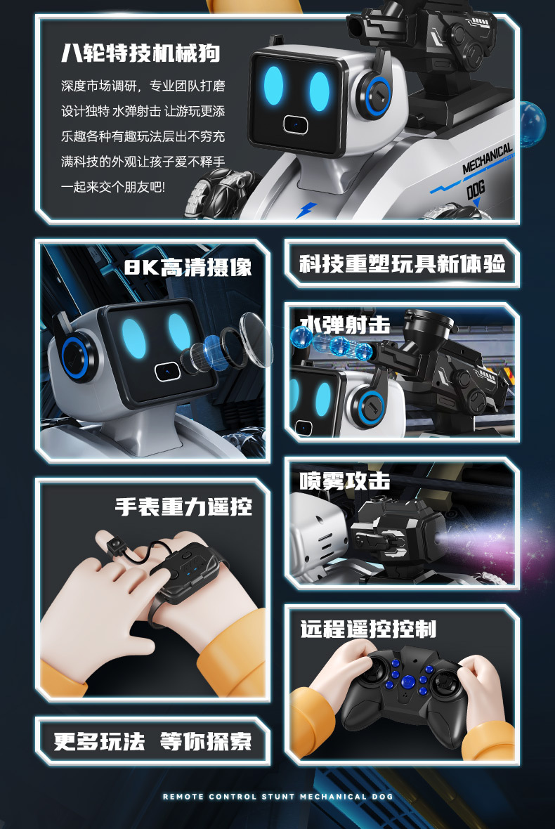 - 八轮机械狗(喷雾+遥控手柄+手表)