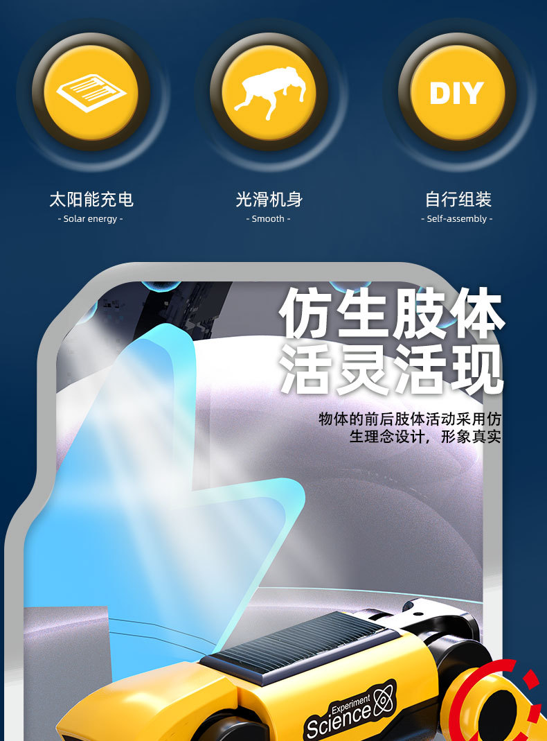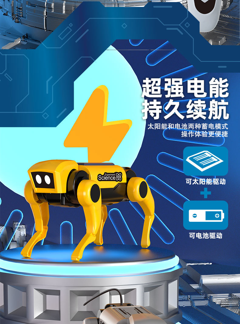 太阳能机械狗科教实验电动遥控智能机器狗儿童DIY拼装四足机器人