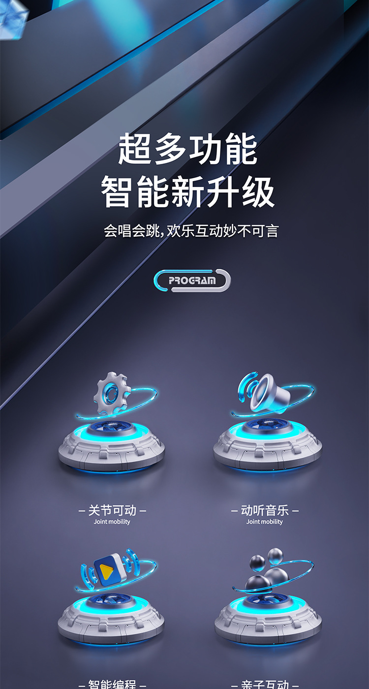 灰色-遥控+声控指令+触摸【语音对话唱歌跳舞】