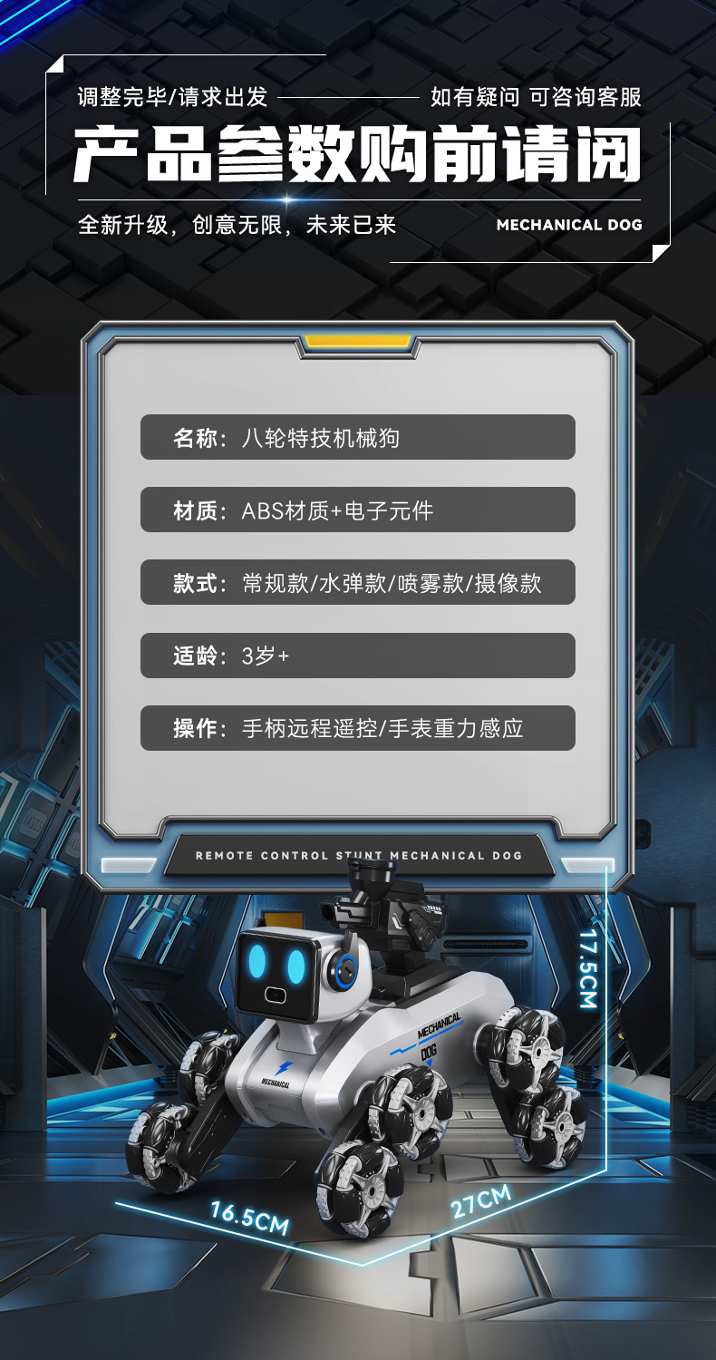 - 八轮机械狗(喷雾+遥控手柄+手表)