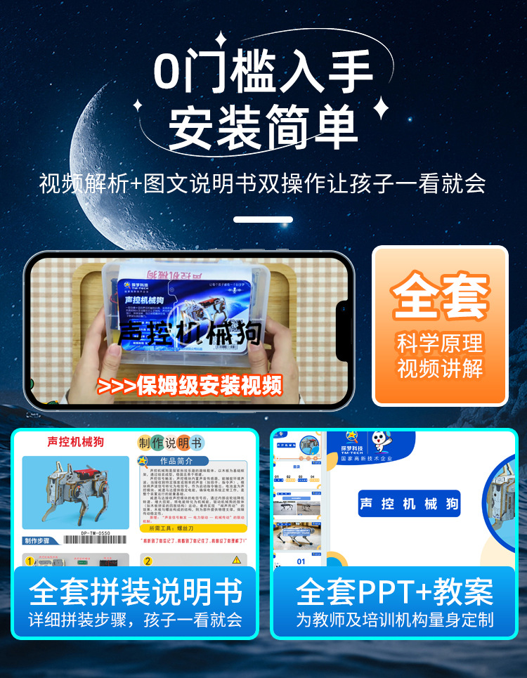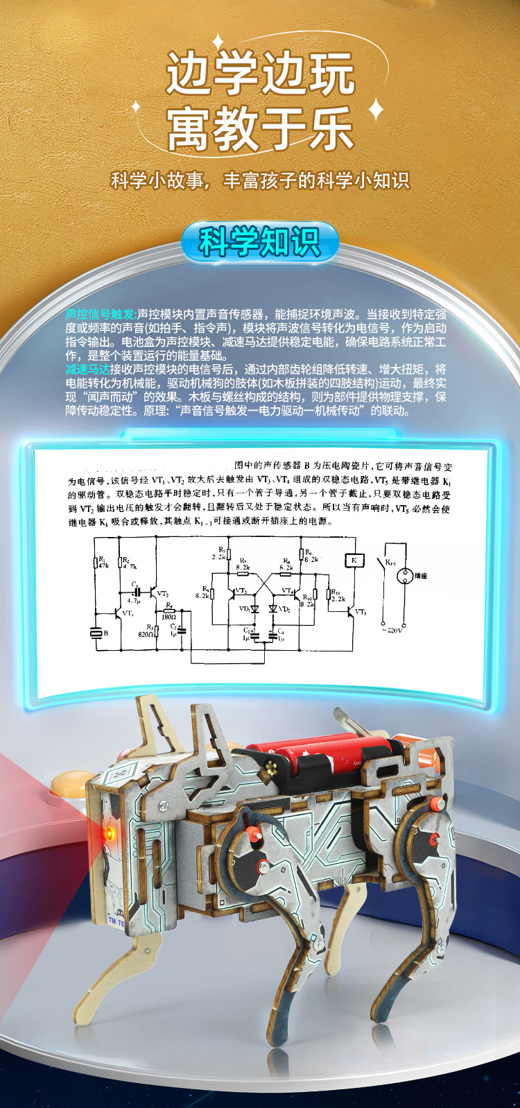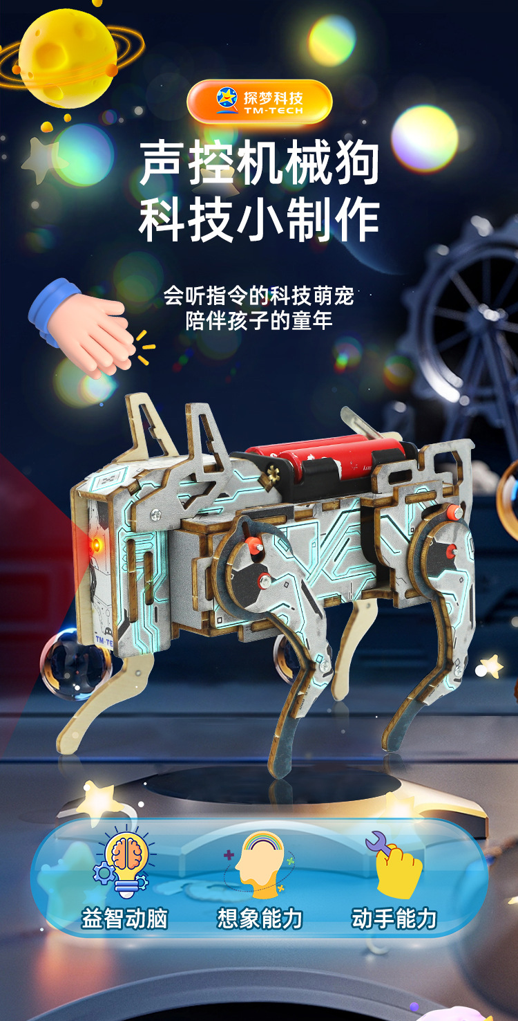 科技小制作小学生diy声控机械狗仿生兽电路实验玩具科学实验教具