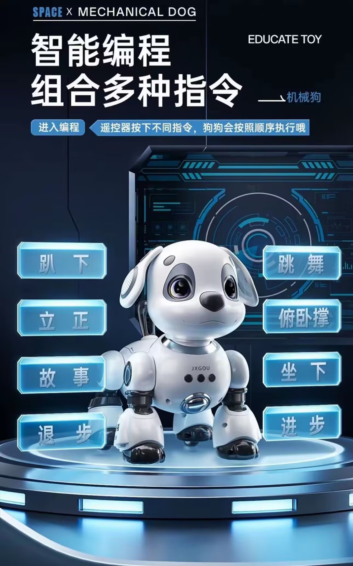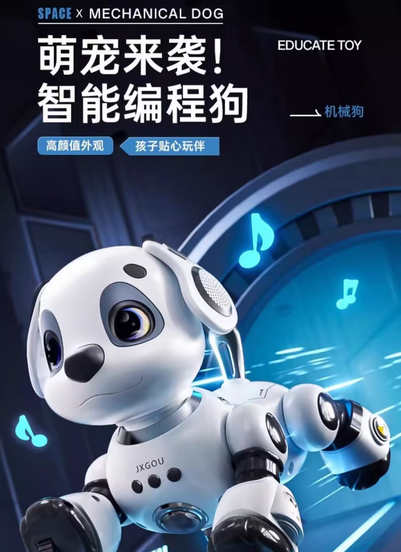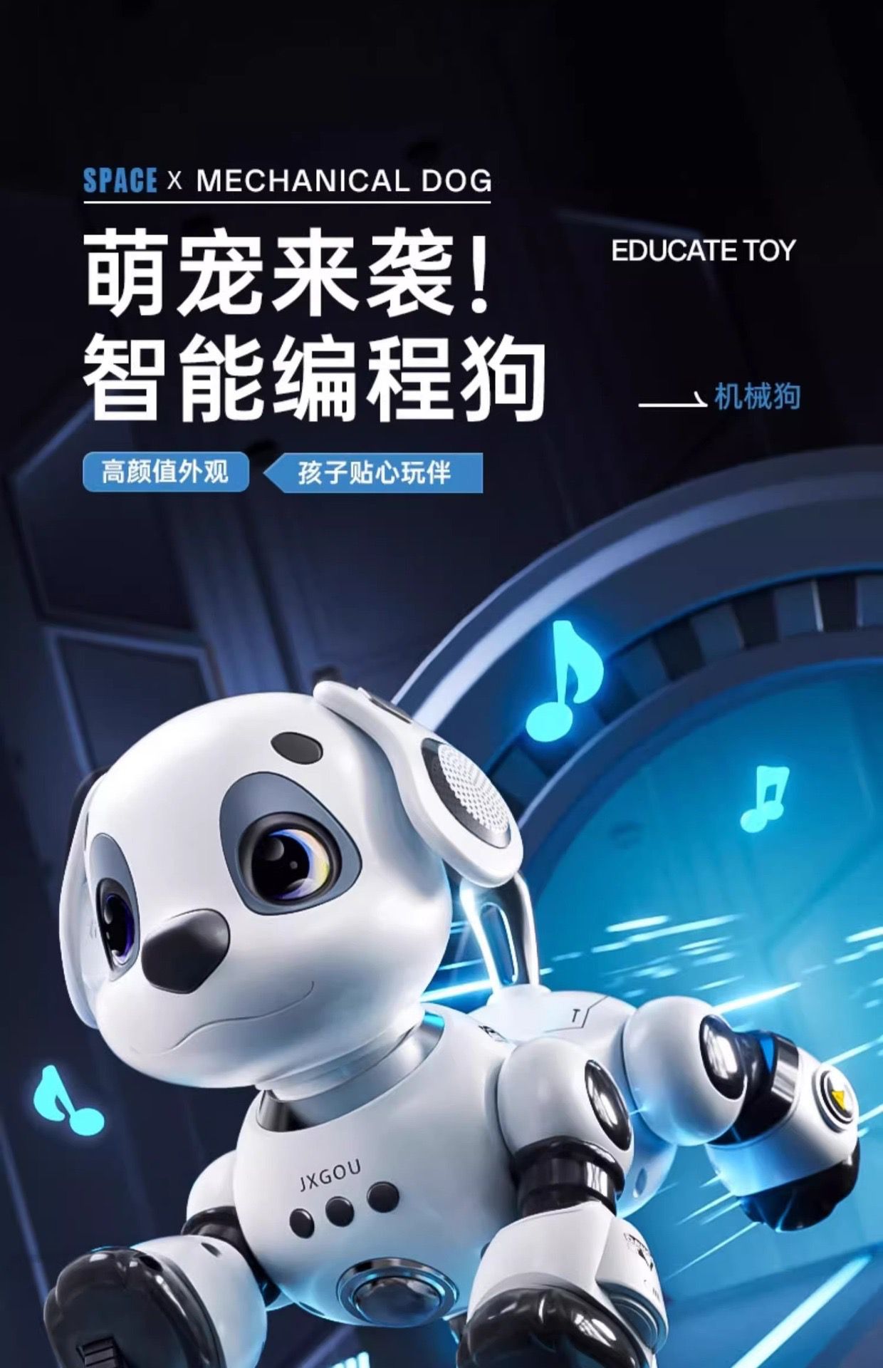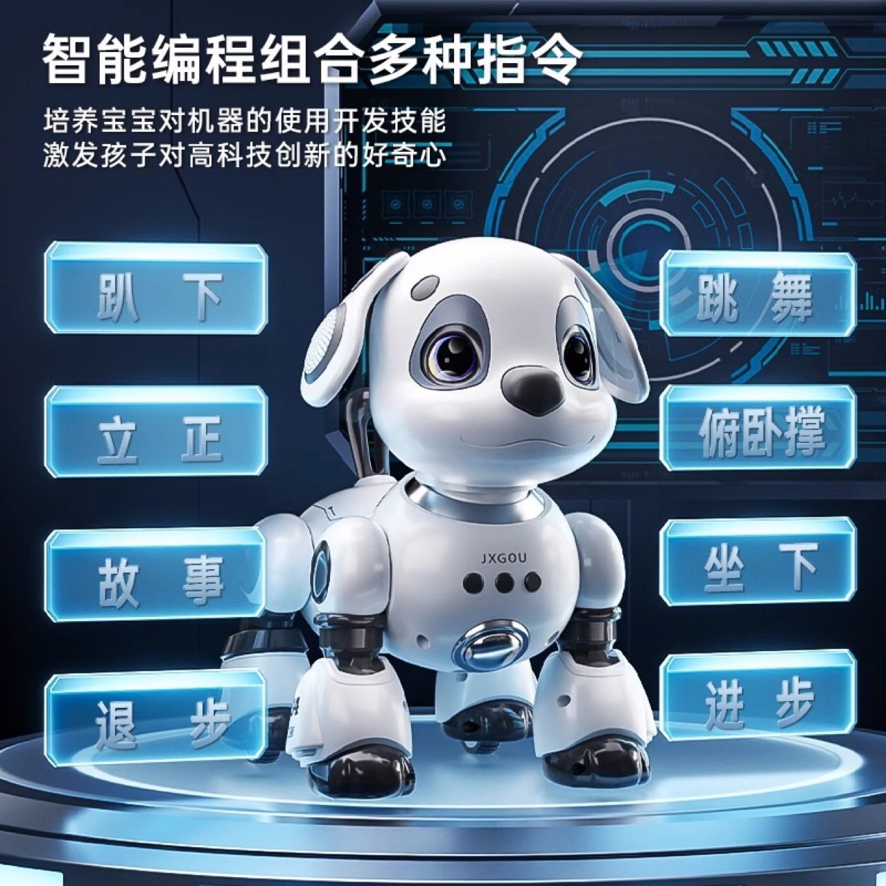 【升级编程触摸版】双锂电科技白-升级大号编程狗手势触摸+触摸互动+故事百科+遥