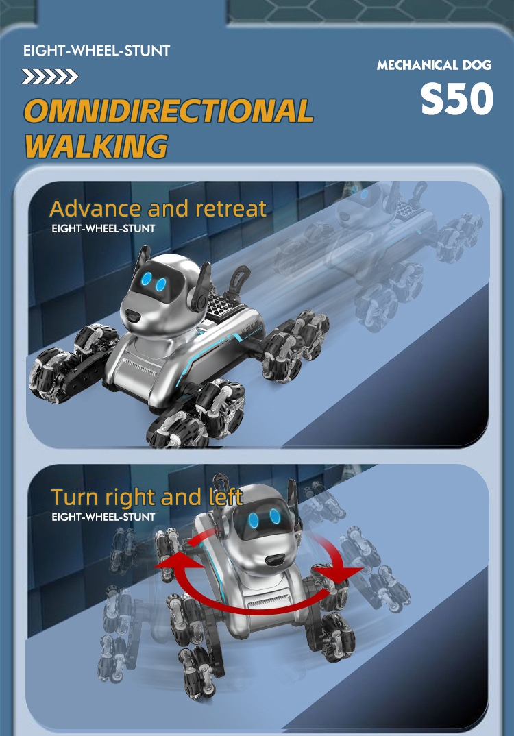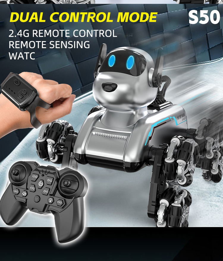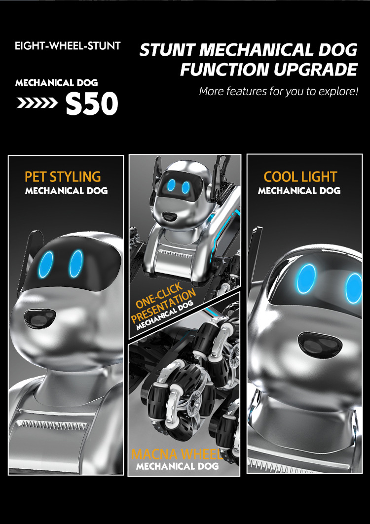 新款S50八轮特技机械狗智能手势感应变形机器狗儿童玩具男孩