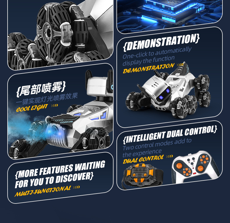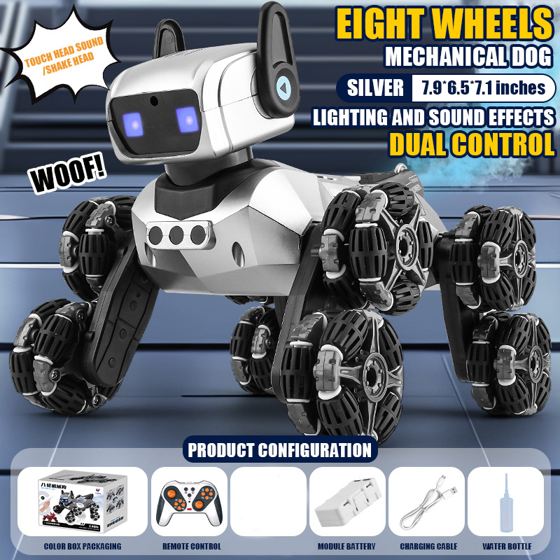 双遥控【银色】八轮机械狗-可喷雾/摇头